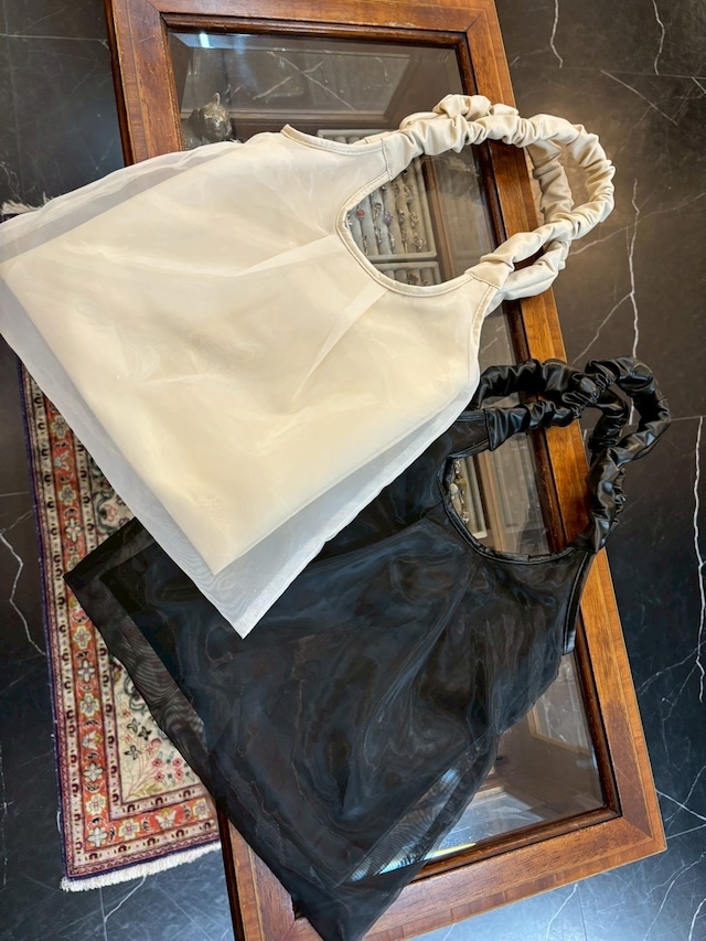 2026.3 サイズ(cm) ※内袋 縦/横(上部)/横(下部)/ -/27/28/29 ※外袋(チュール) 縦/横(上部)/横(下部)/ -/30/30/36.5 ※持ち手長さ(ギャザー) -/25 カラー アイボリー/ブラック 仕様 【内側】オープンポケット×2、ファスナーポケット×1 製 合皮の内袋にチュール素材を被せたデザイン。 デイリー使いはもちろん、 華やかなデザインなのでフォーマルのシーンでもお使いいただけます。 内ポケットもしっかり付いていて使い勝手も抜群。