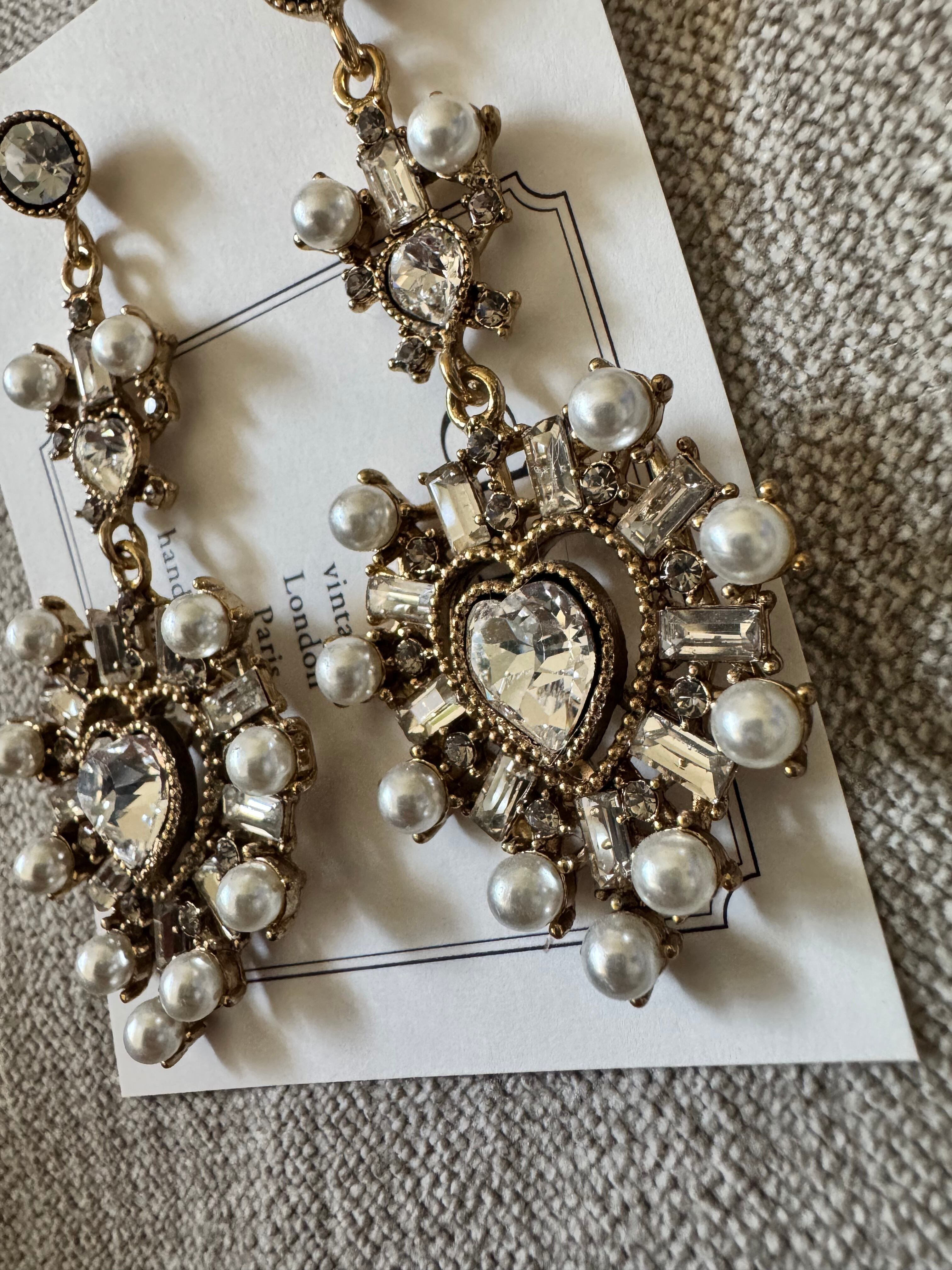 ハートパールビジューボリュームビジューピアス シルバーポスト