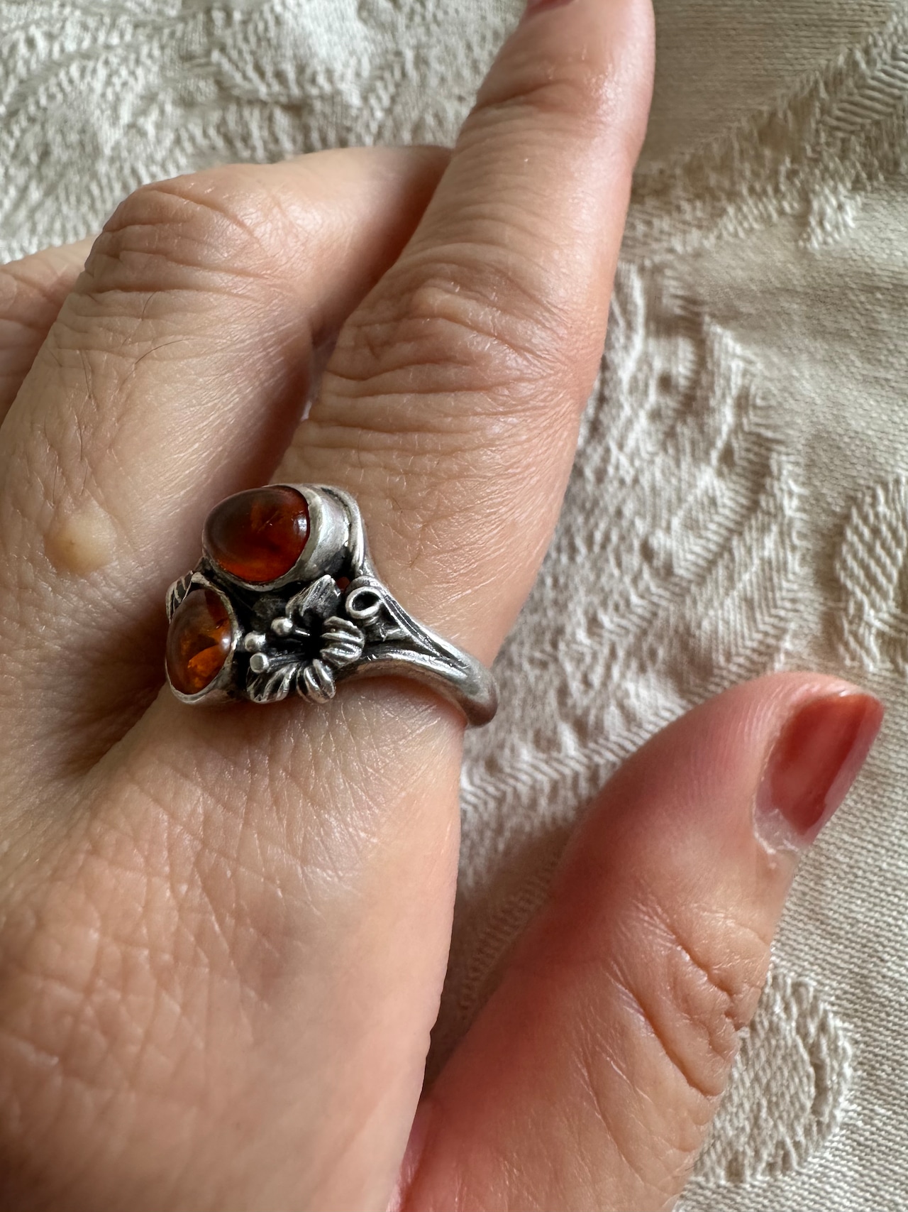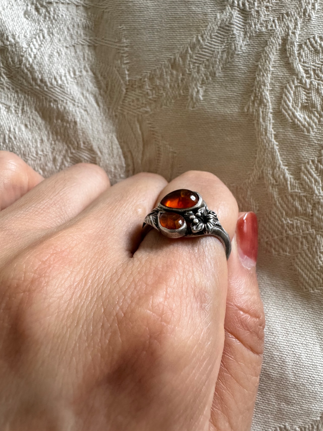 独特の雰囲気を持つ、London vintageスタイルのアンバーリリーデザインリング。温かみのあるアンバーが、どんな装いにも華やかさを添えます。洗練されたデザインは、日常使いはもちろん特別な日のアクセントにもぴったりです。ヴィンテージ感あふれる一品は、コレクターやおしゃれを楽しむ方々におすすめです!