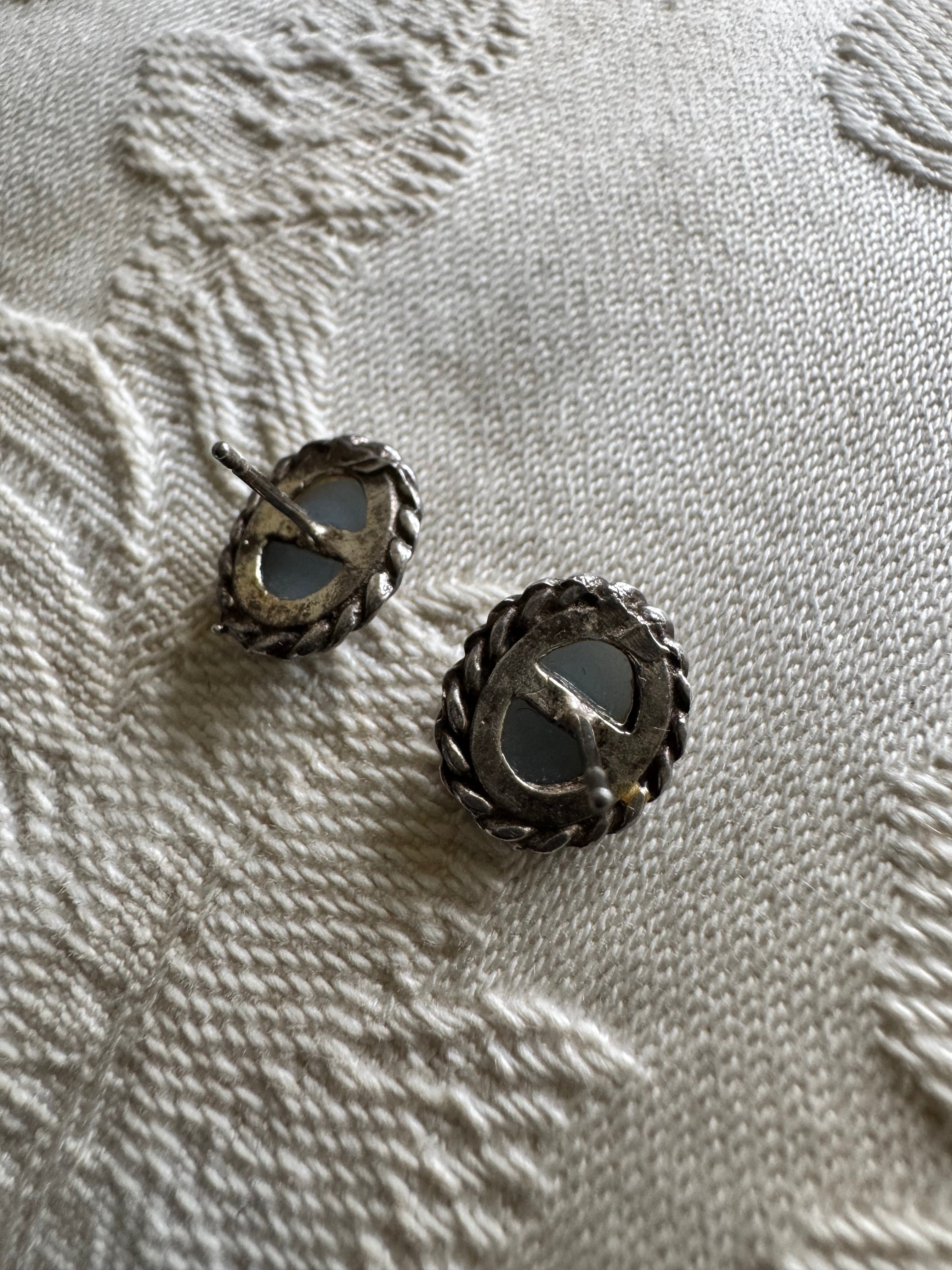 LONDON vintage silver 水色カメオピアス