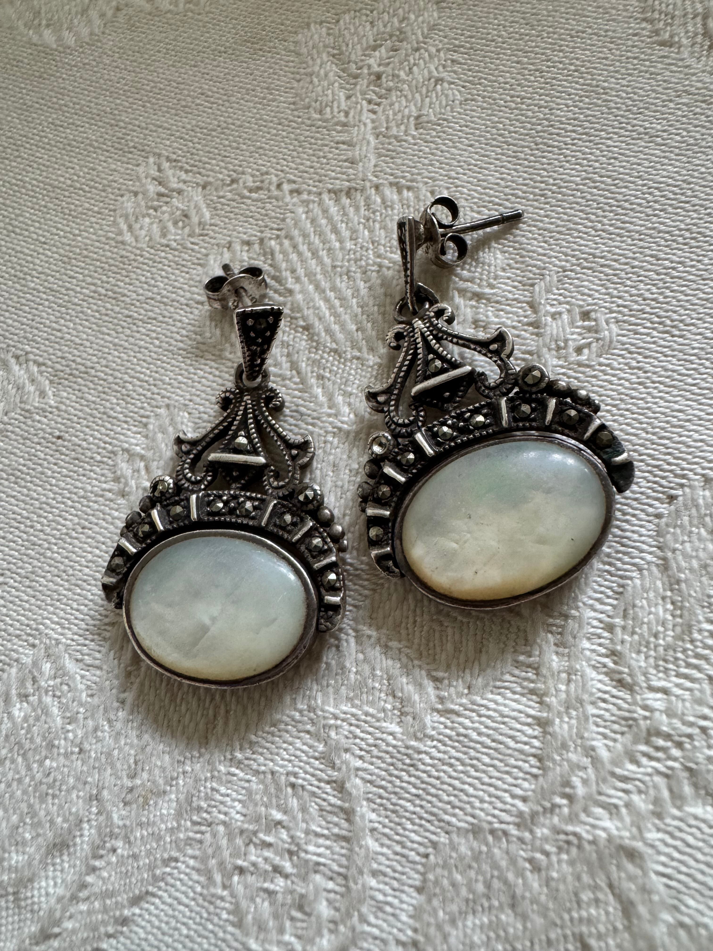 シェルとオニキスの2way式でとても珍しく周りには細やかなマーカサイトがあしらわれております