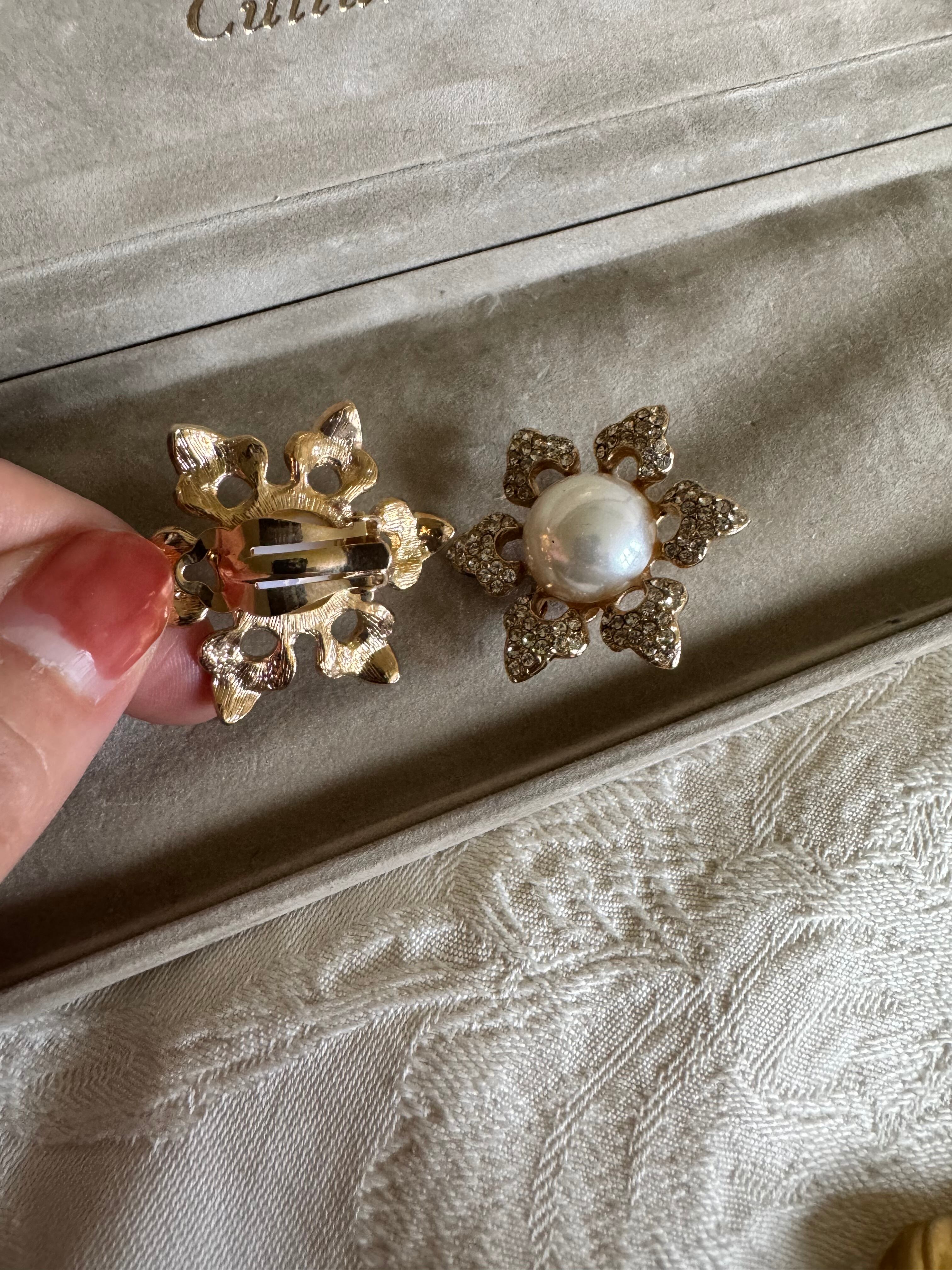 LONDON vintage おおぶり パールビジューお花イヤリング