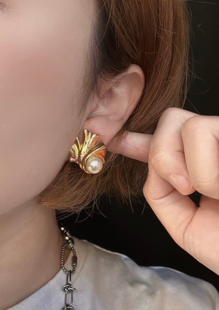 華やかさと洗練を兼ね備えたゴールドフラワービジューイヤリング