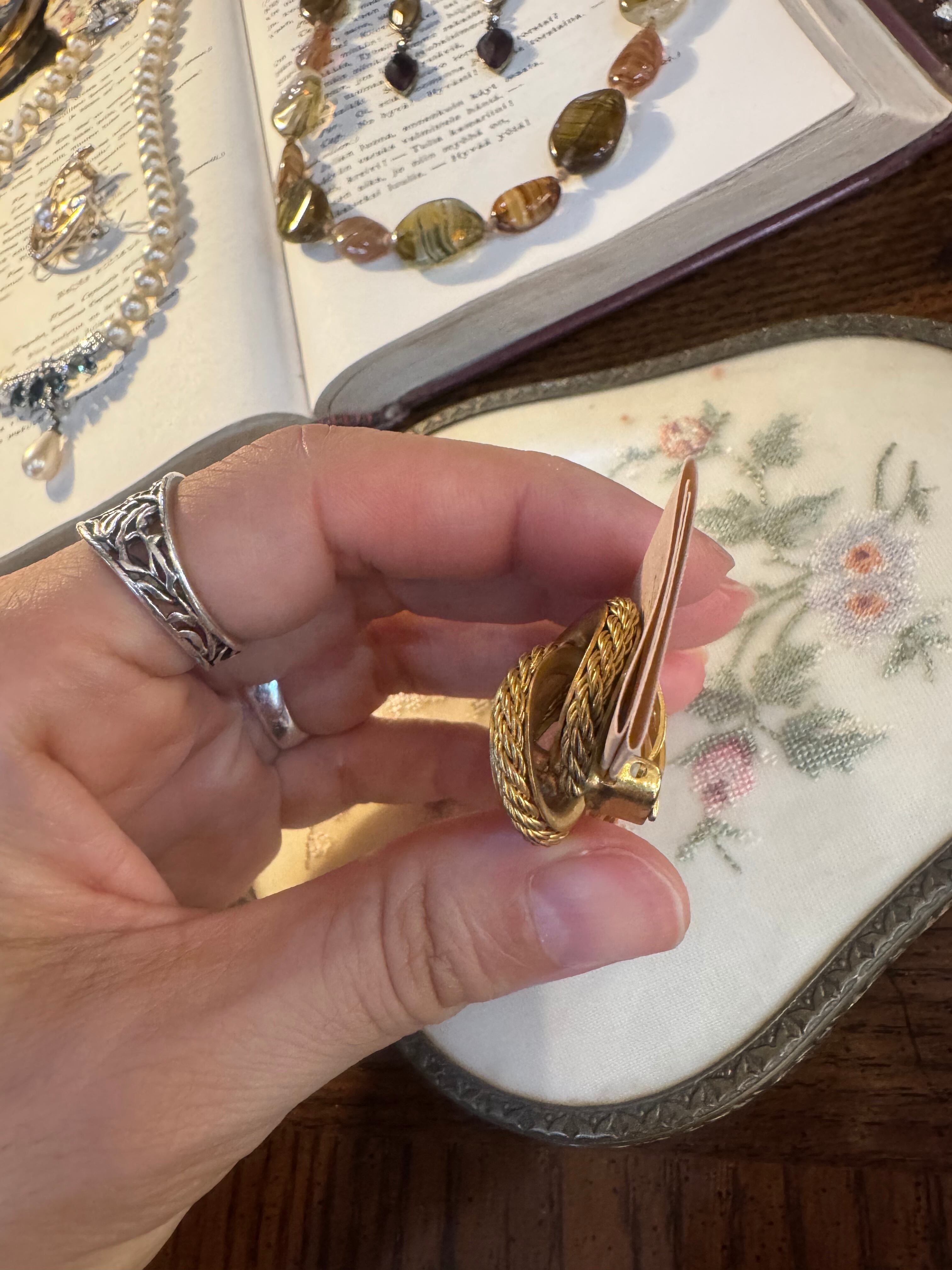 この美しいvintage 立体ゴールドイヤリングは、エレガントさと独自のデザインが際立つアイテムです!立体的なフォルムと華やかなゴールドカラーが、あなたのフェイスラインを引き立て、特別な日のお出かけやカジュアルな日常使いにぴったりです。このイヤリングは、どんなスタイルにもアクセントを加え、あなたの個性を一層際立たせる存在となります。