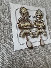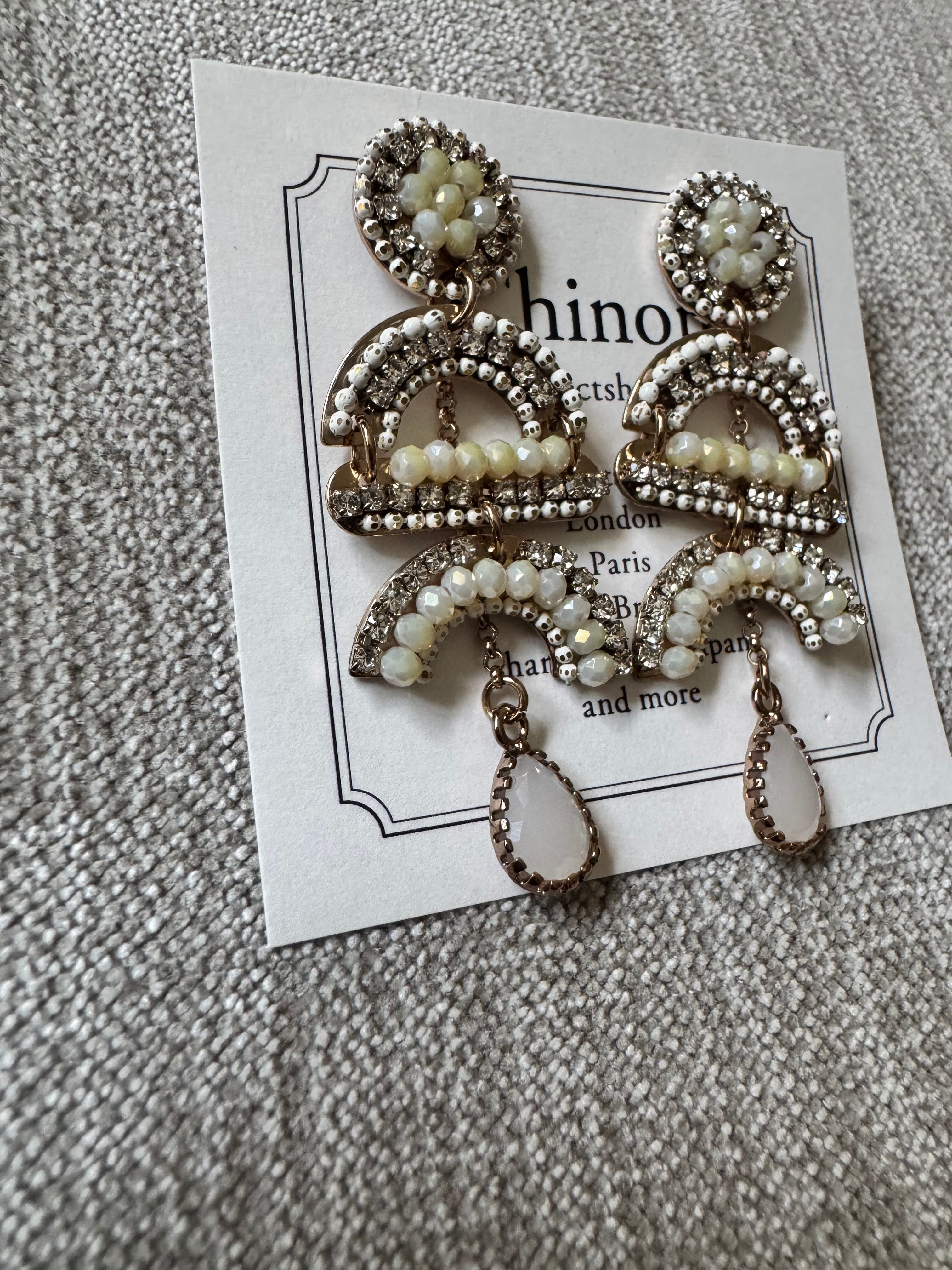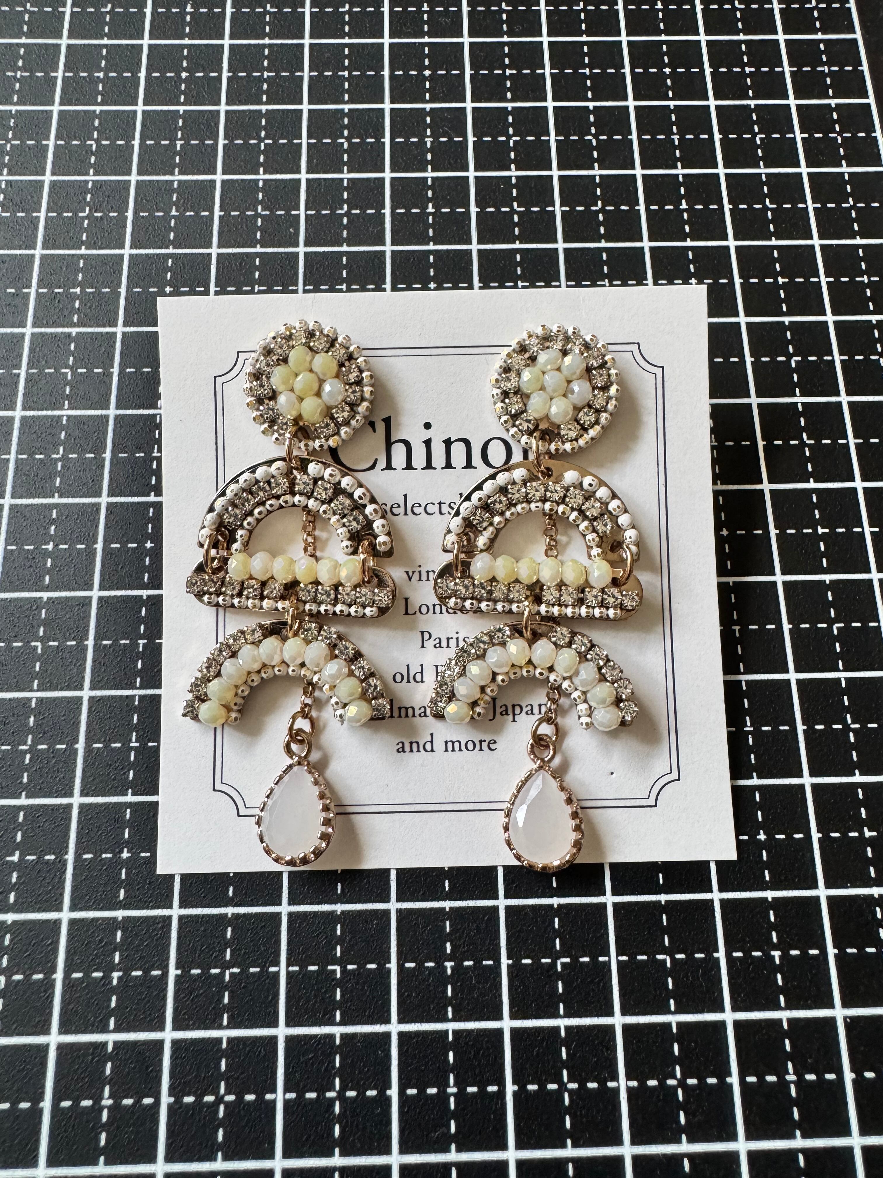 ビジューアーチデザインピアス ホワイト系 チタンメッキポスト