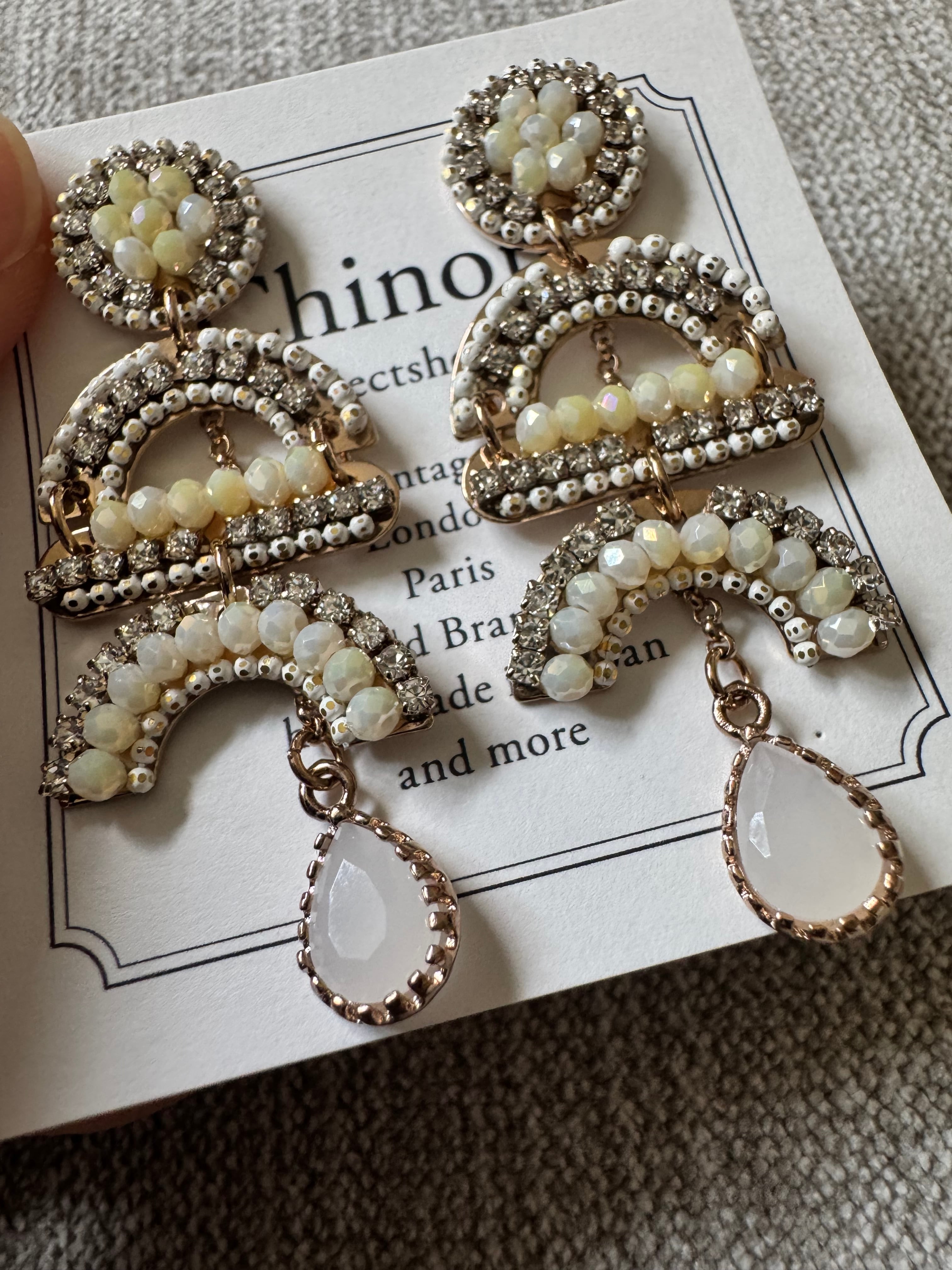 ■ビジューアーチデザインピアス ホワイト系 チタンメッキポスト