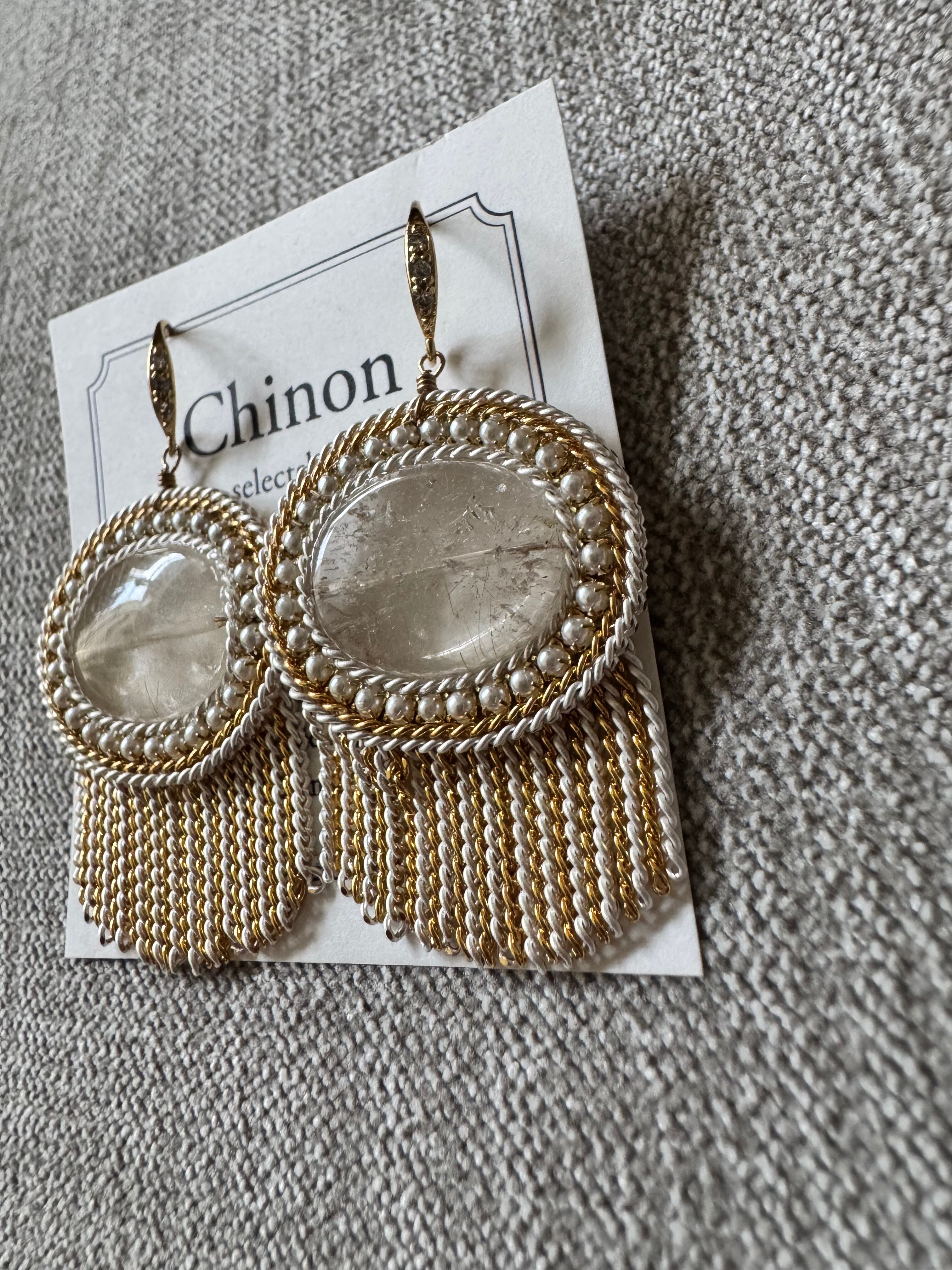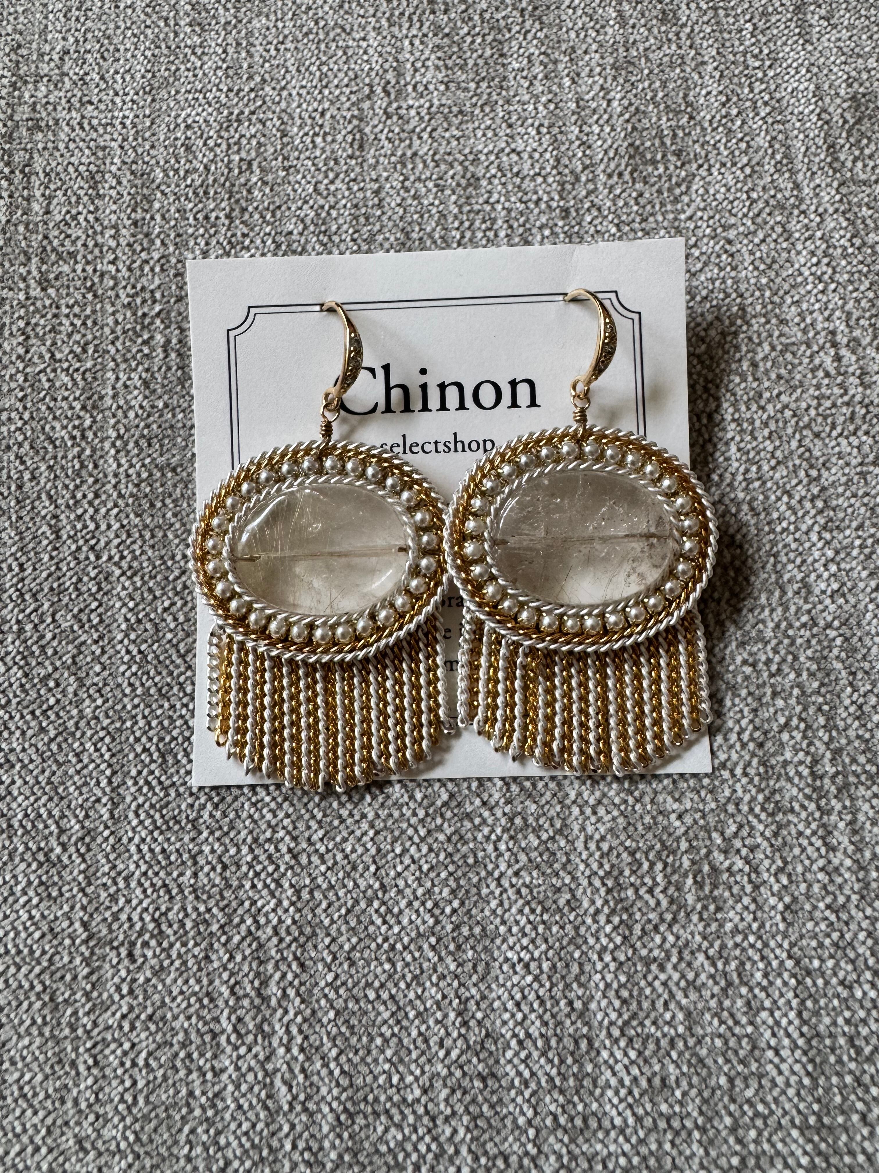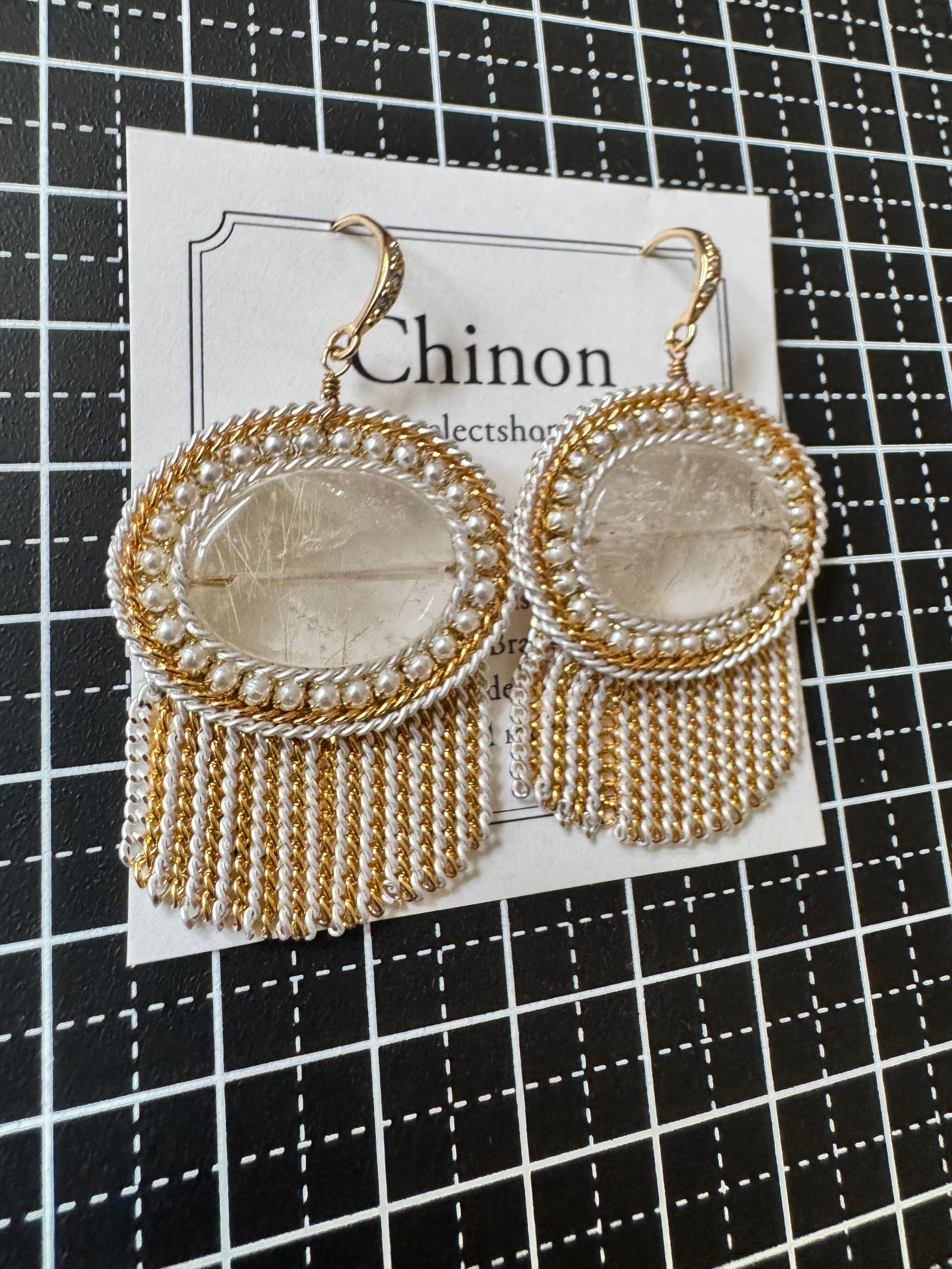 クォーツビジューフリンジピアス 天然石 チタンメッキポスト