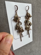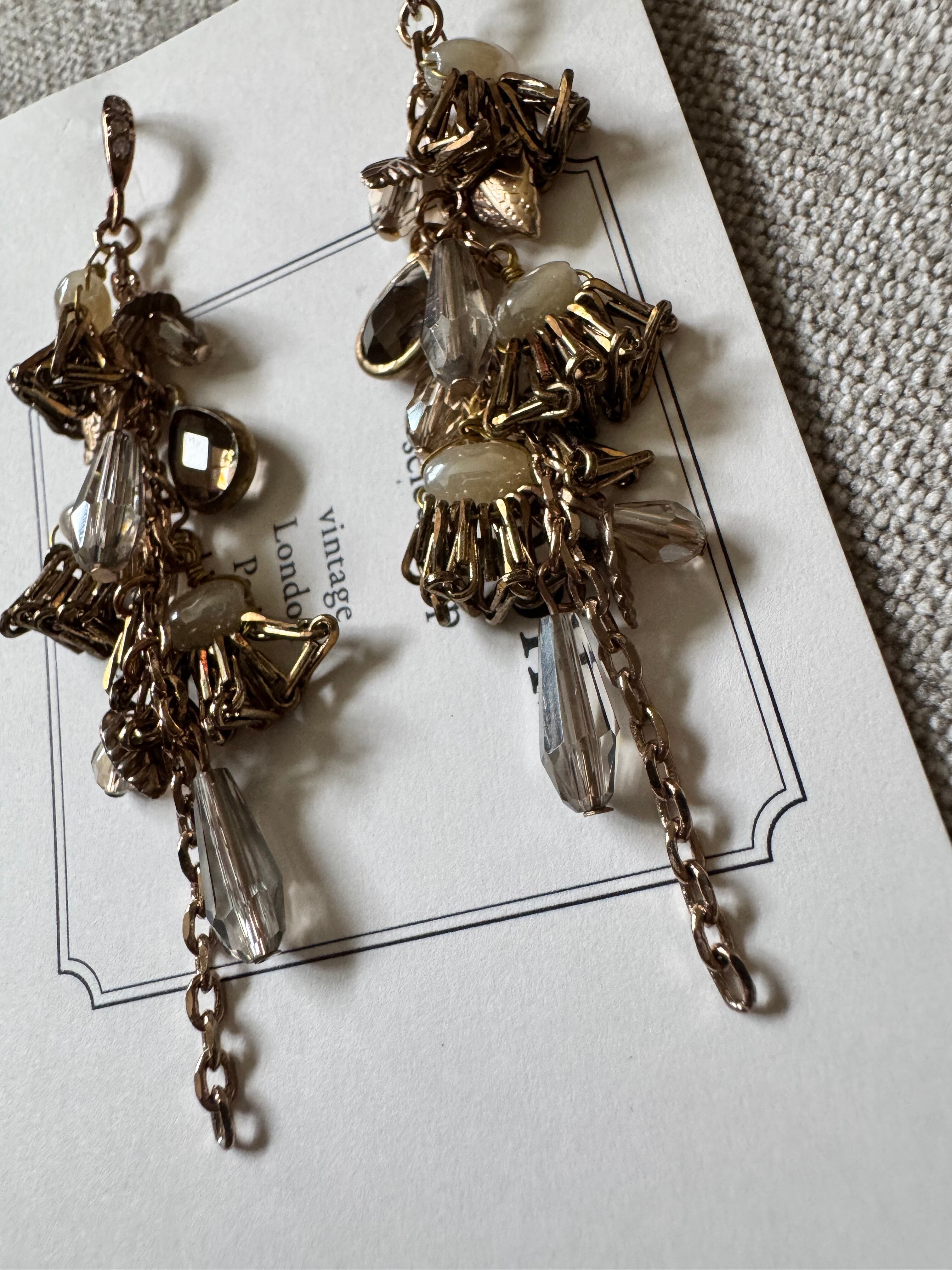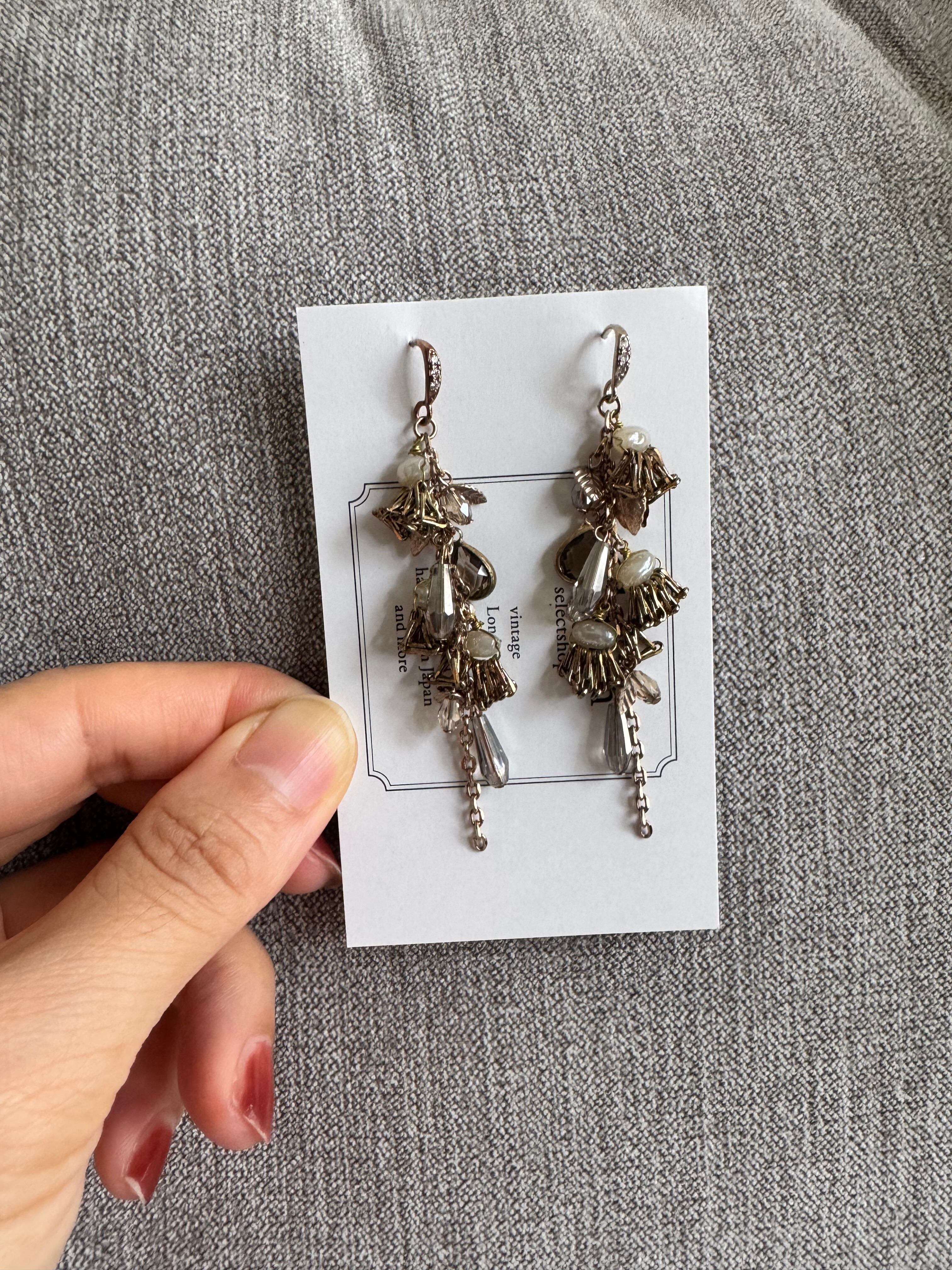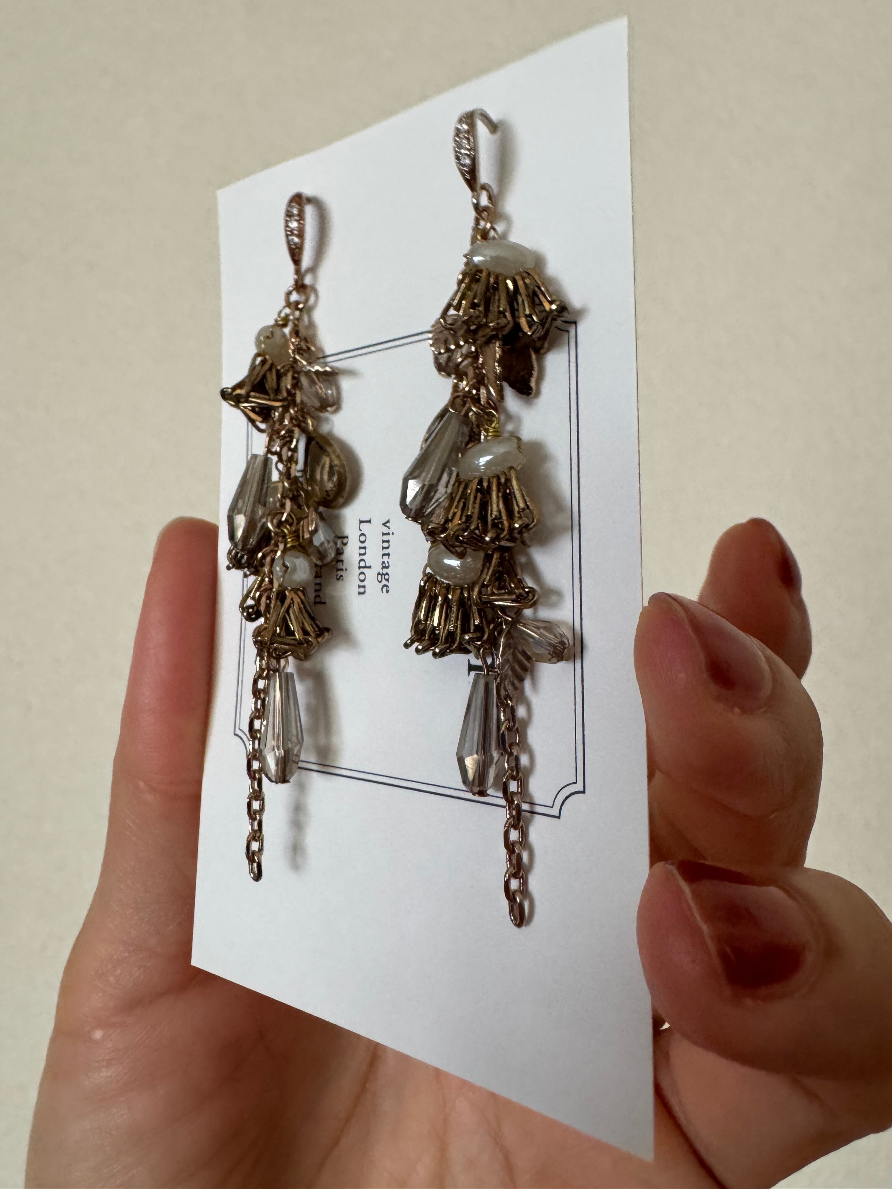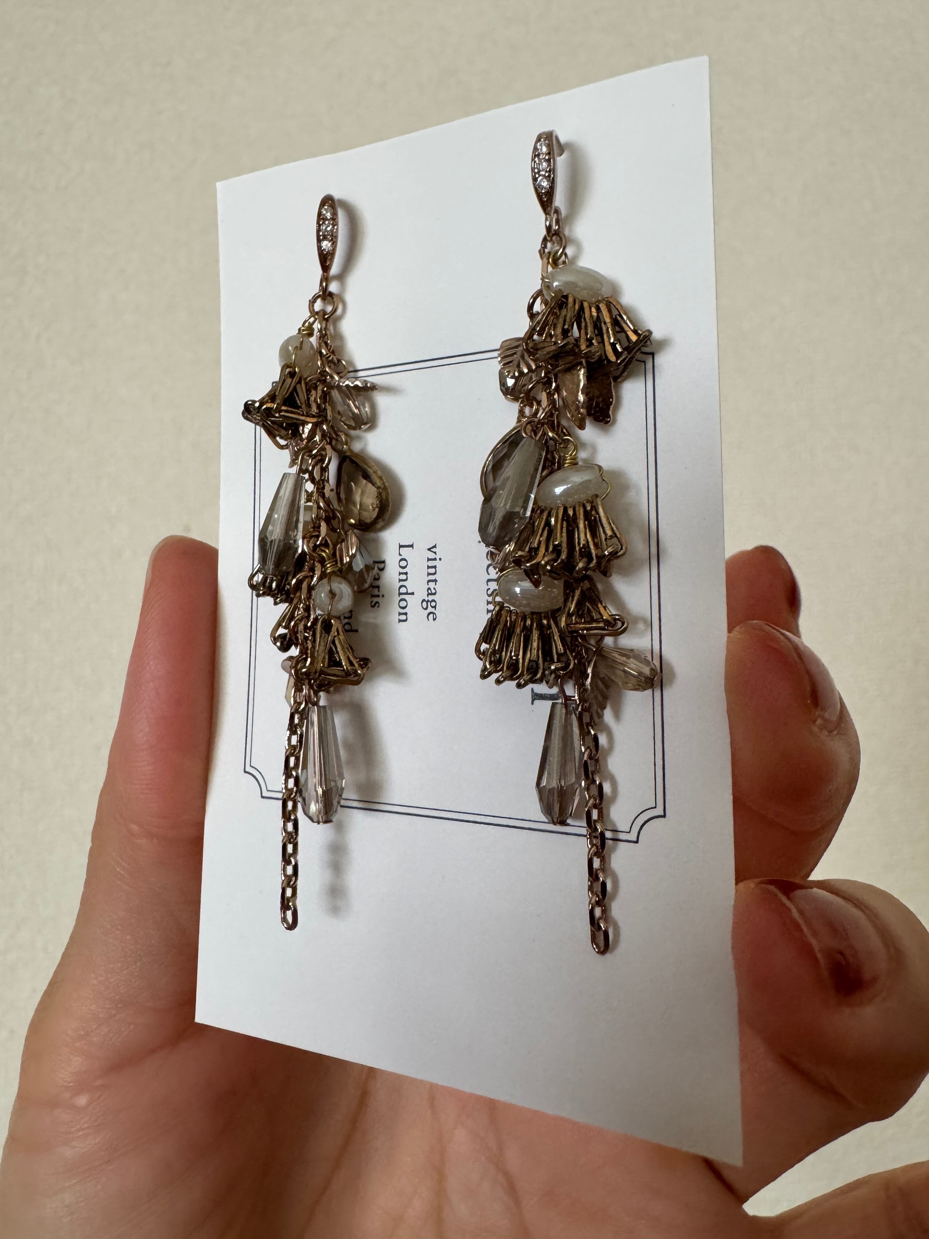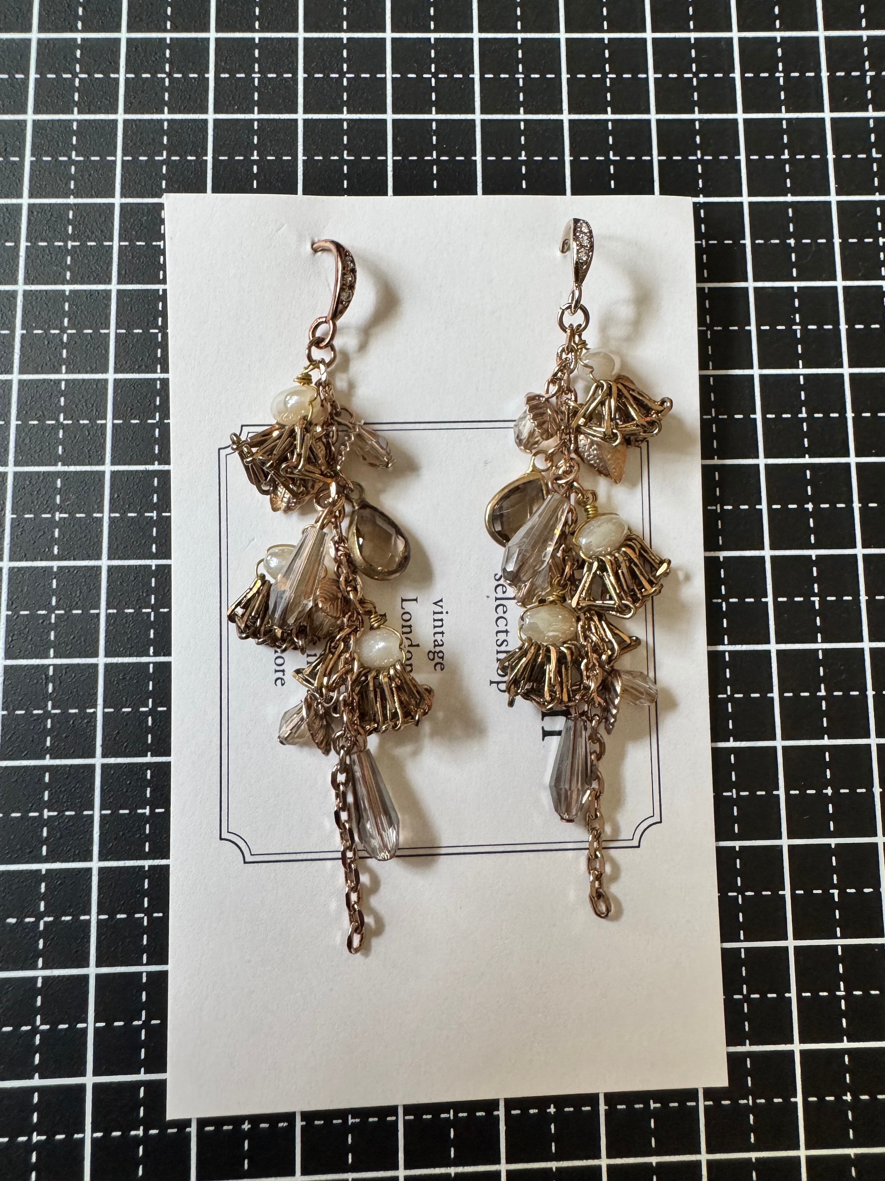 ■グレーベージュビジュー揺れるピアス チタンメッキポスト