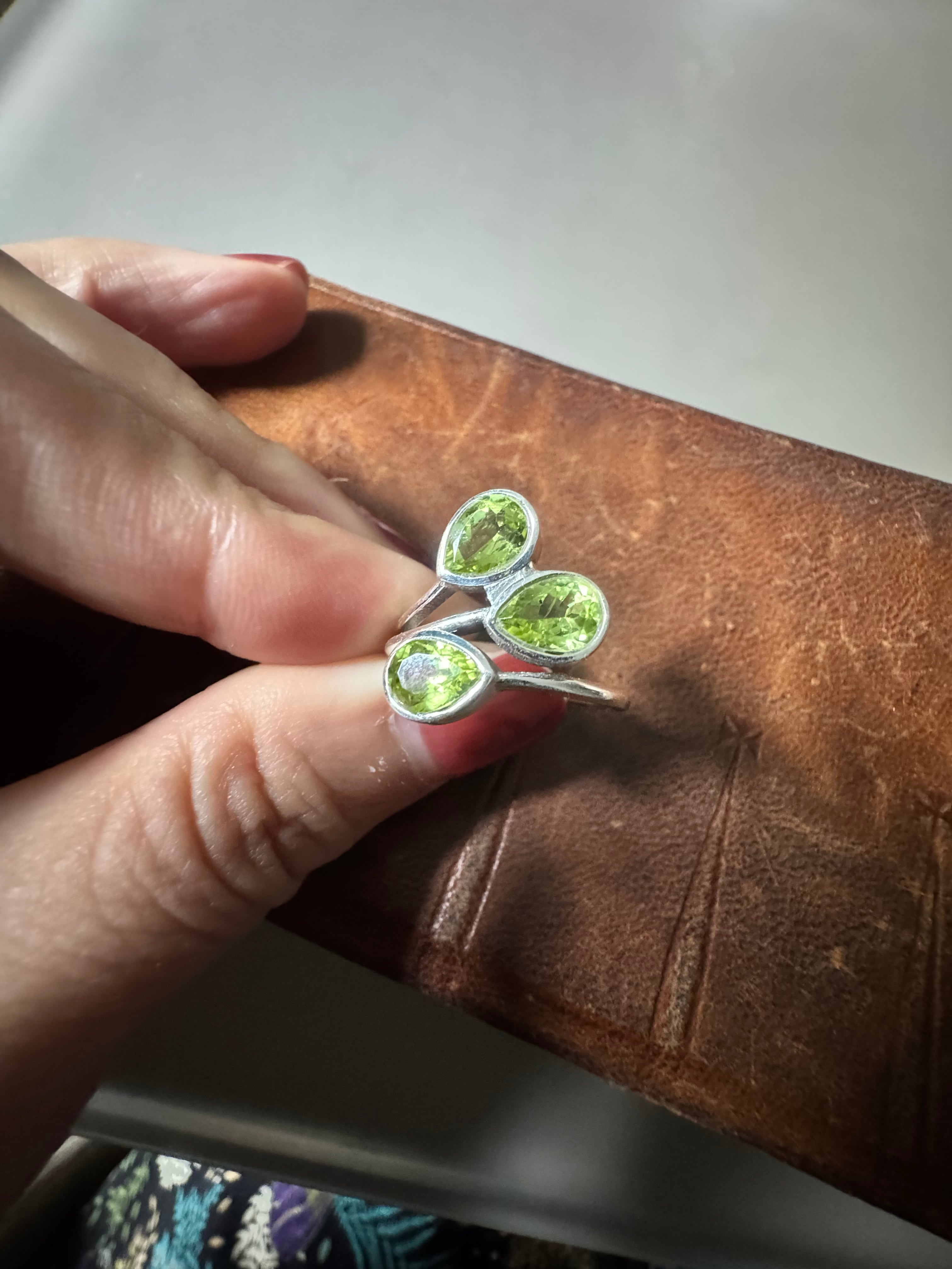 美しいペリドットがあしらわれたシルバーリング。一つ一つ手作業で仕上げられたこの品は、独特の風合いが魅力です。優れたデザインと温かみのあるシルバーが、日常のコーディネートに華やかさを加えます。