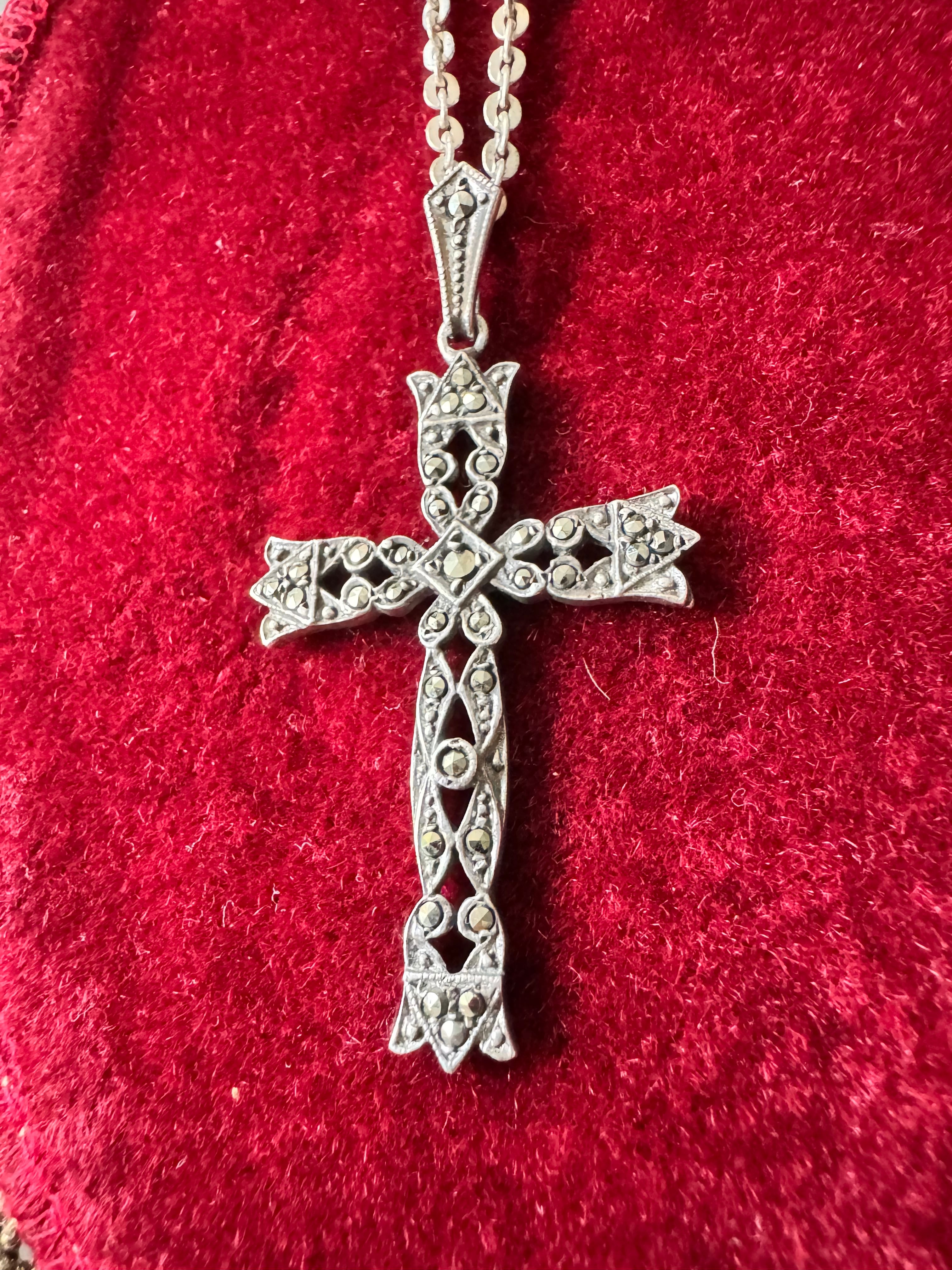 België vintage silver jewery 十字架マーカサイトペンダント