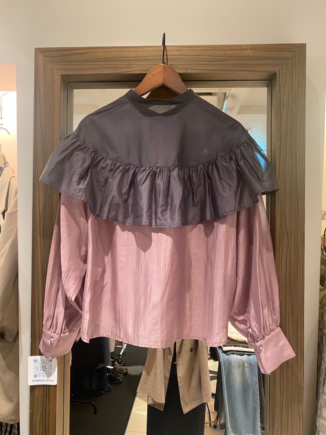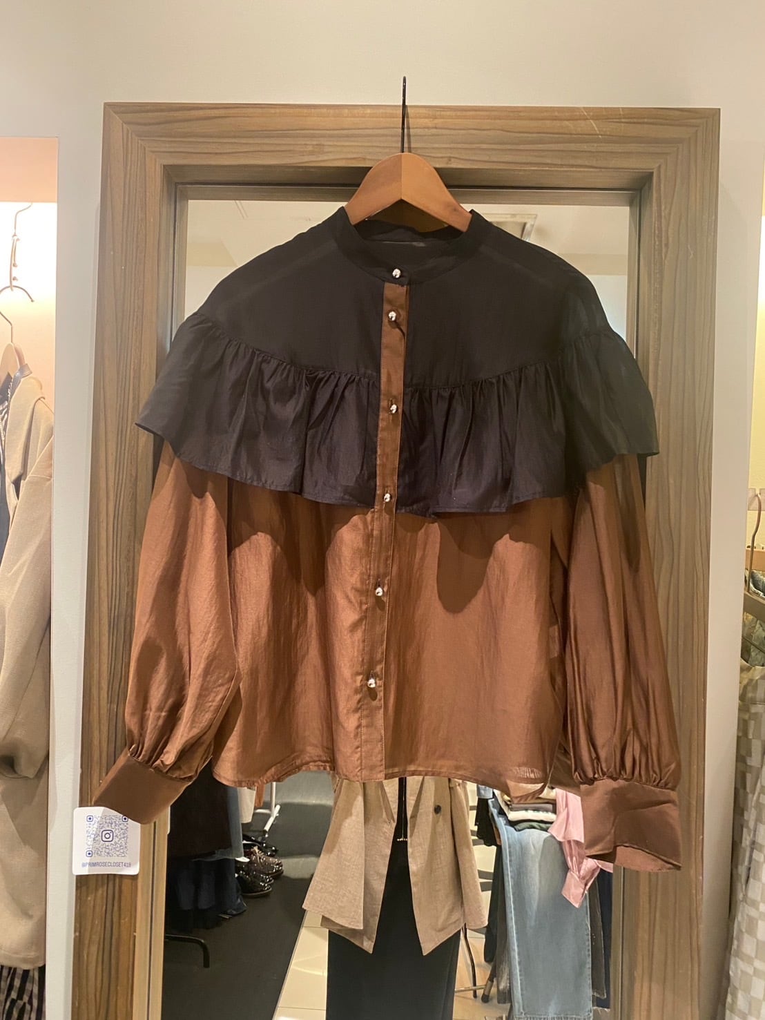 このケープバイカラーフリルブラウスは、洗練されたデザインと独自のカラーリングが特徴です。軽やかな素材が使われており、フリルが施されたデザインは、優雅さと動きのある印象を与えます。あなたを美しく引き立てること間違いなしで、特別なシーンやカジュアルな日常使いにも最適です。職人の丁寧な仕立てにより、細部までこだわりが感じられるアイテムです。