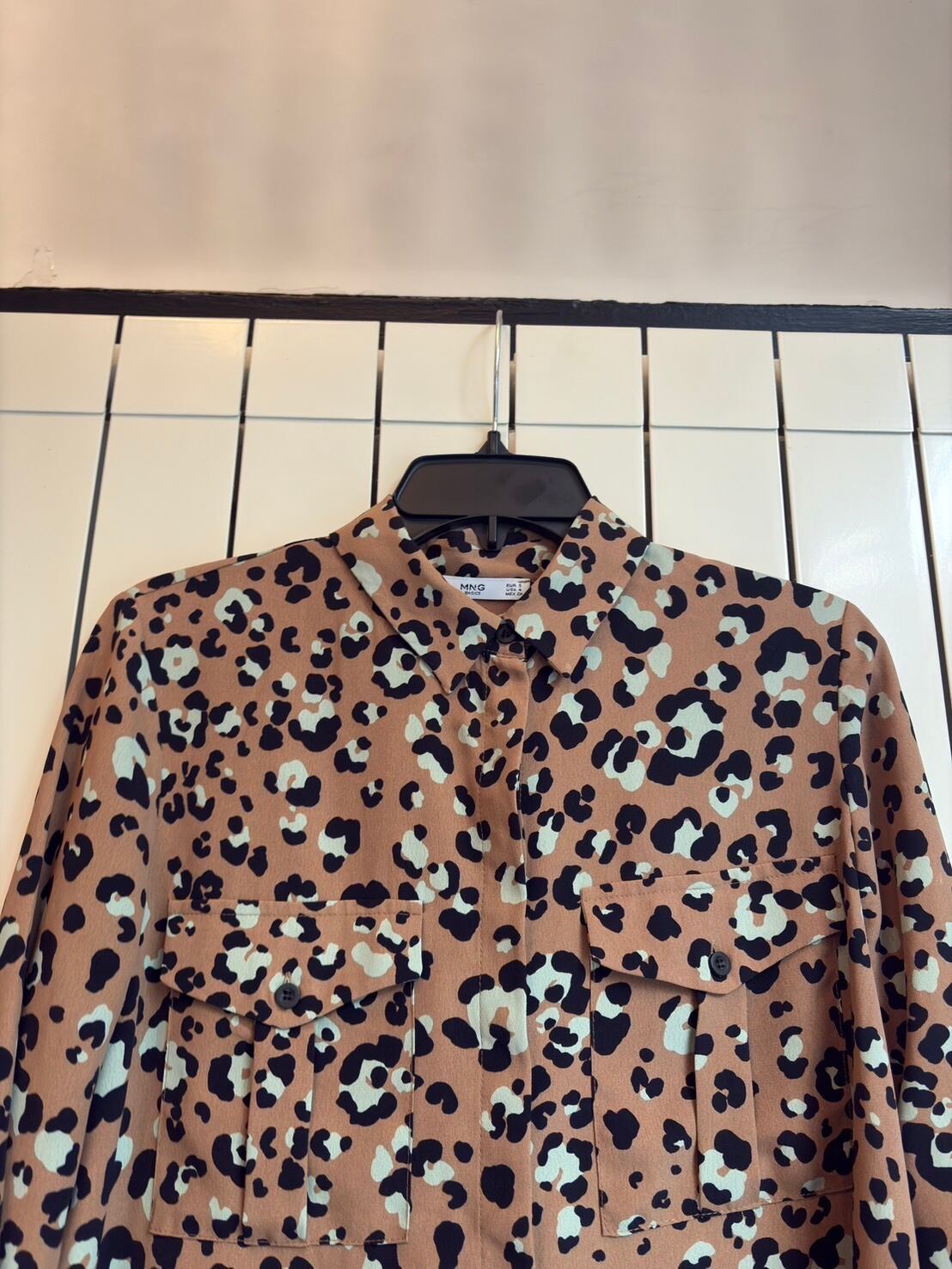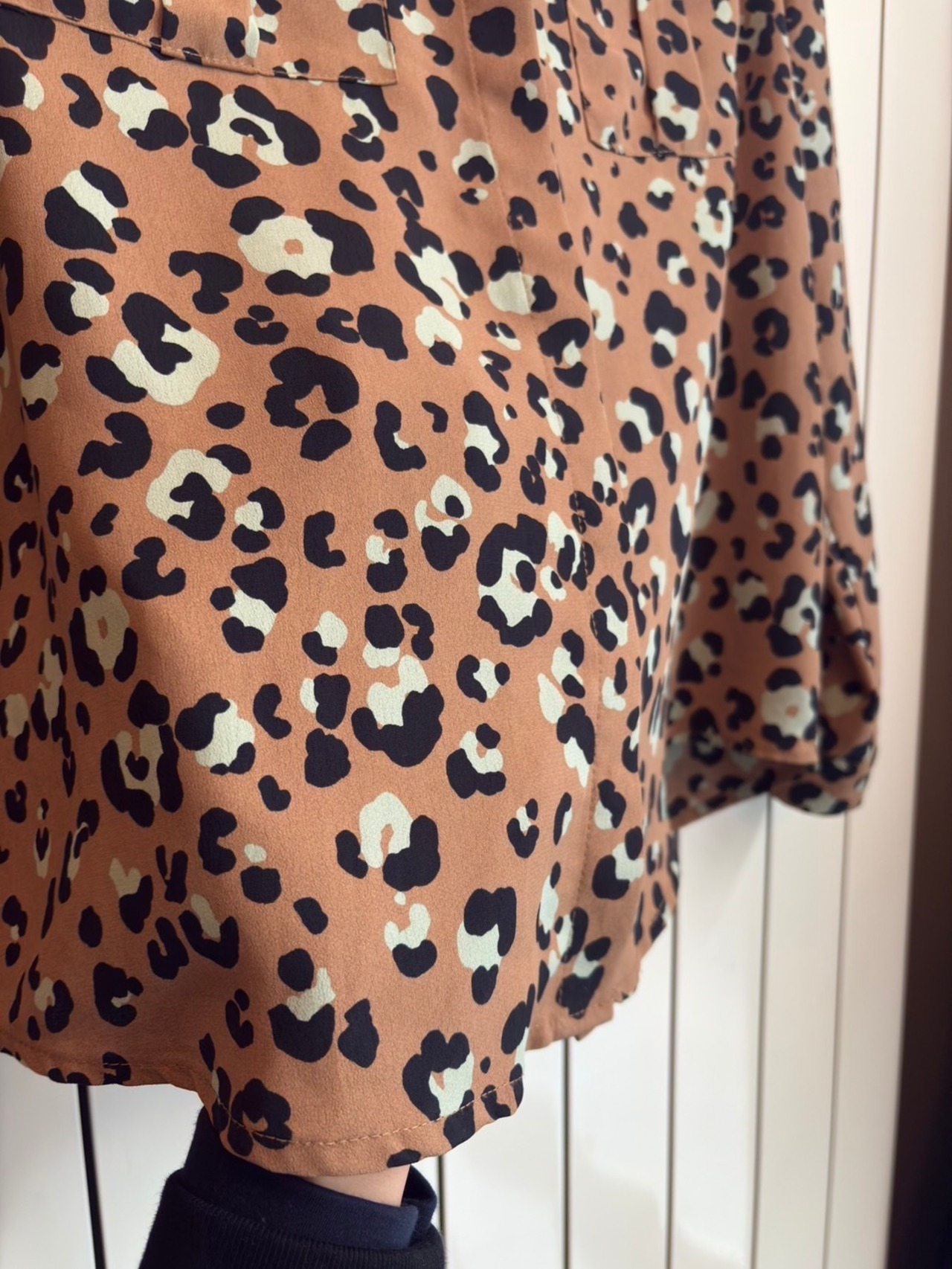 Belgiëvintage キャメルにエメラルド豹柄シャツ