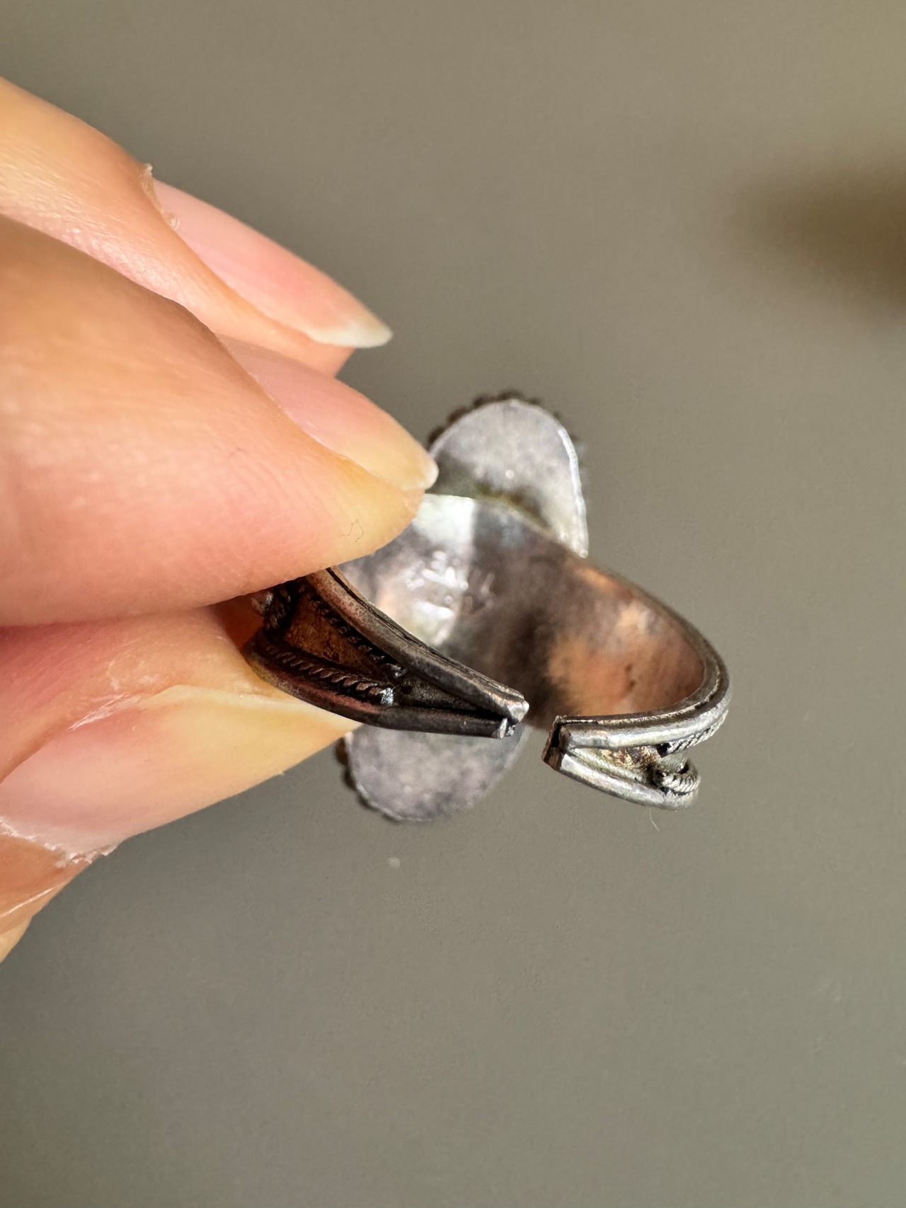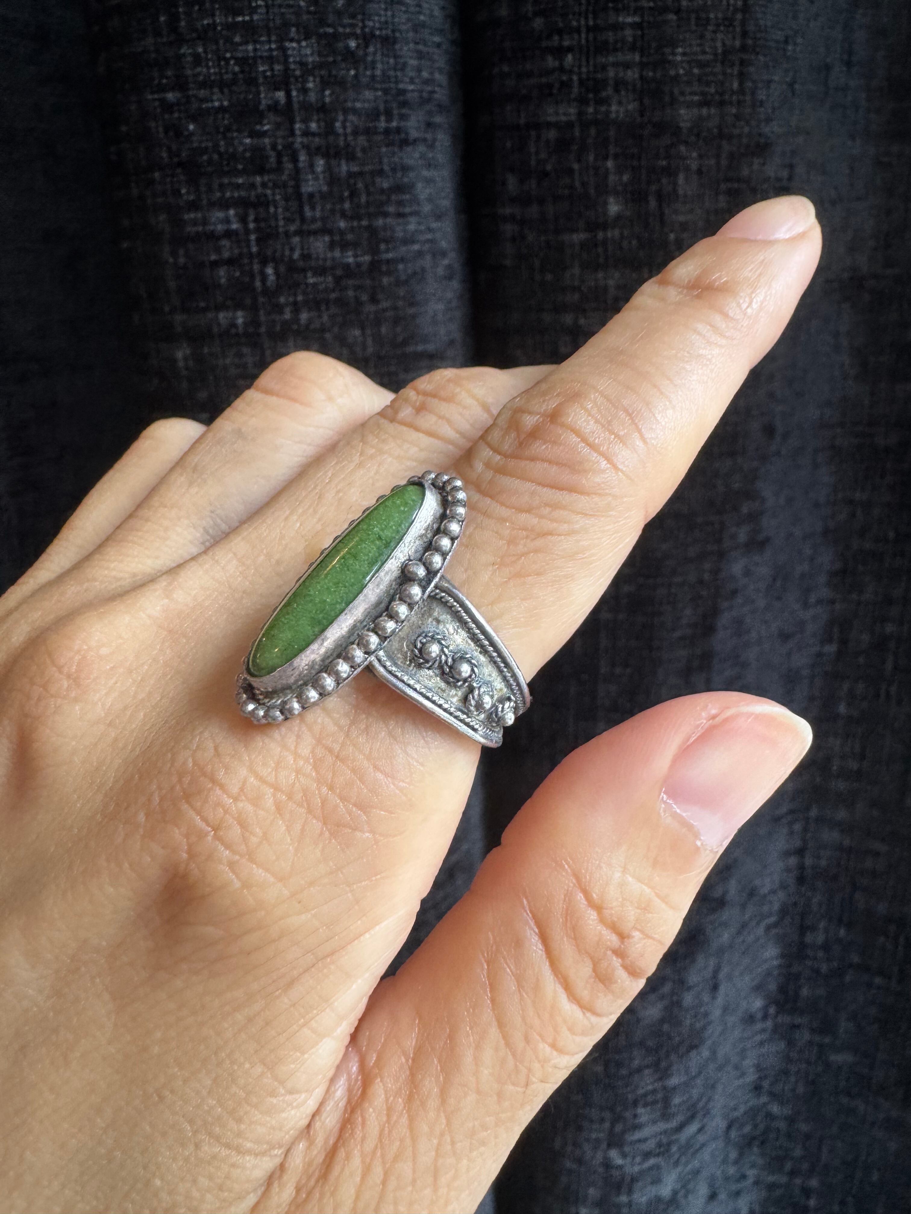 エレガントでありながら個性的な雰囲気を漂わせるアイテムです!ぜひ、この特別なBelgië vintage silver グリーン天然石リングをあなたのコレクションに加えてみてください。