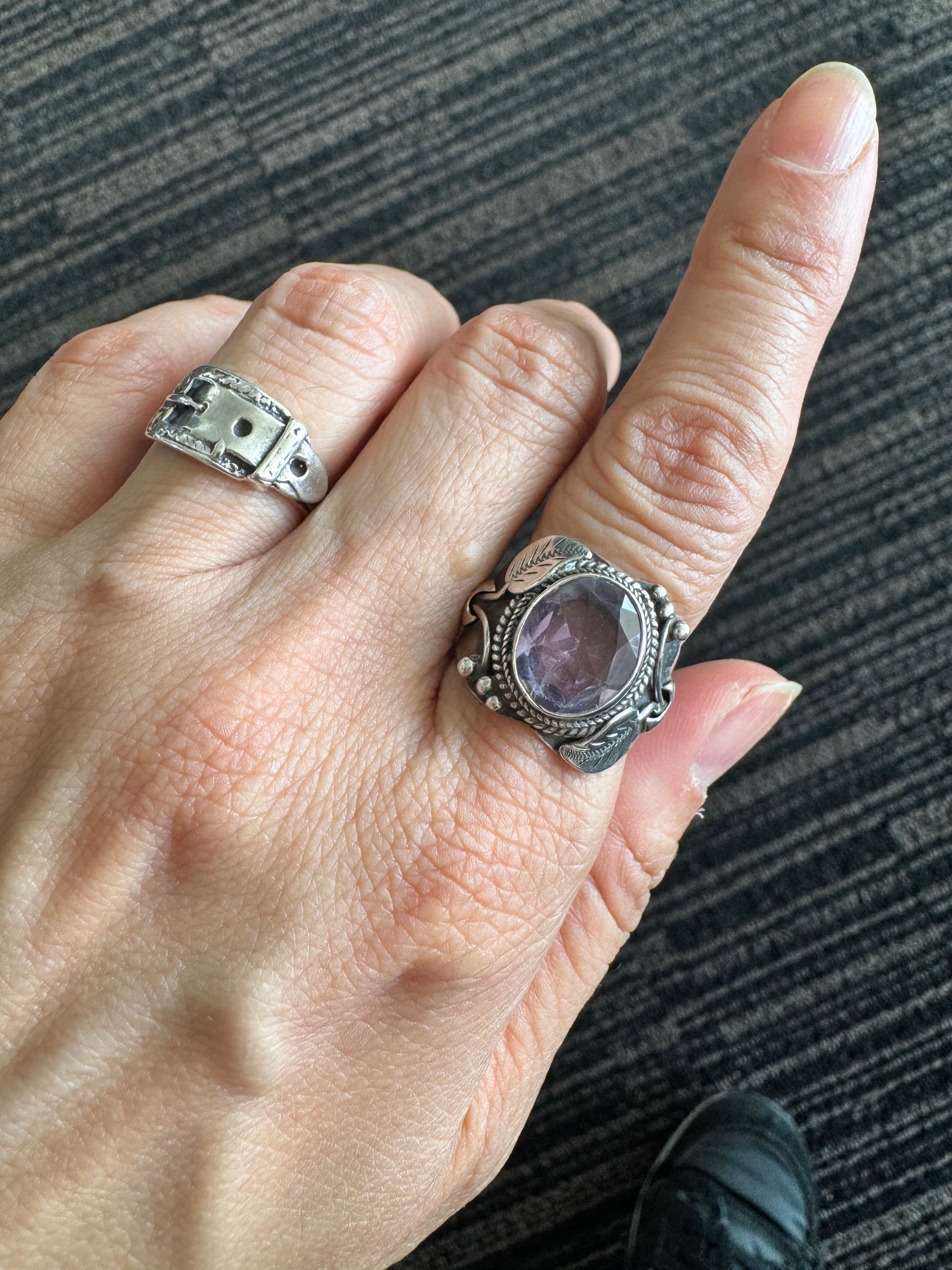 ■België vintage silver ボタニカルシルバーデザインアメジスト