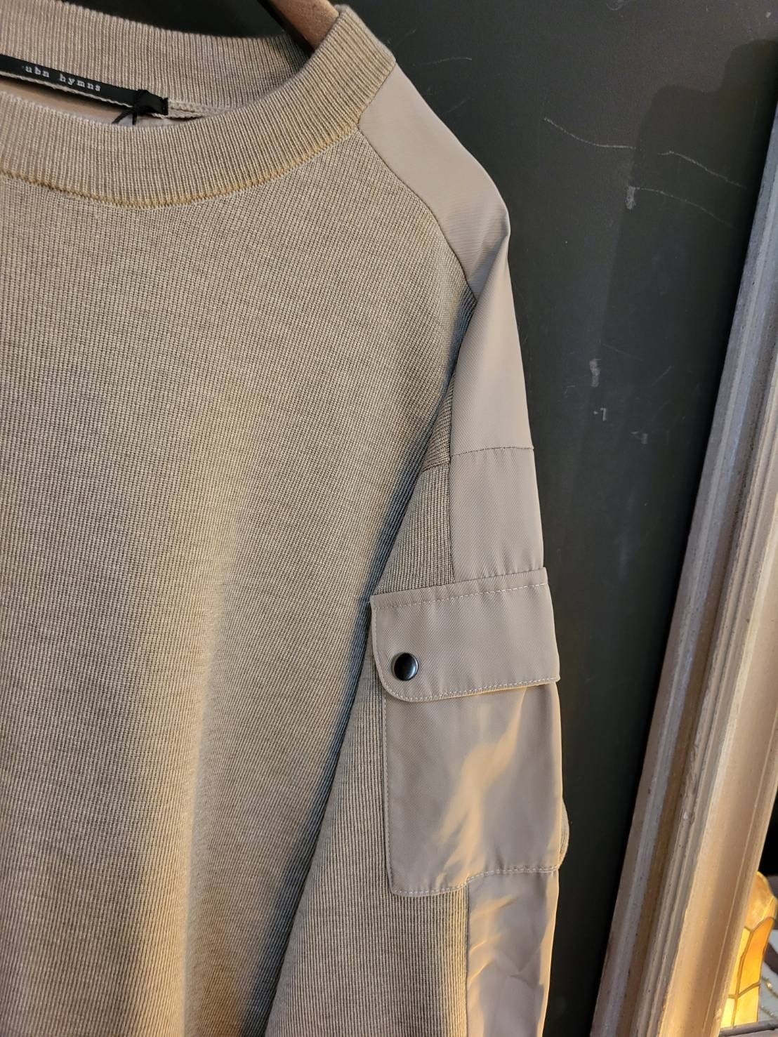 この異素材ドッキングニットは、異なるテクスチャーを絶妙に組み合わせた、ファッション性と快適さを兼ね備えた一着です。ニット素材と異素材のコントラストが特徴で、シンプルながら存在感のあるスタイルを演出します。カジュアルなデイリールックにも、少し特別な日のコーディネートにも活躍する万能アイテムです。