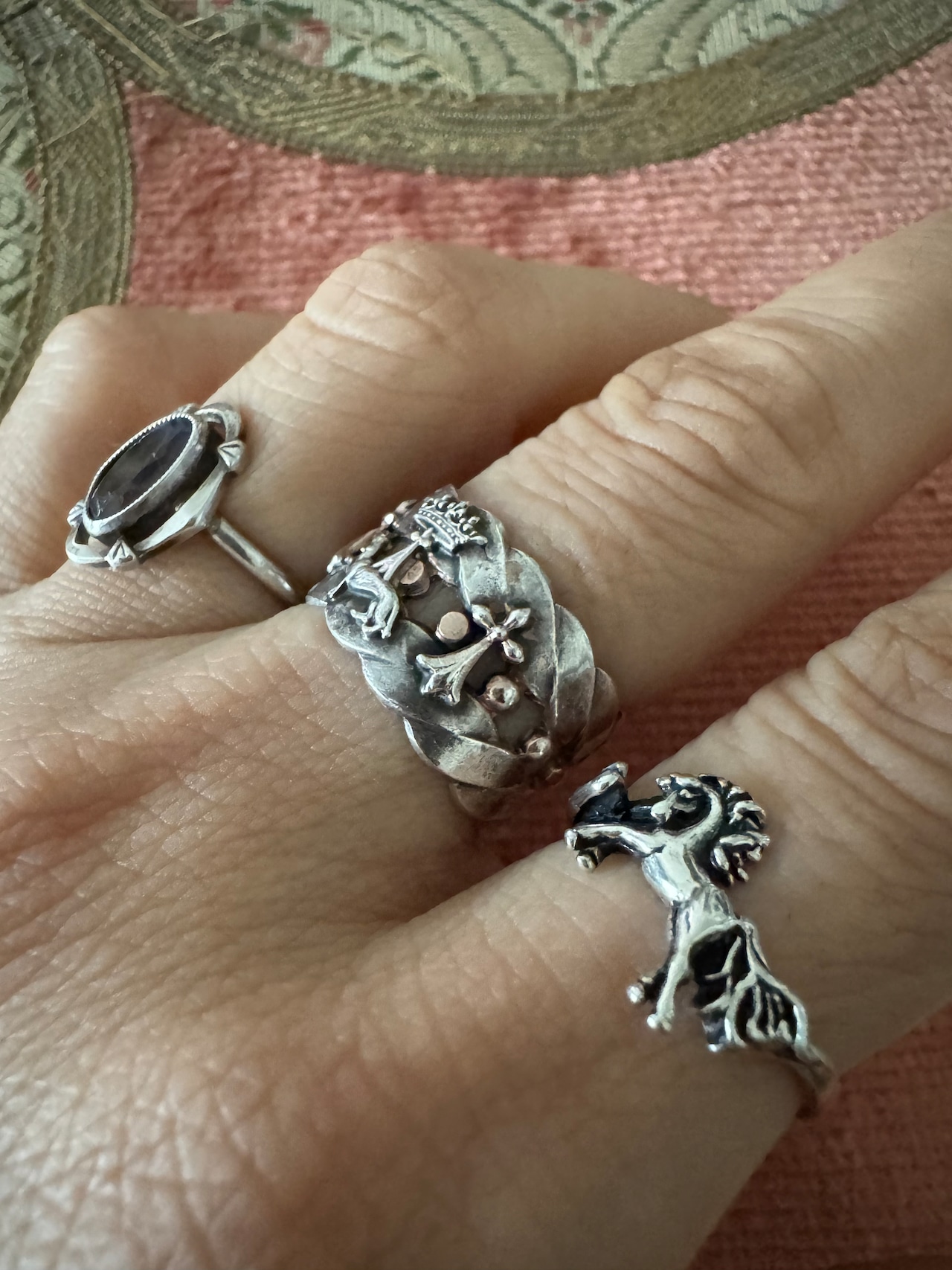 このリングは、ヴィンテージ感漂うユニークなデザインが特徴です。様々なシーンにフィットし、デイリー使いはもちろん、特別な日にも華を添えるアクセサリーとして大活躍することでしょう。このeurope vintage silver 馬デザイン12号が、あなたのジュエリーコレクションに新たな魅力をもたらすことをお楽しみください。
