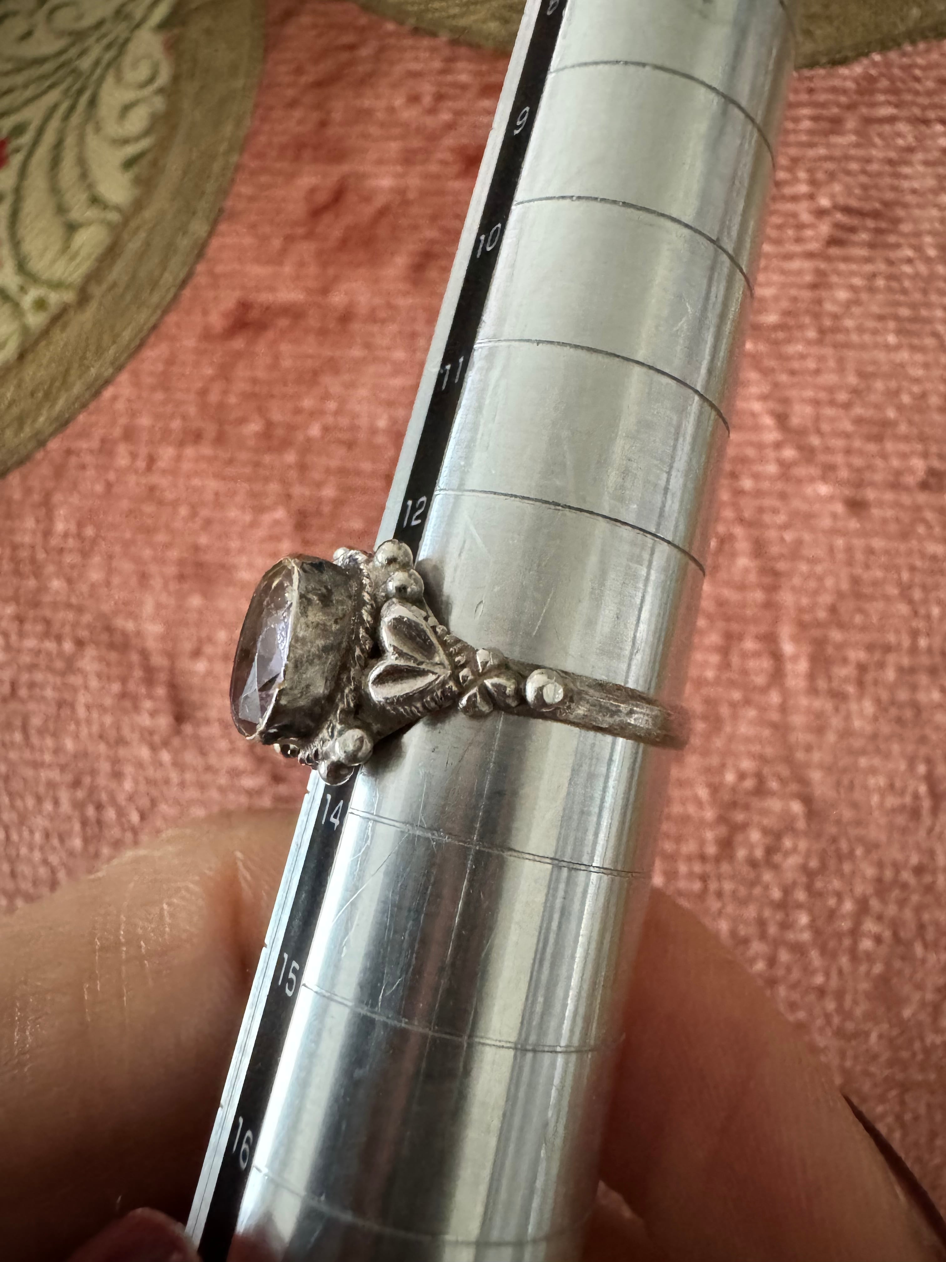 europe vintage silver 紫天然石ボタニカルデザインリング13号