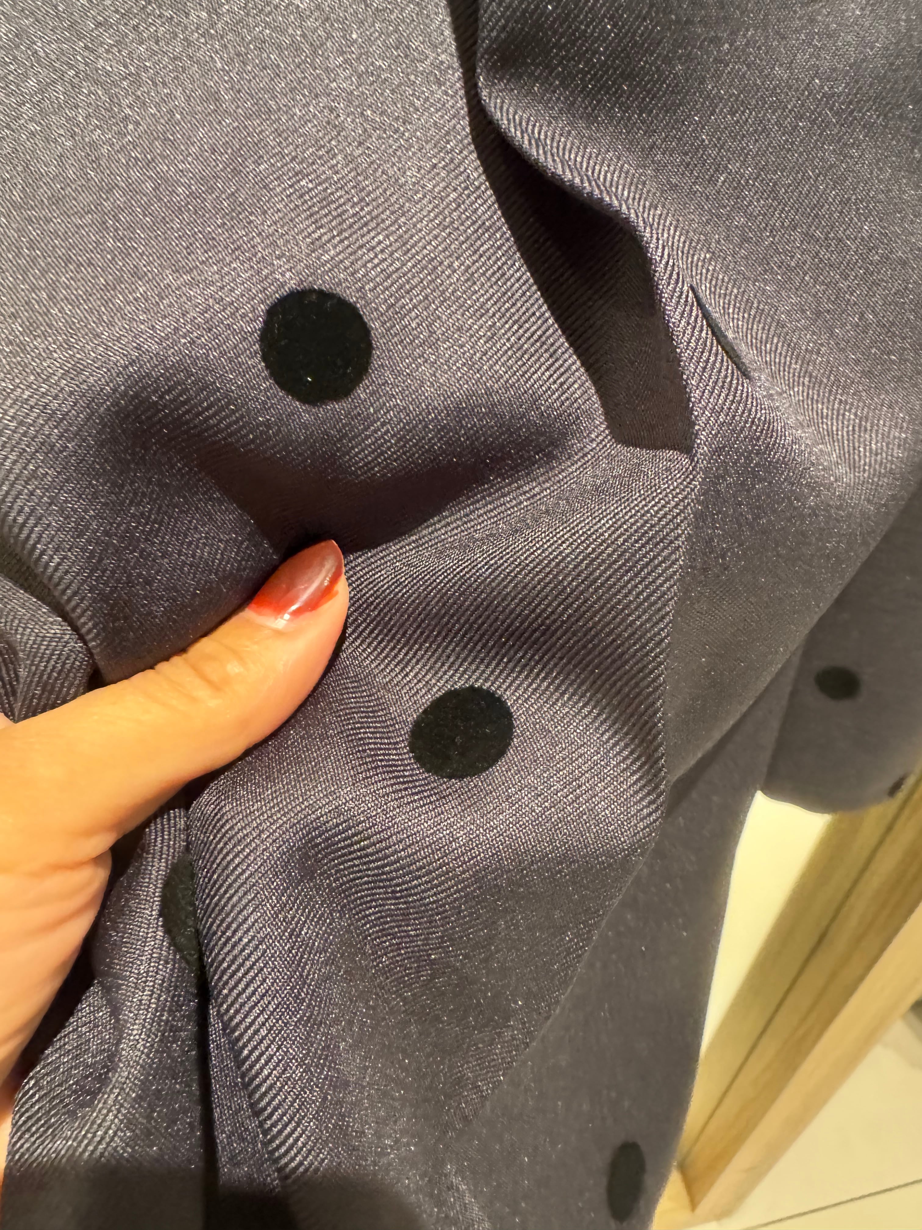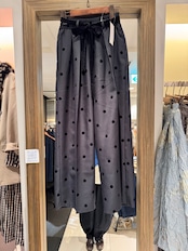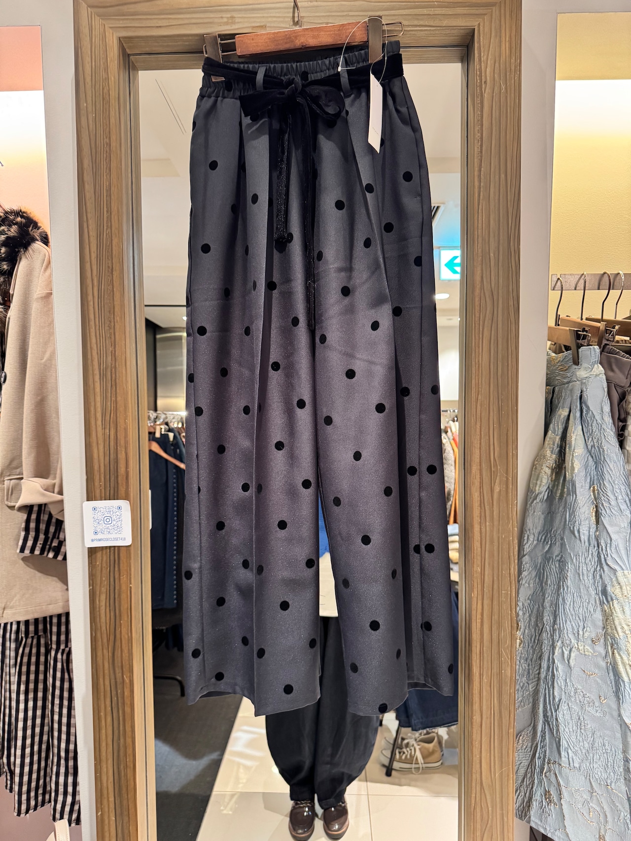 このウエストベロアリボンフロッキードットパンツは、ワイドめなデザインが魅力のアイテムで、リラックスしたスタイルを演出します。柔らかなベロア素材と可愛いフロッキードットが、トレンド感とエレガンスを兼ね備えた特別なパンツです。