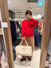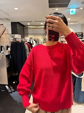この赤スゥエットデザインニットは、ゆったりサイズが魅力のアイテムで、リラックスしたカジュアルスタイルを演出します。柔らかなニット素材が優しい着心地を提供し、デイリーコーデに温かみを加える特別なニットです。