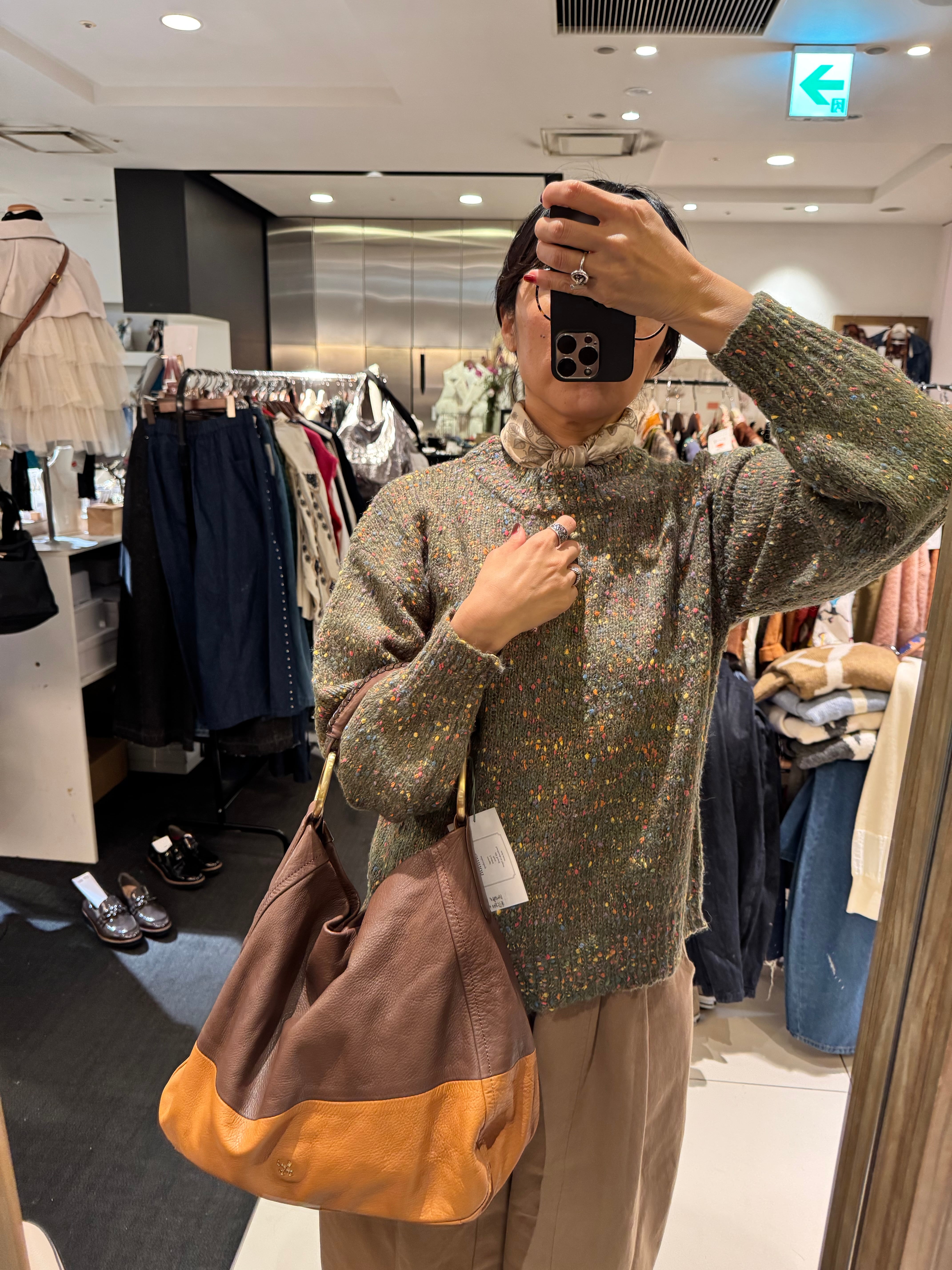 このニットは、多彩なグリーンの色合いが融合し、見る人を惹きつける魅力があります。シンプルなボトムスと組み合わせることで、華やかさと遊び心を演出できます。普段使いから友人とのお出かけ、少し特別なシーンまで幅広く活躍する一着です。このカラフルミックスグリーンニットが、あなたのワードローブに新たな彩りを添えてくれることを願っています。