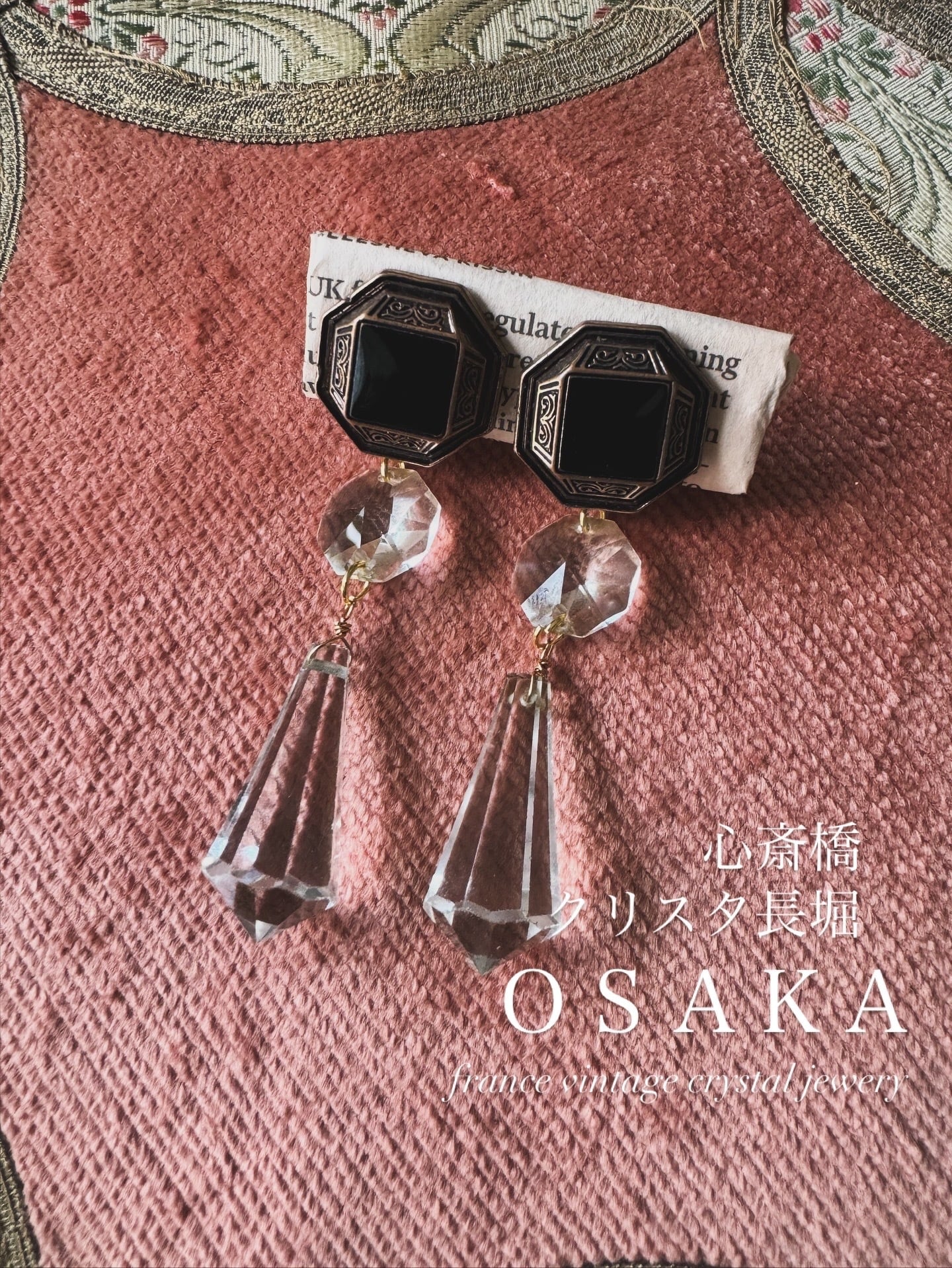 ■ヨーロッパビンテージパーツ クリスタルイヤリングアンティークのカボション