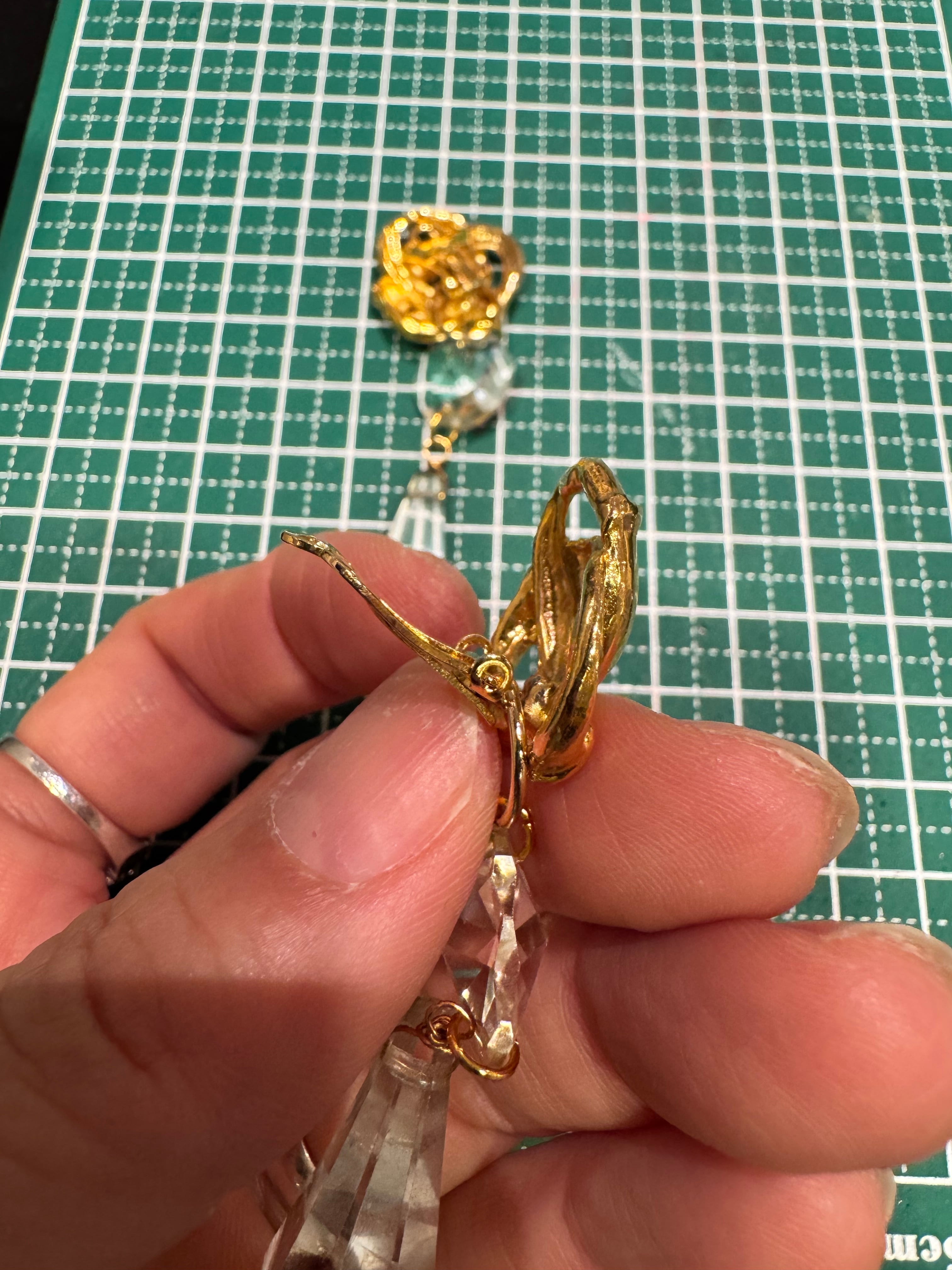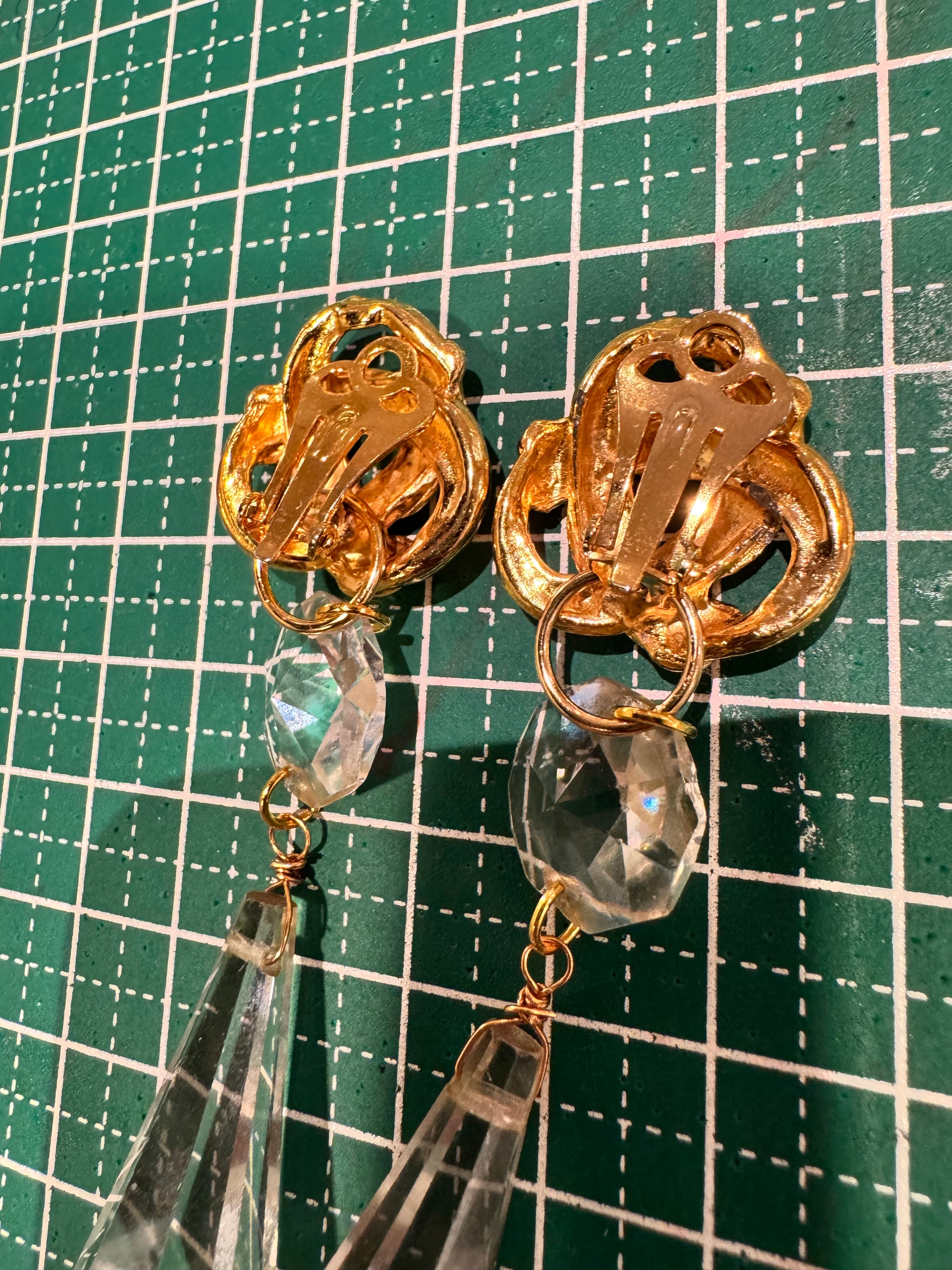 ■ヨーロッパビンテージパーツ ゴールドクリスタルイヤリングアンティークのカボション