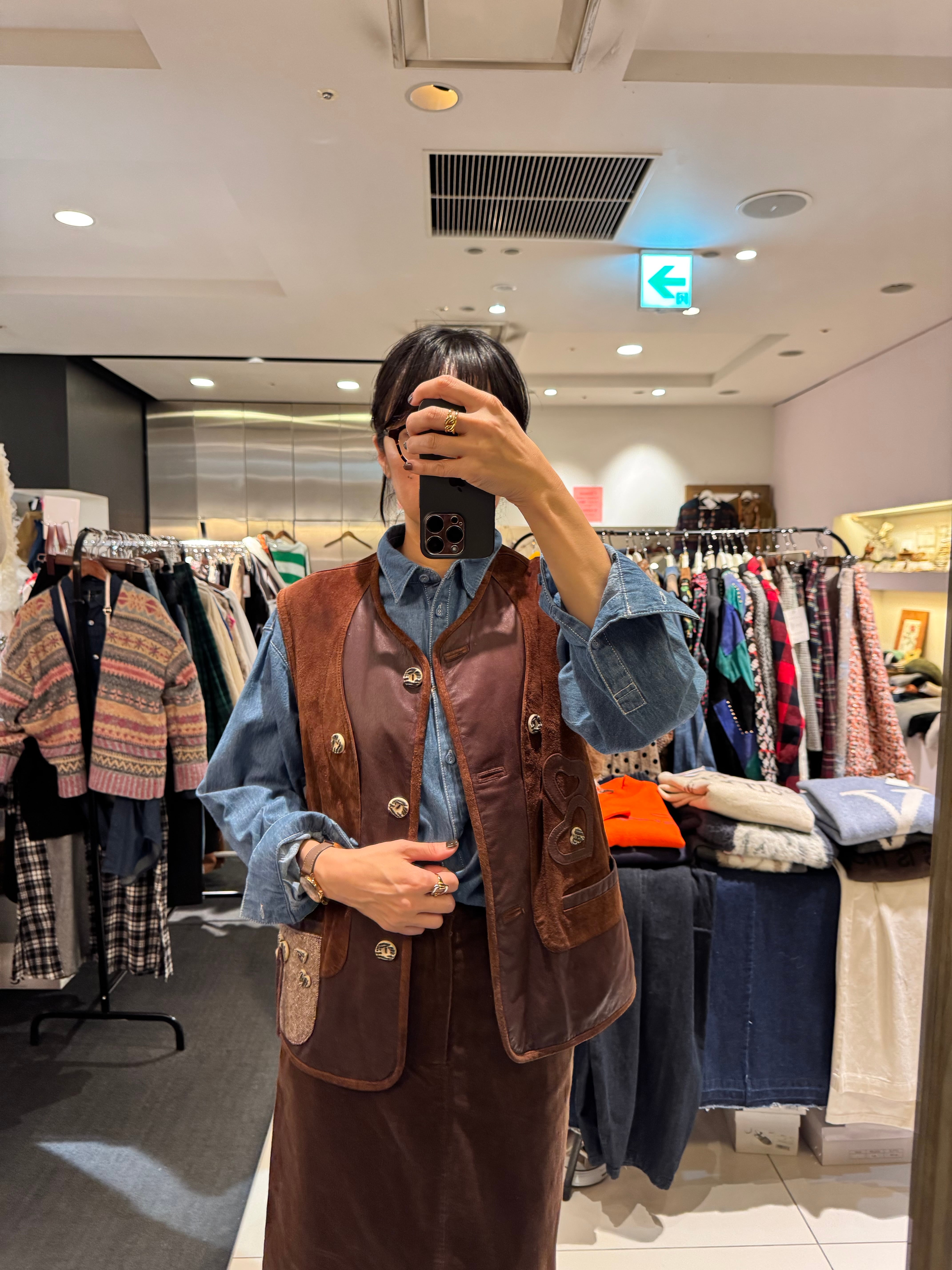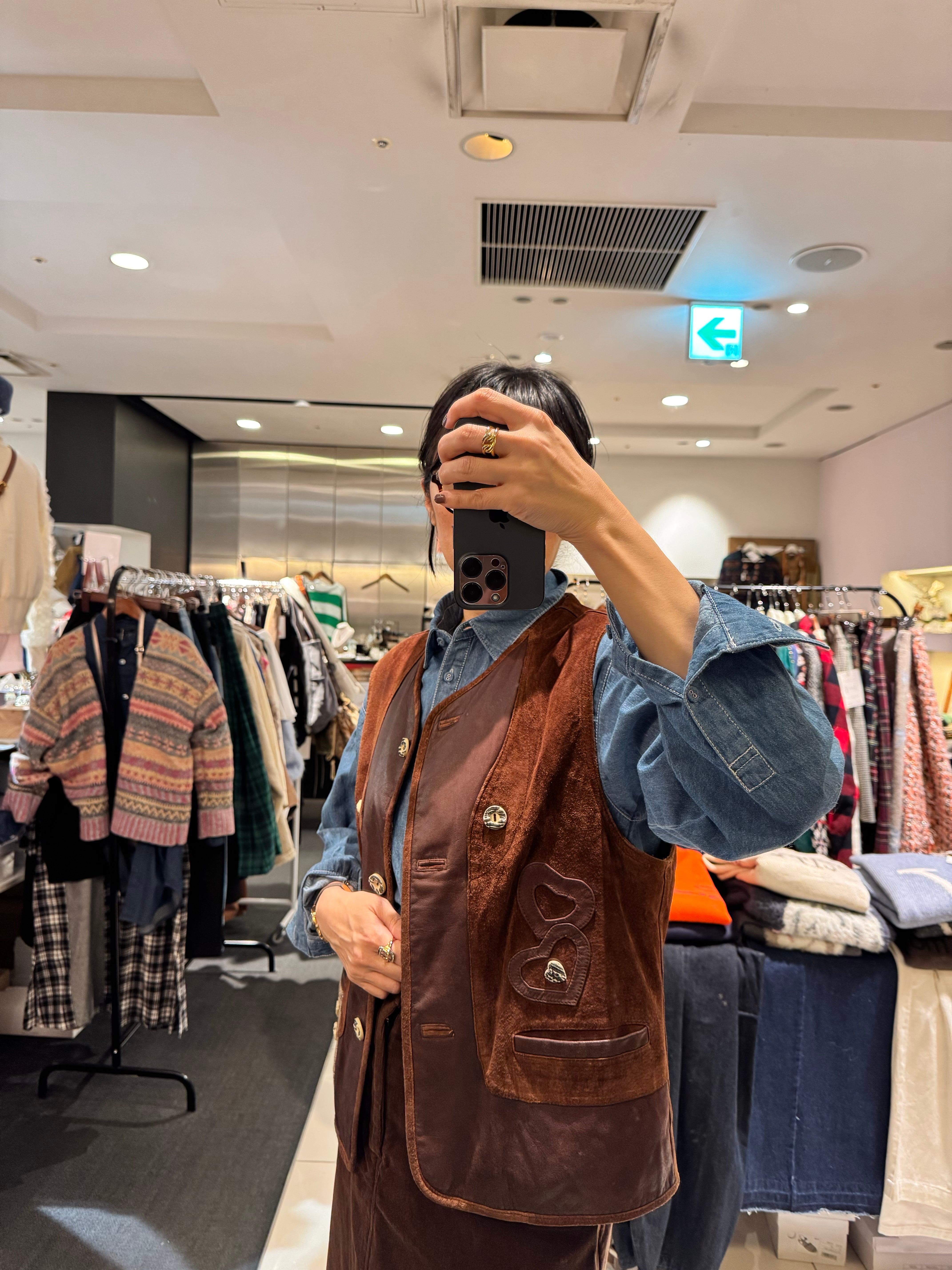 ■個性的なスタイルを演出するvintage ハートパッチワークスゥエードベスト