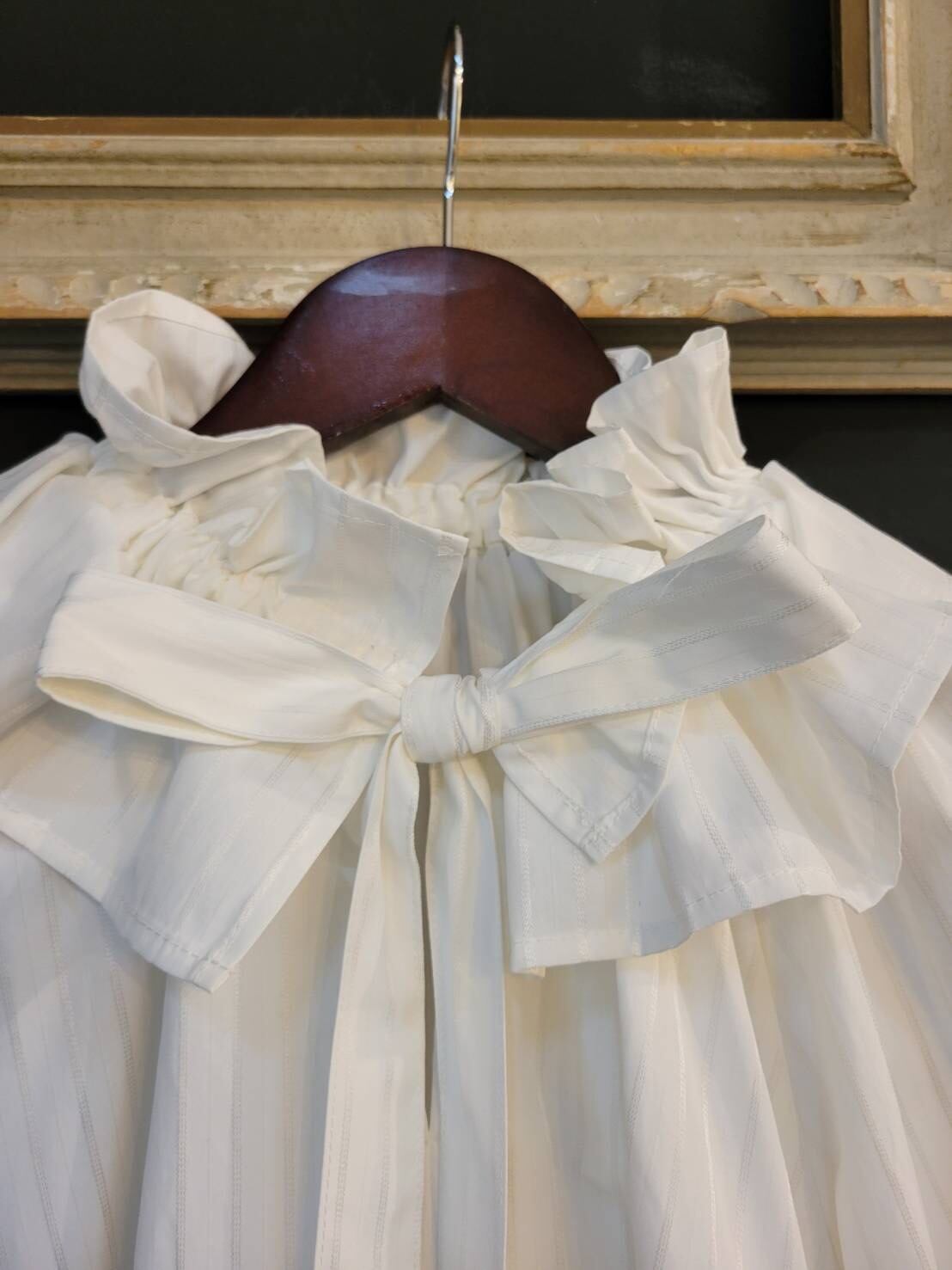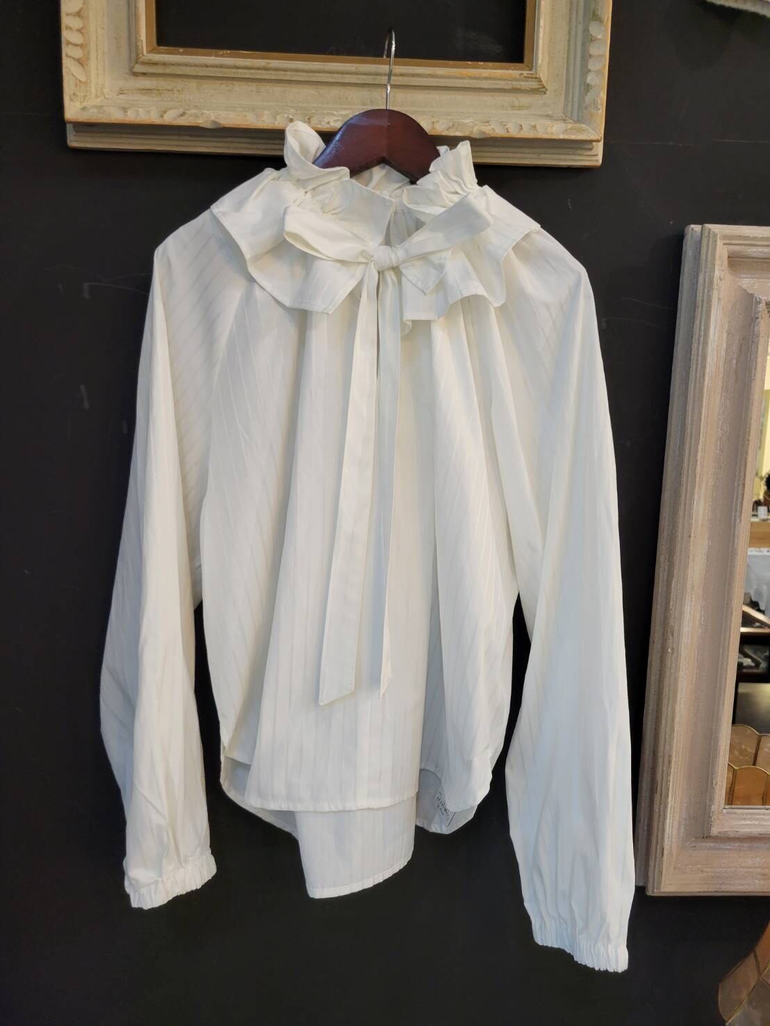 シンプルなボトムスやスカートと合わせることで、フリルとリボンのディテールが際立ち、より洗練された印象を与えます。自分へのご褒美や、大切な方への特別な贈り物にも最適なアイテムです。