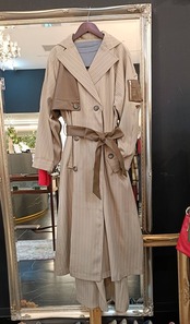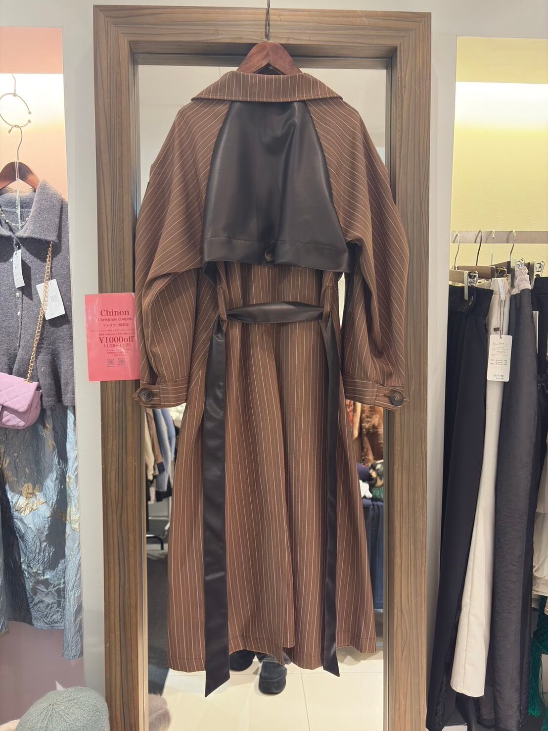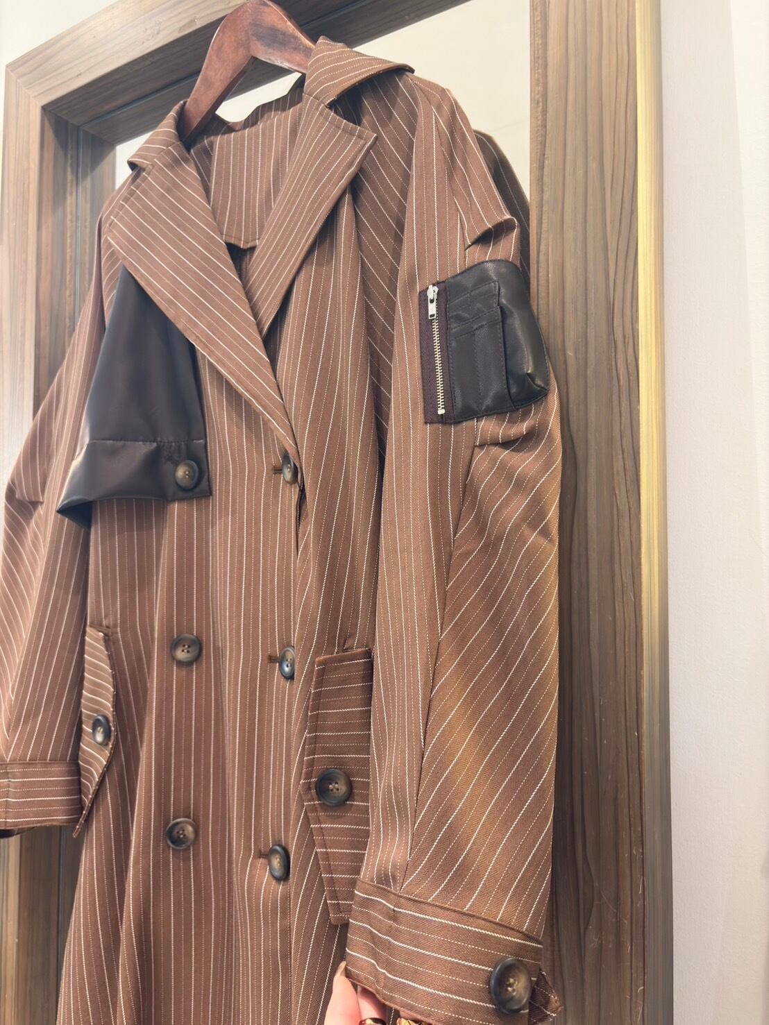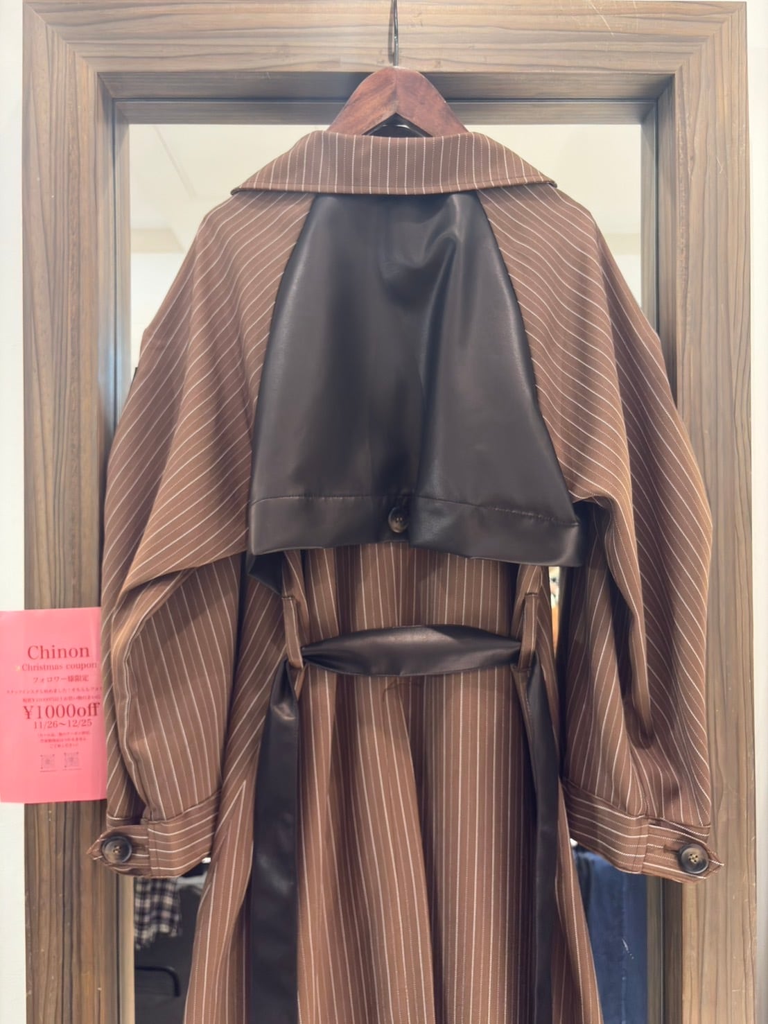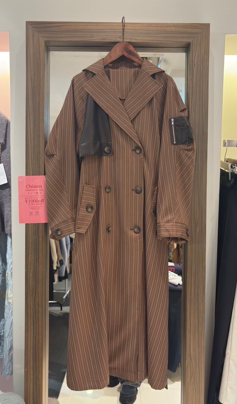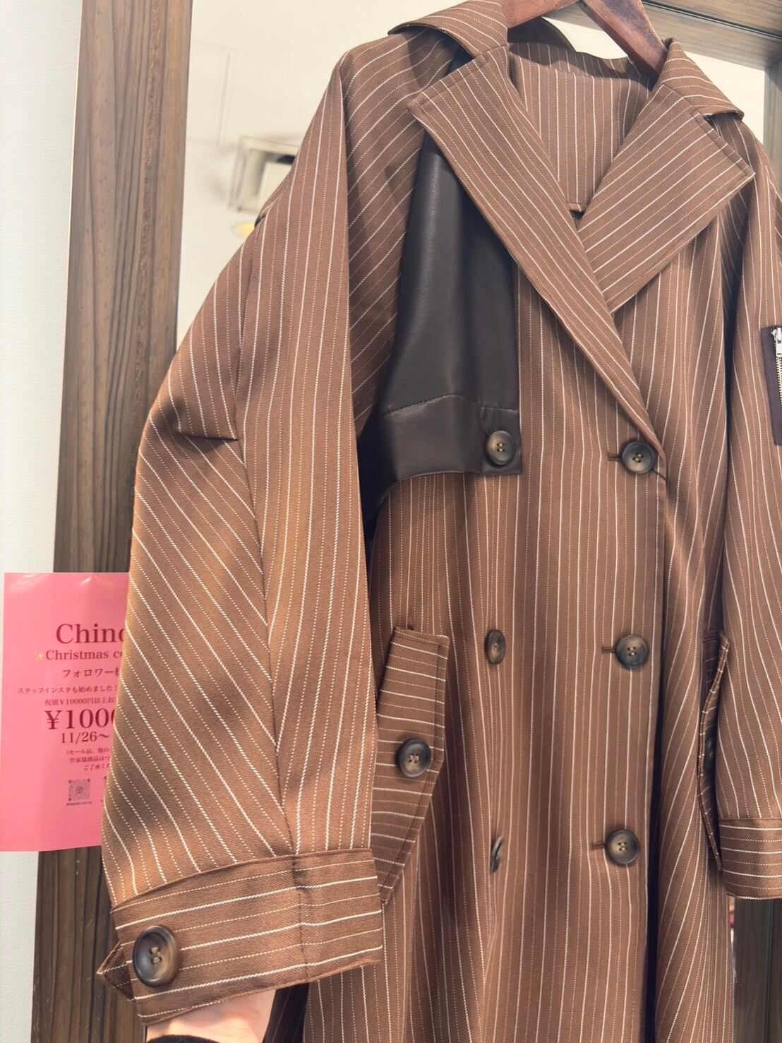■洗練された印象を与えるピンストライプデザイントレンチコーヒー