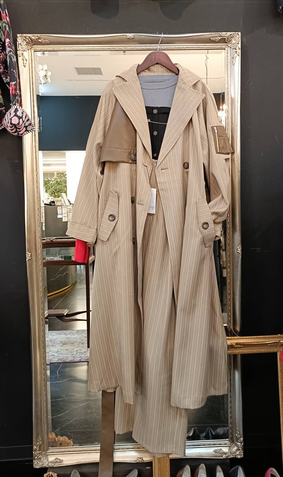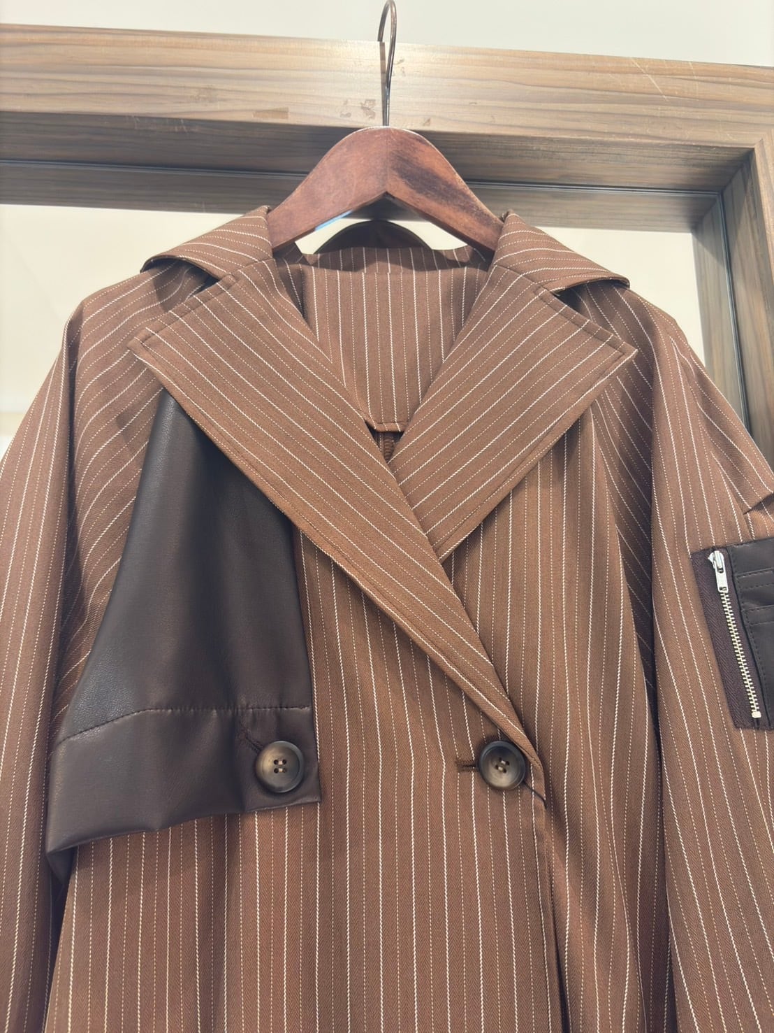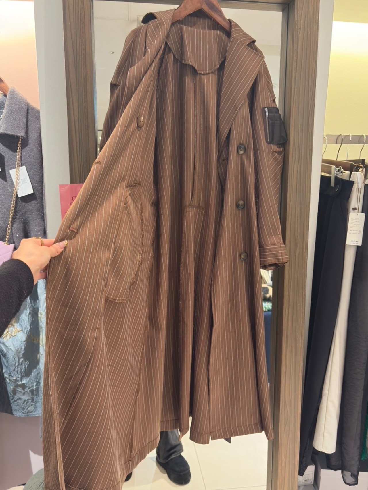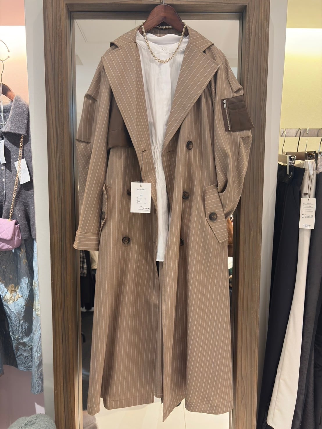ぜひ、このピンストライプデザイントレンチコーヒーで、洗練されたスタイルを楽しんでください!