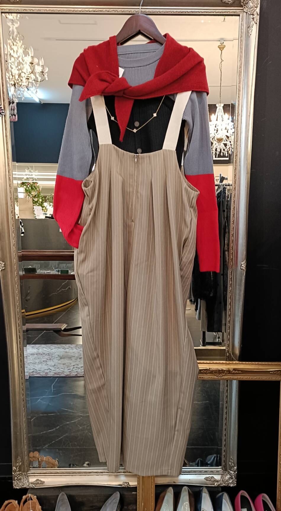 ピンストライプオーバーオール