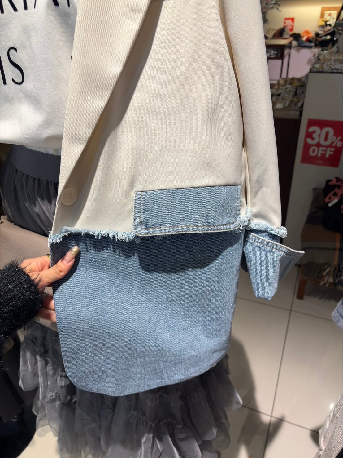 ■スタイリッシュな魅力を引き立てるデニムドッキングジャケット