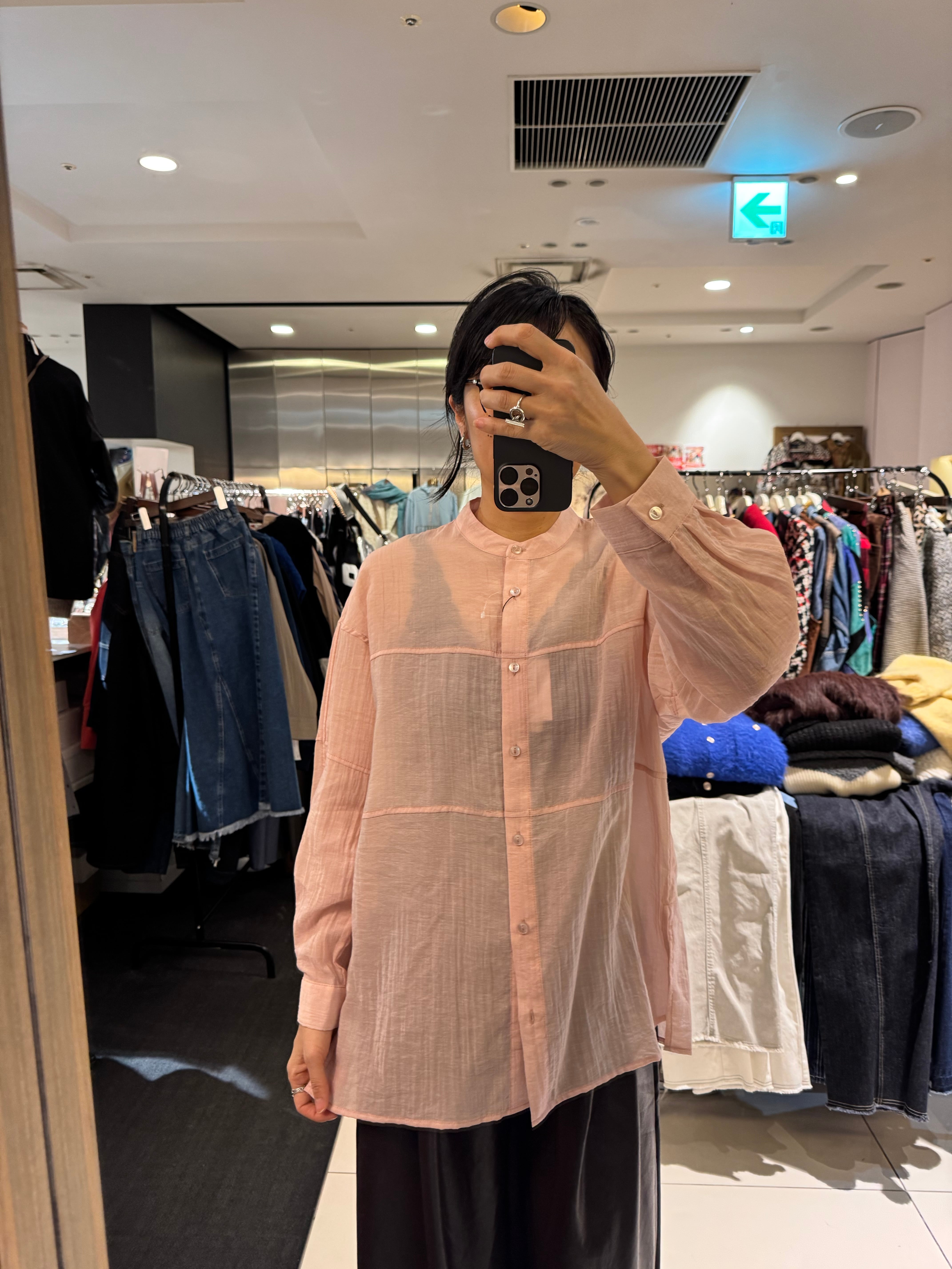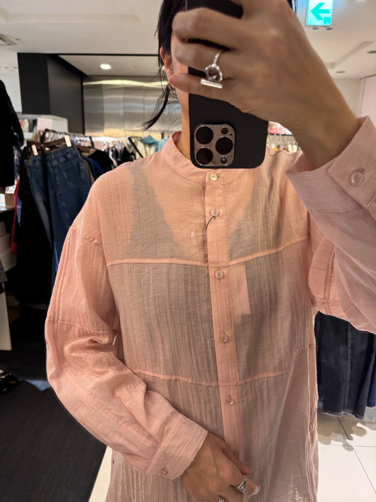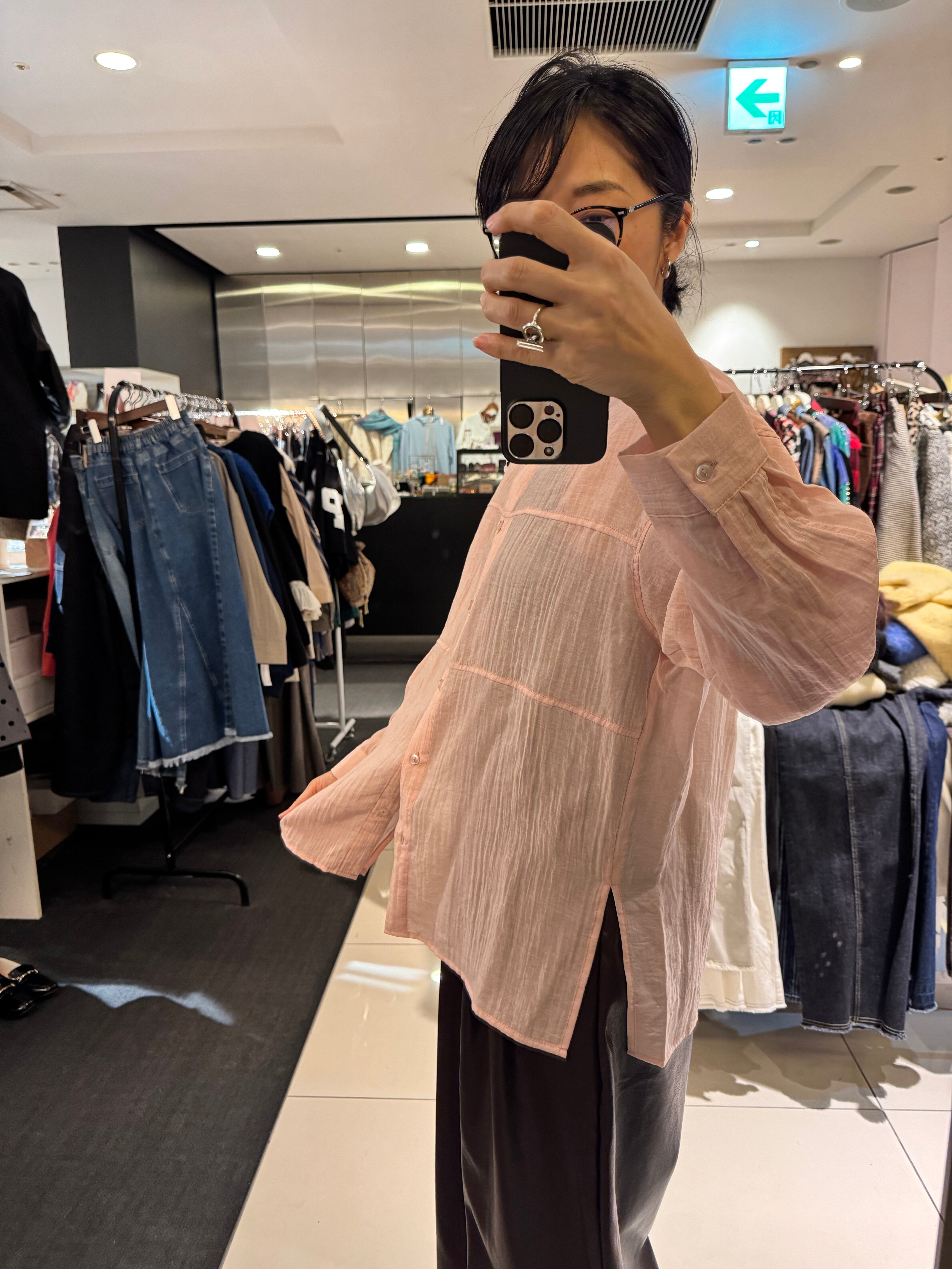 ■柔らかな印象を引き立てるシアーベビーピンクブラウス