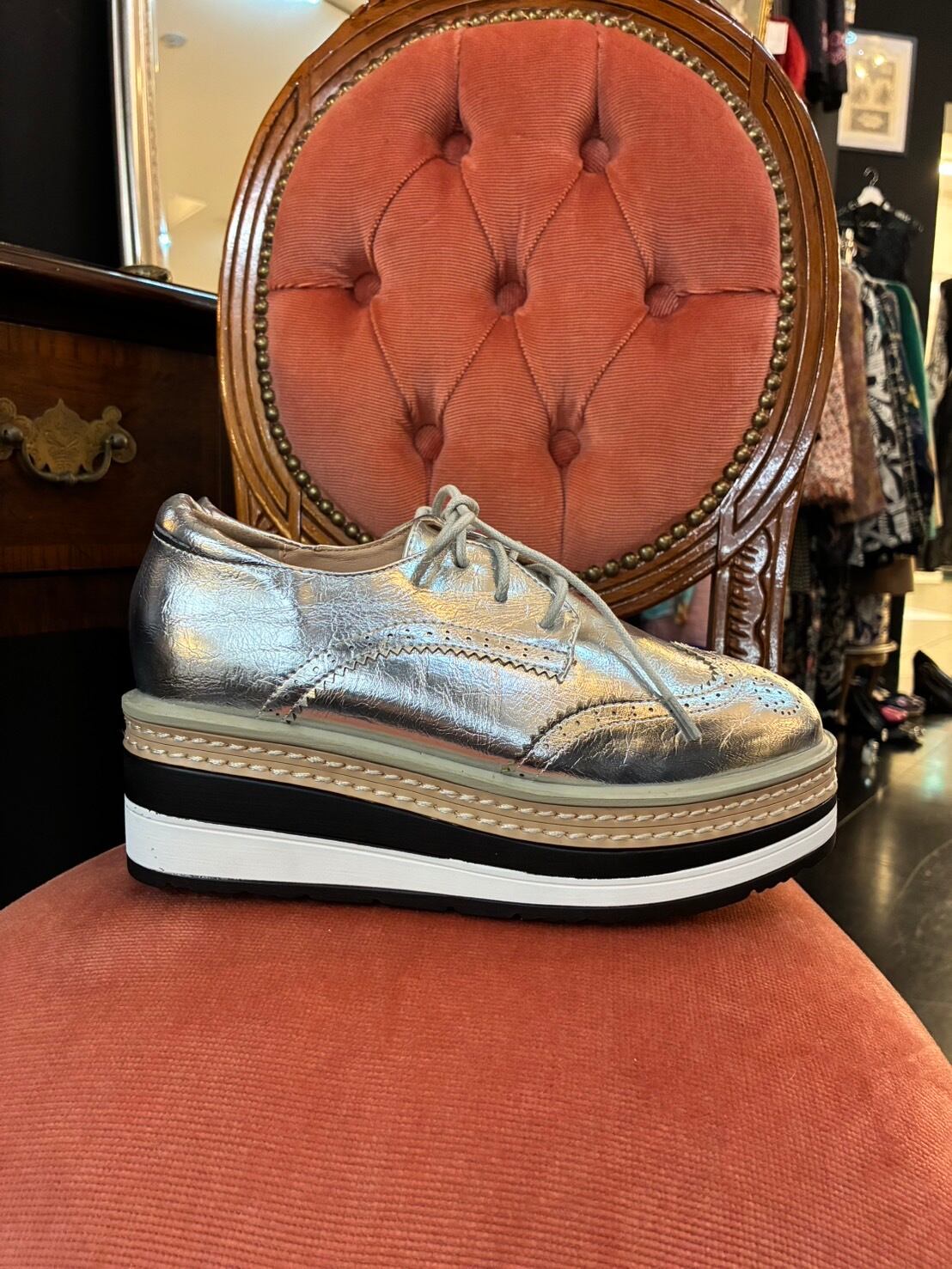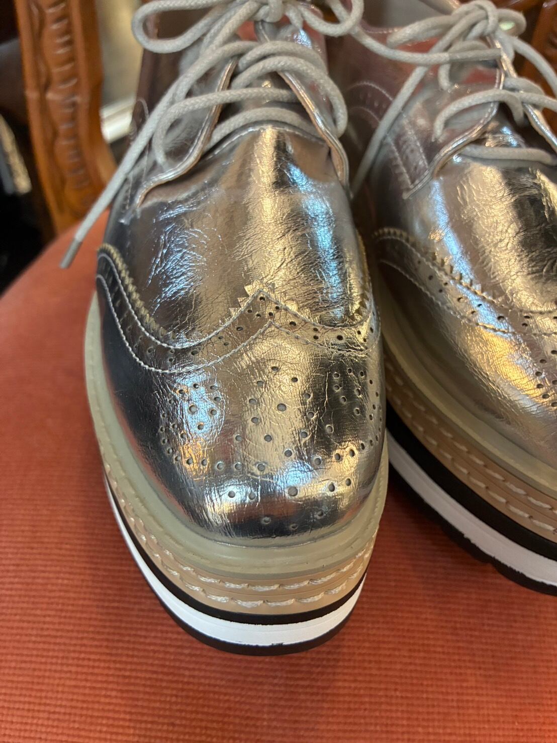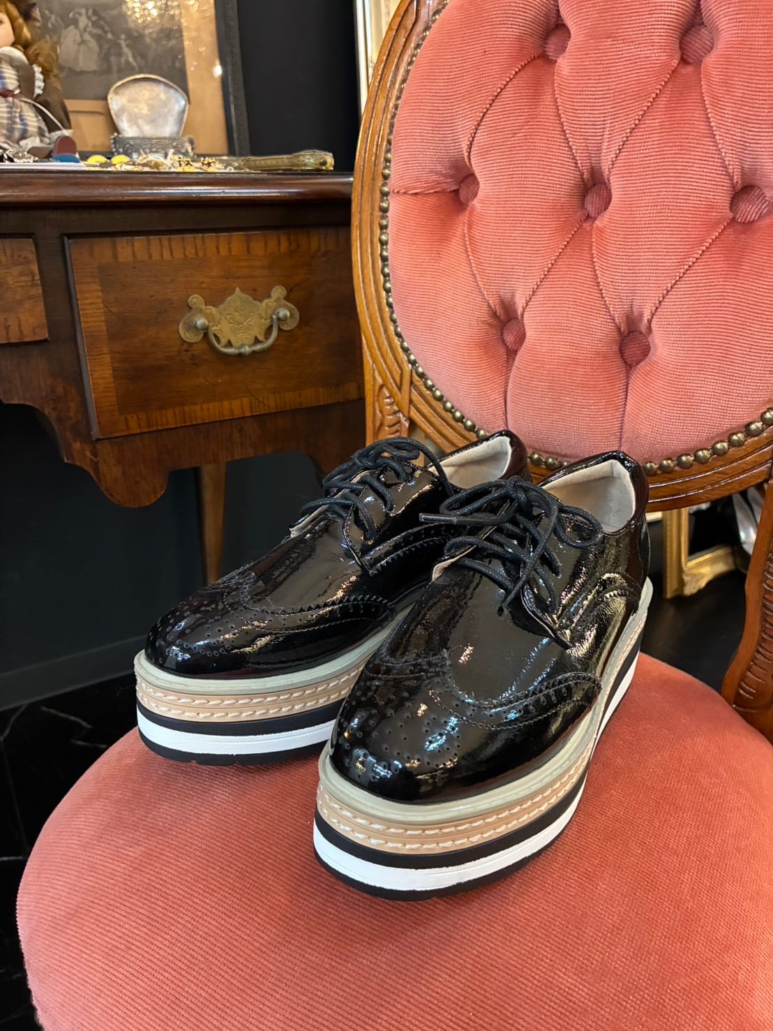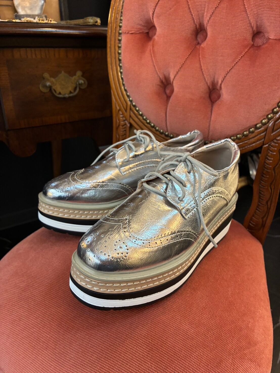 厚底レースアップウィングチップシューズ