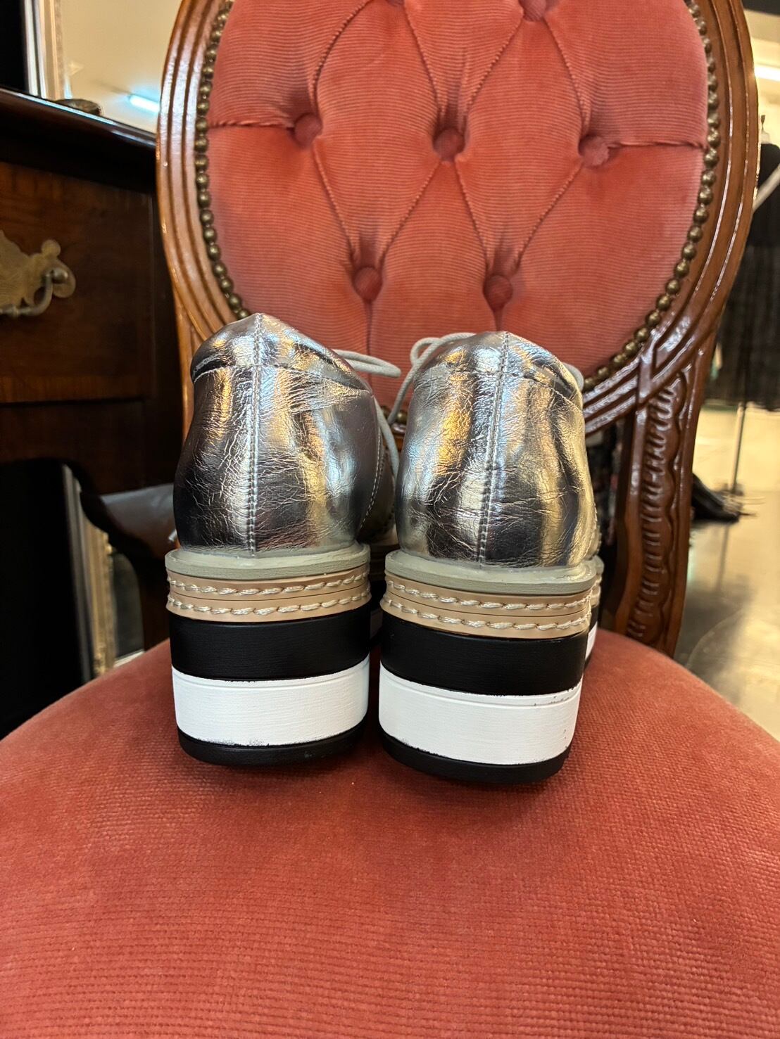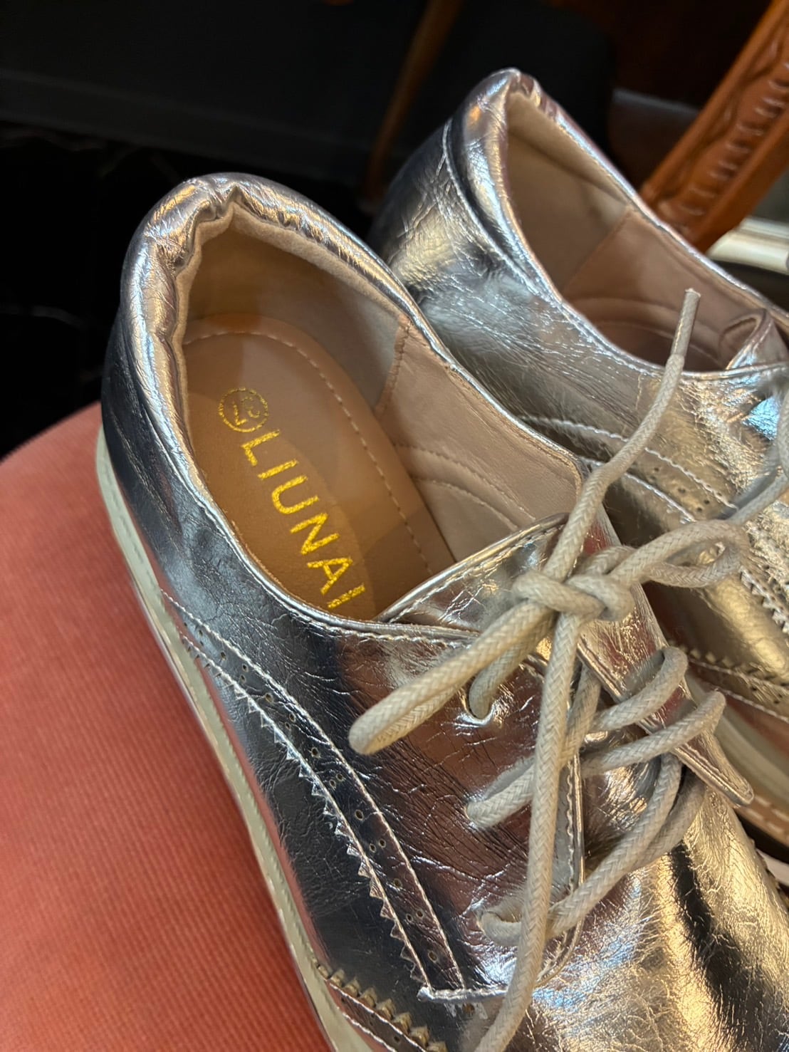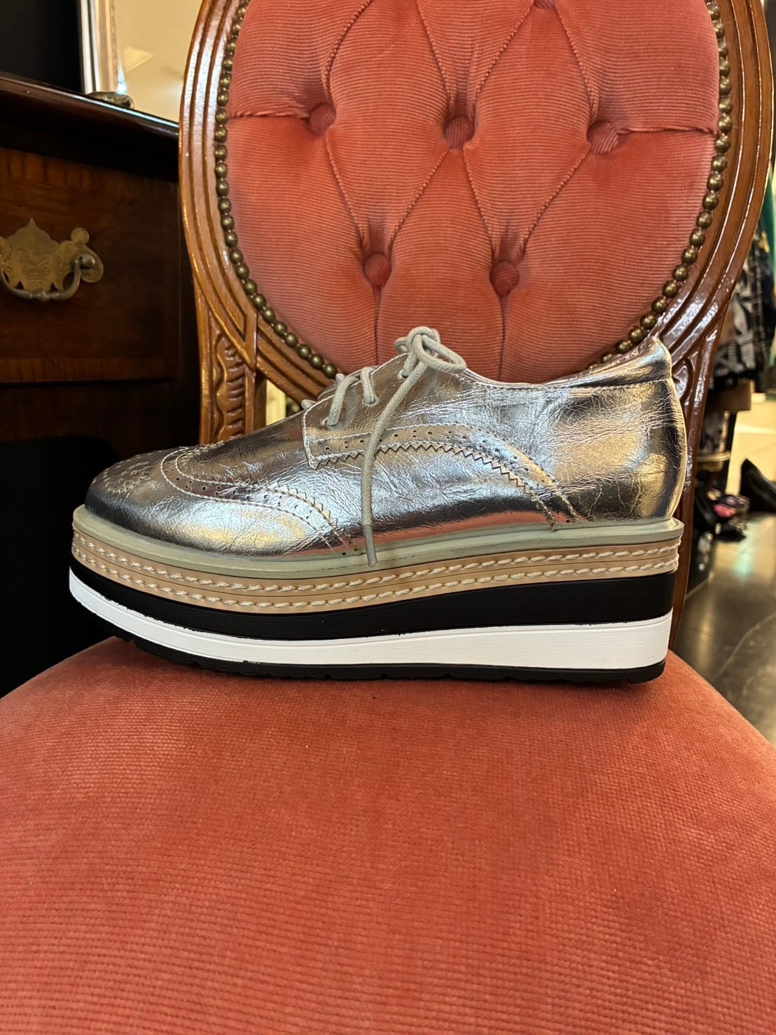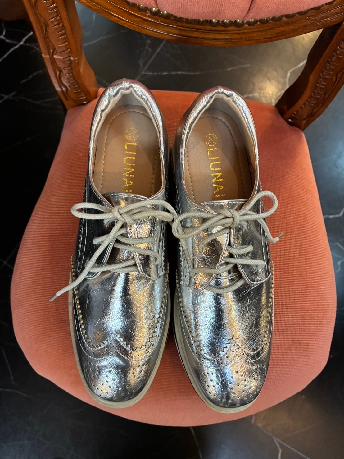 厚底レースアップウィングチップシューズ