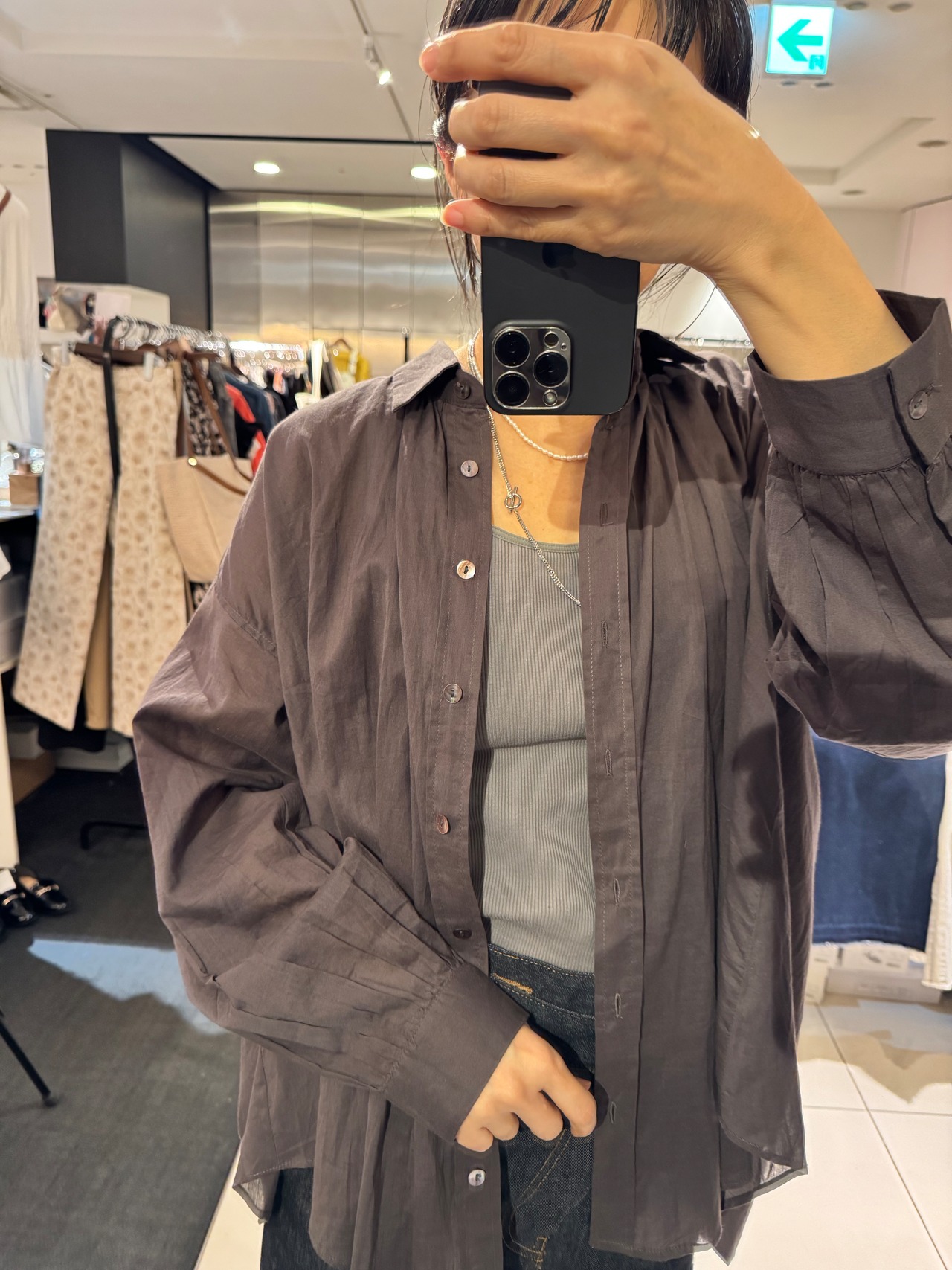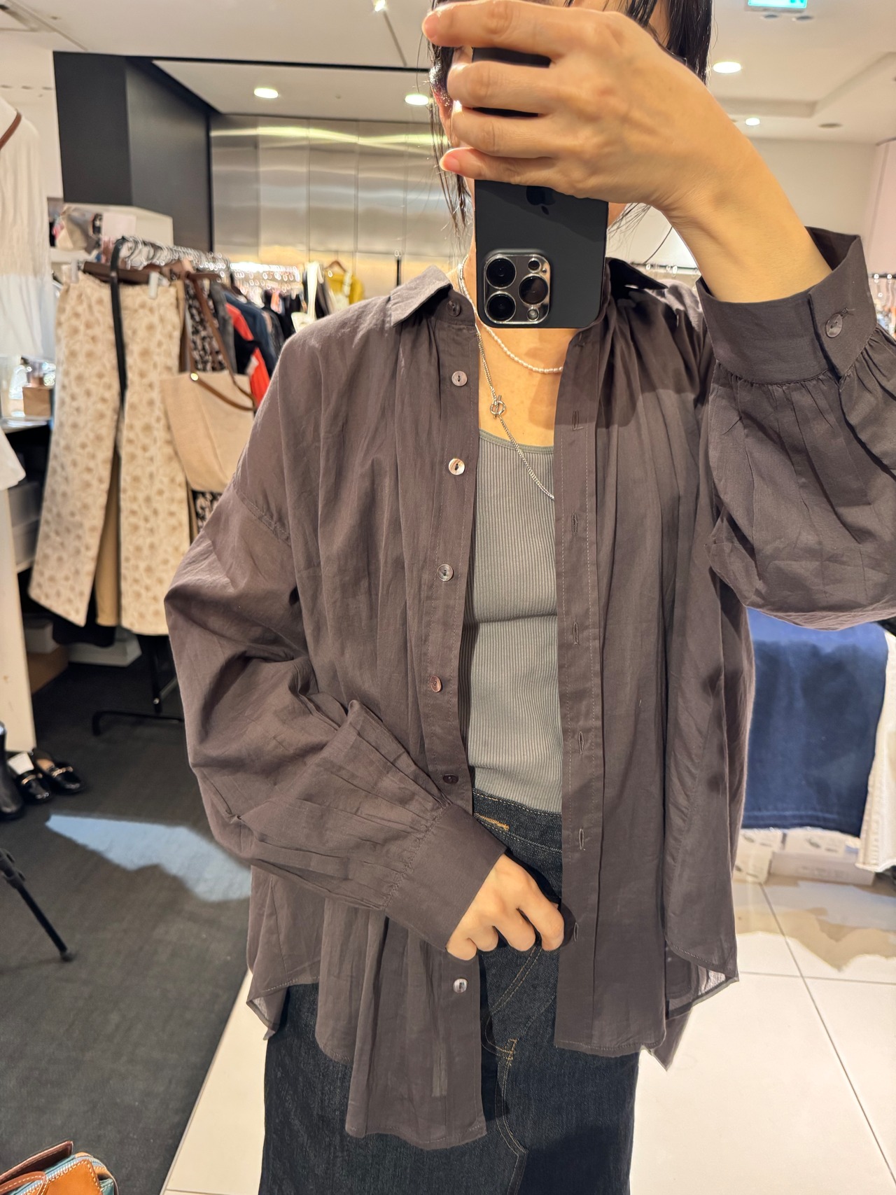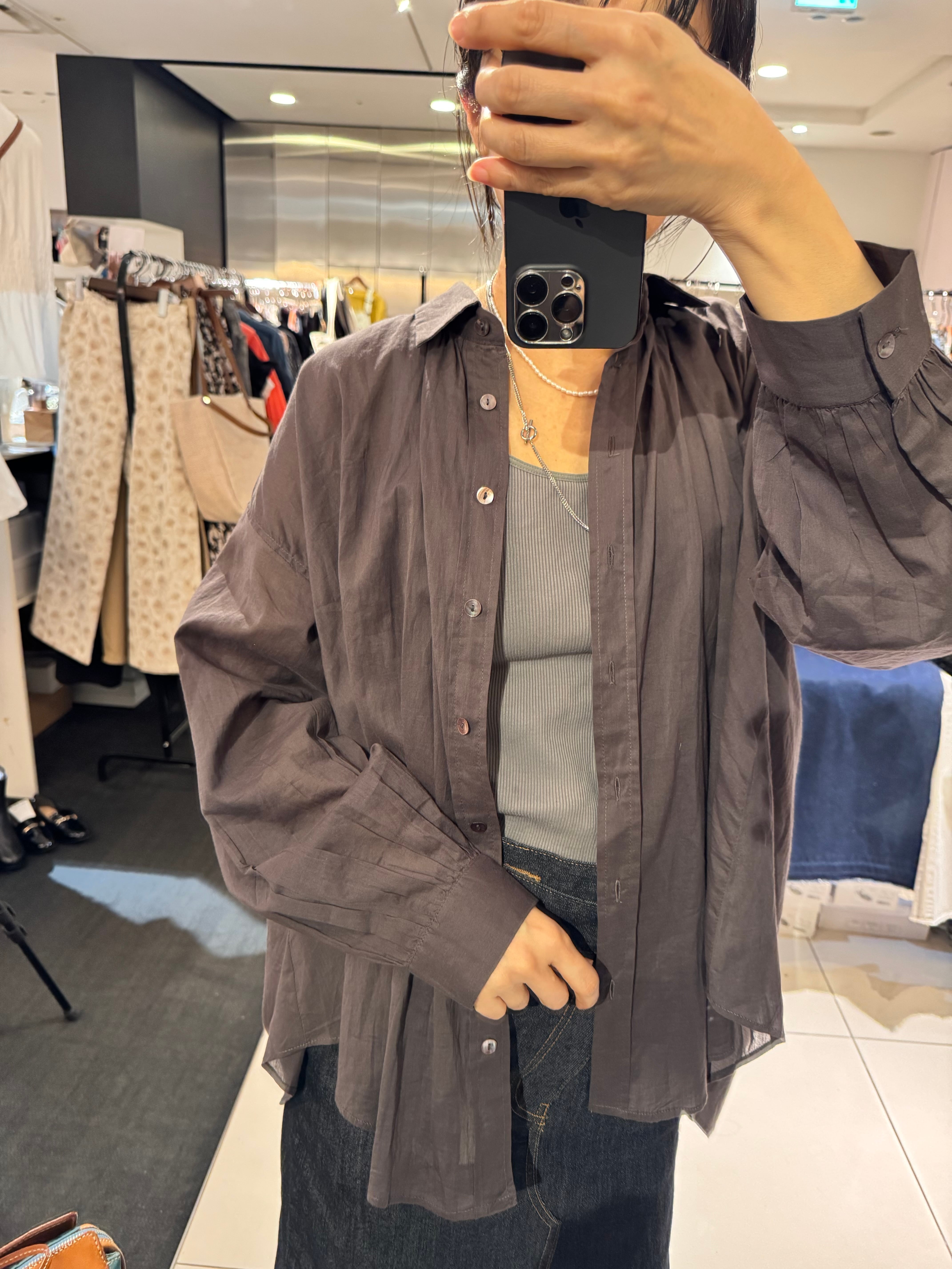 コットン後ろギャザーエアリーブラウン