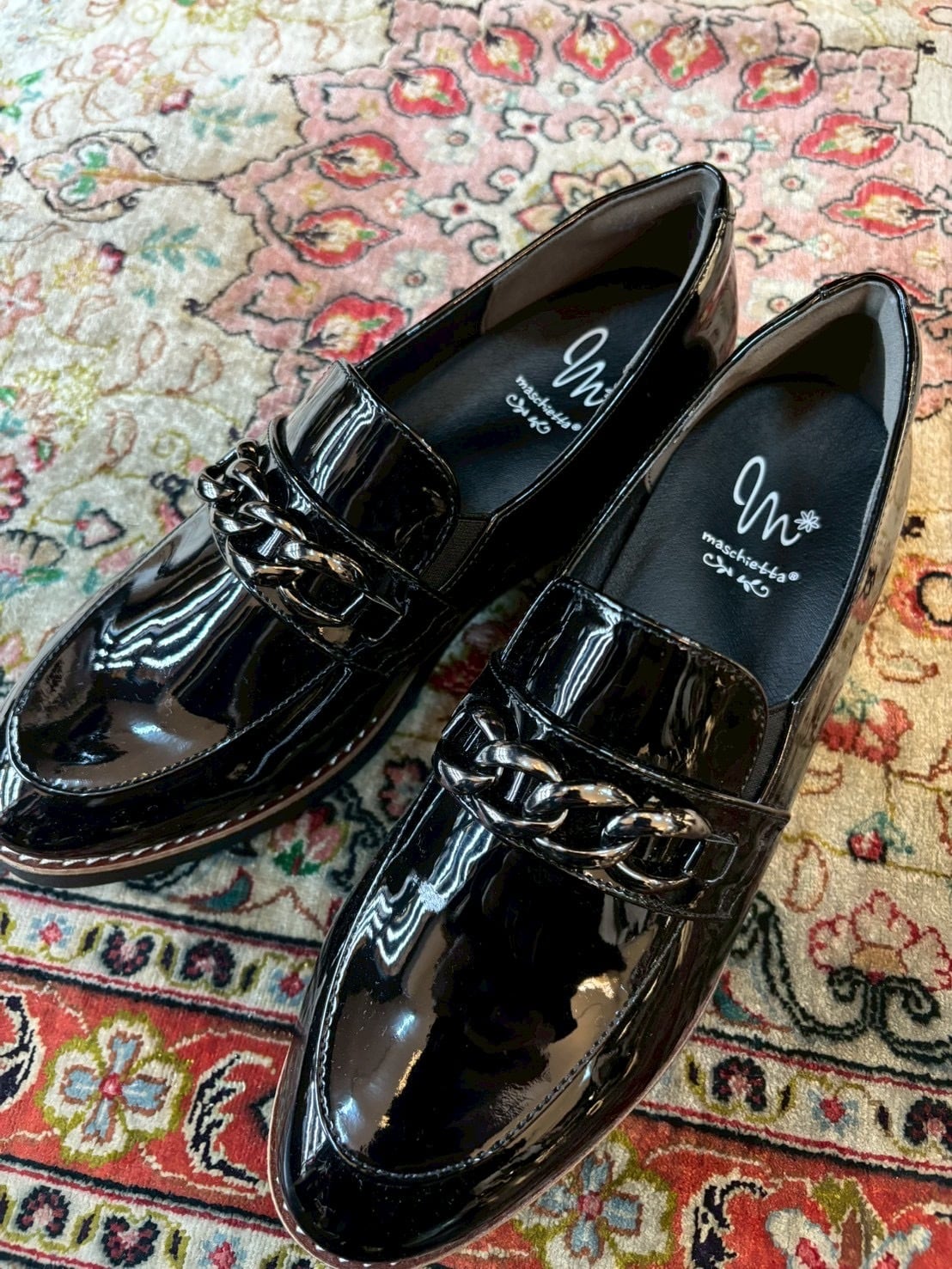 ■スタイリッシュで快適なエナメルチェーンローファー