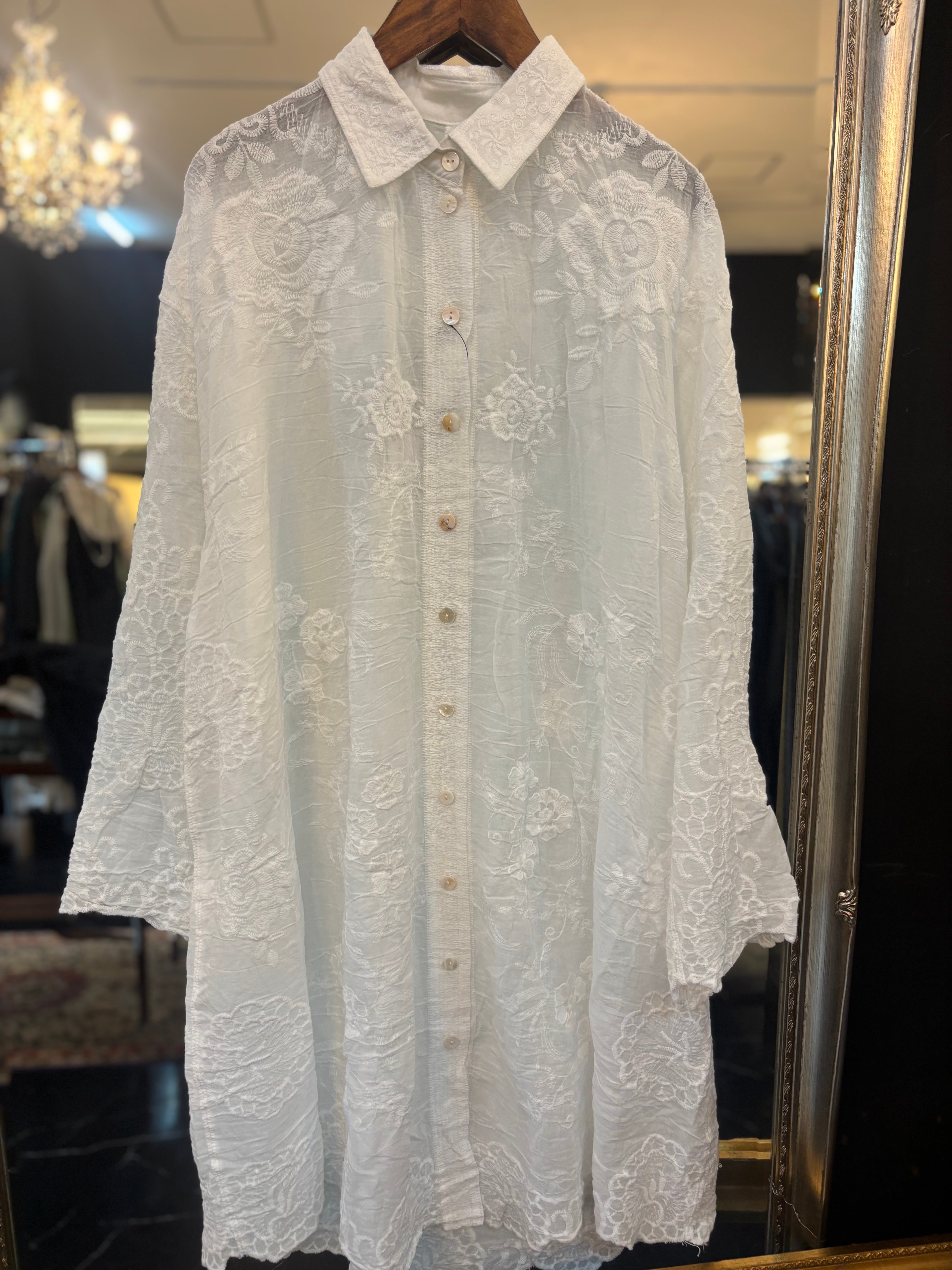 総レースロングシャツ