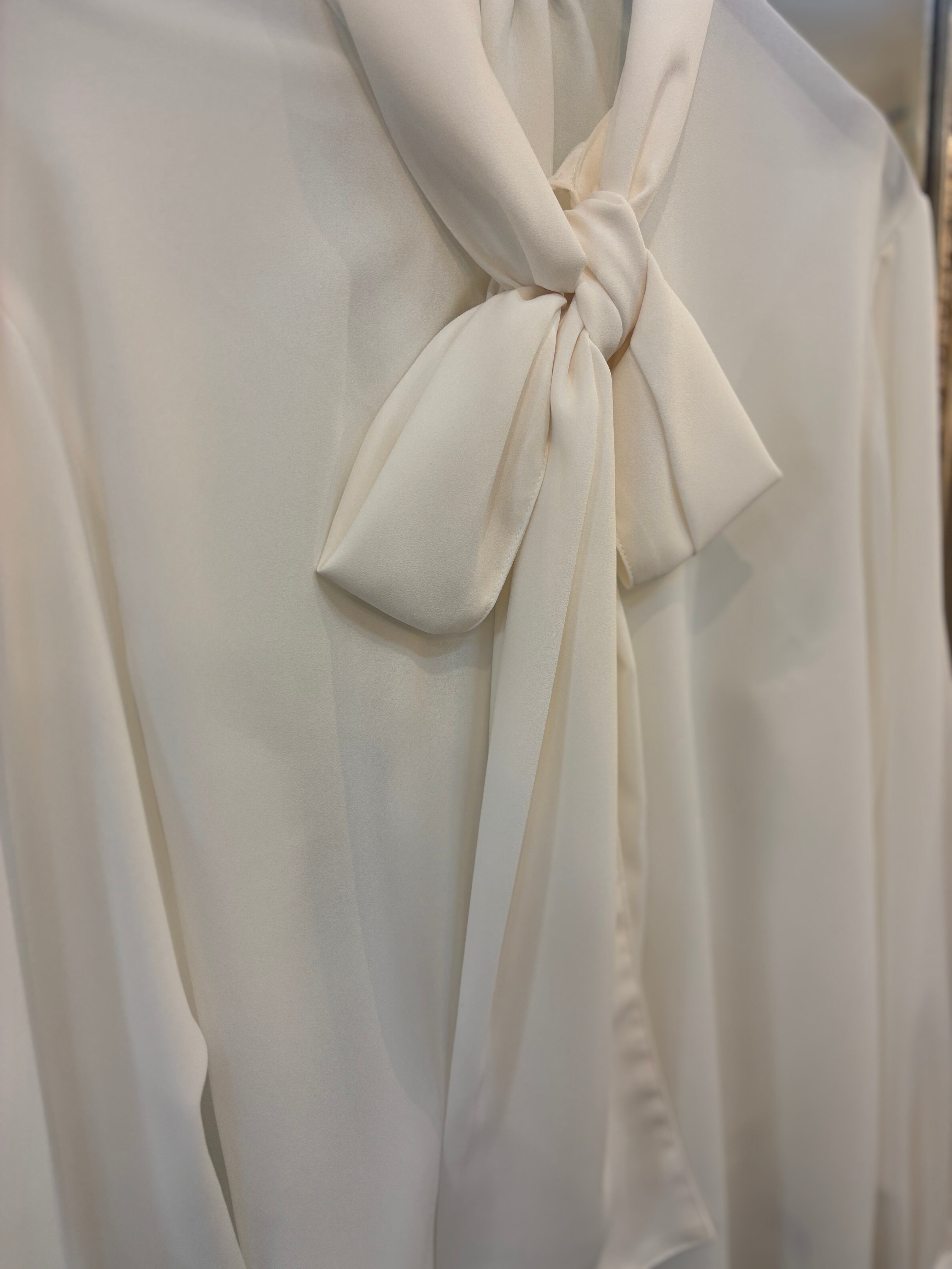 トロミ生地ボウタイリボンブラウス