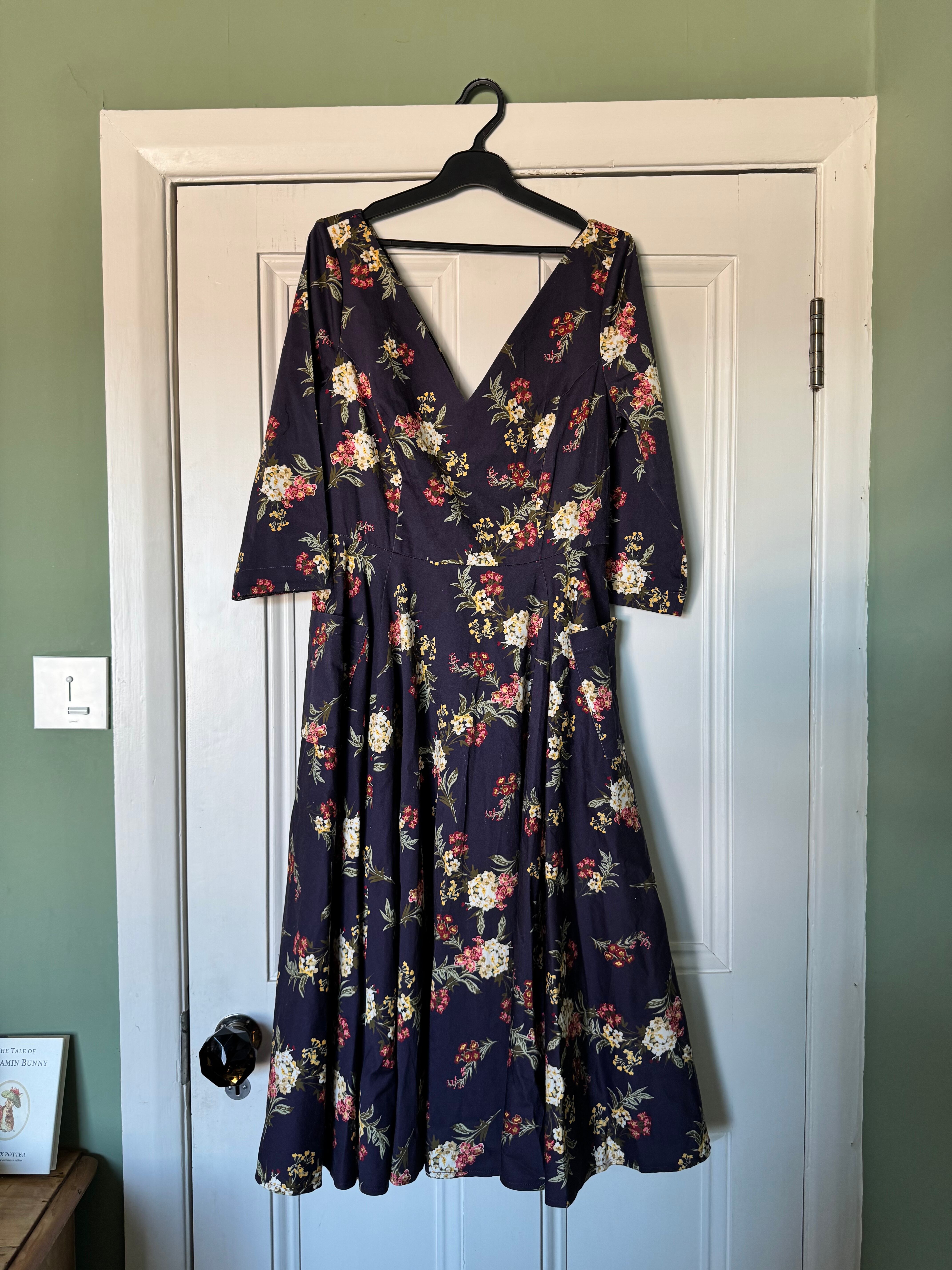 LONDON vintage 水色花柄ワンピース