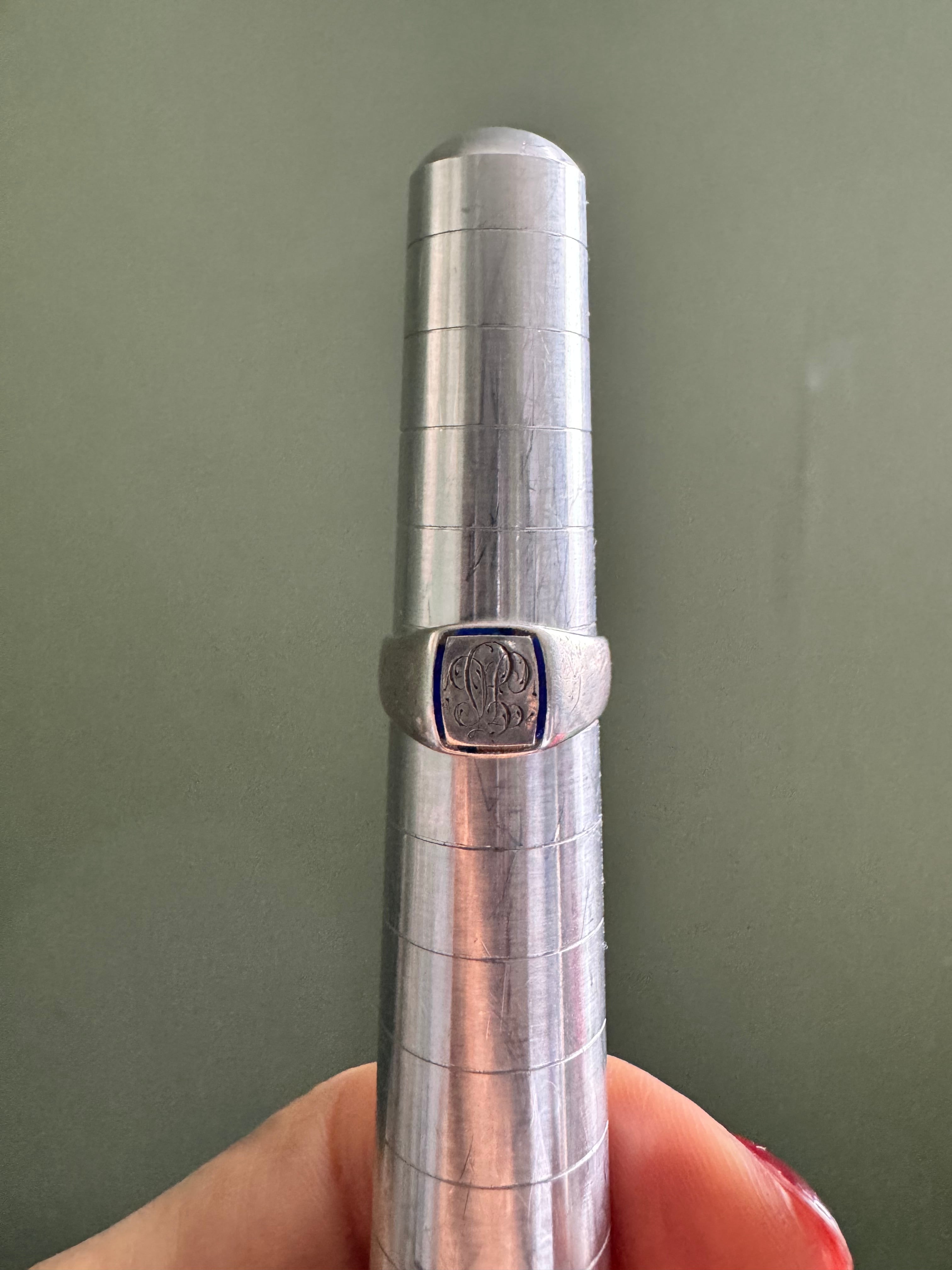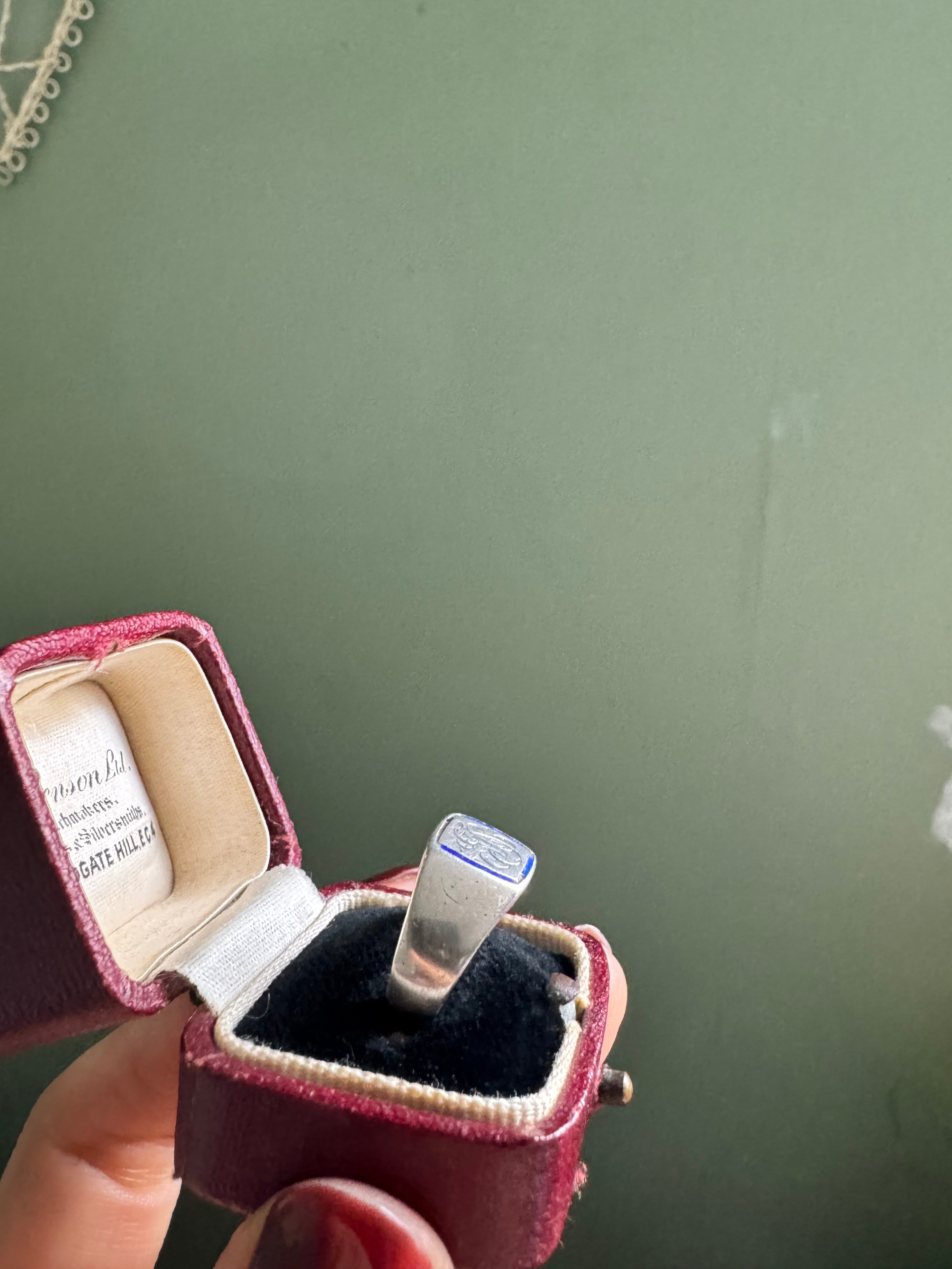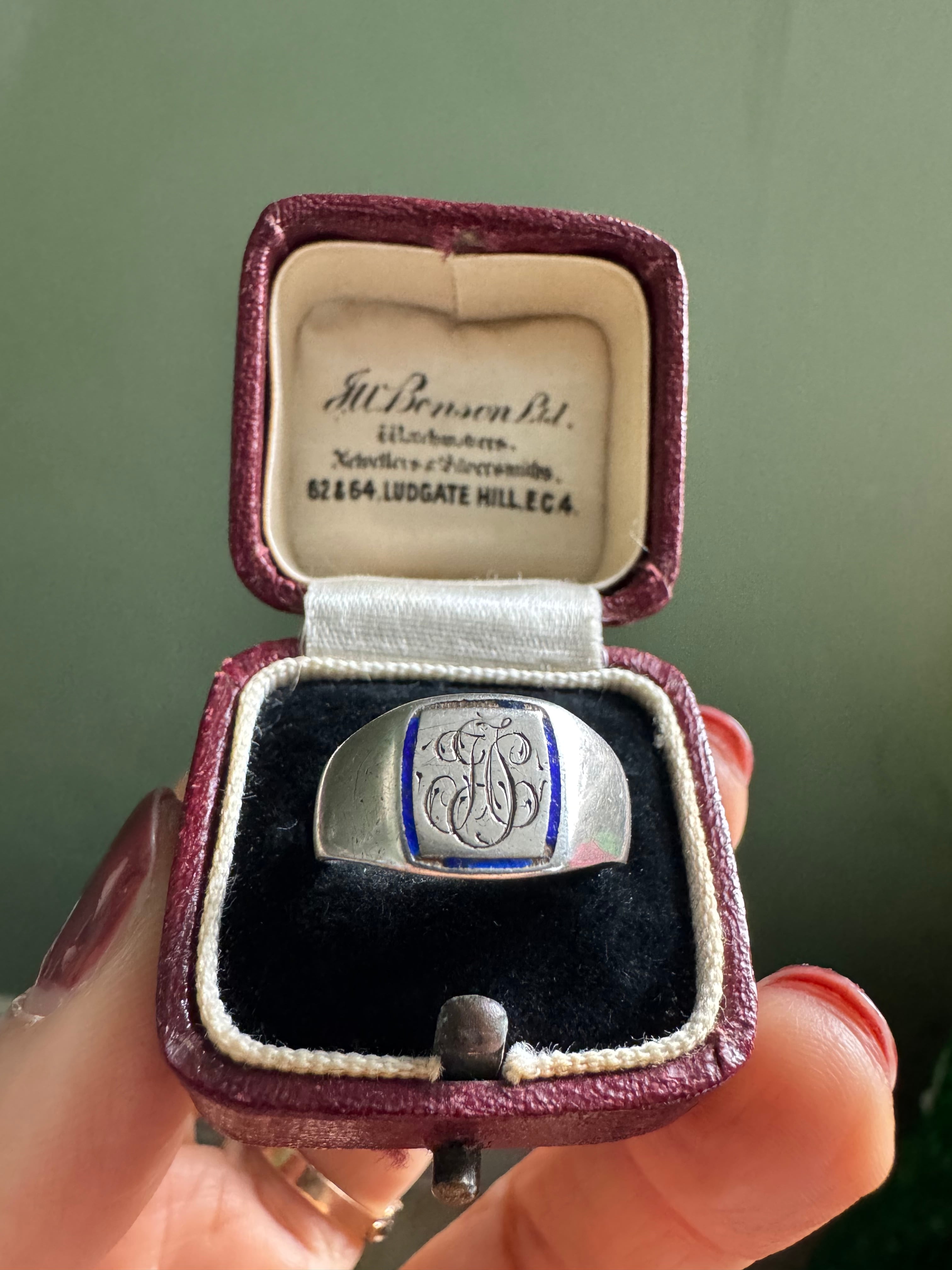 LONDON vintage ブルーエナメルシグネットリング