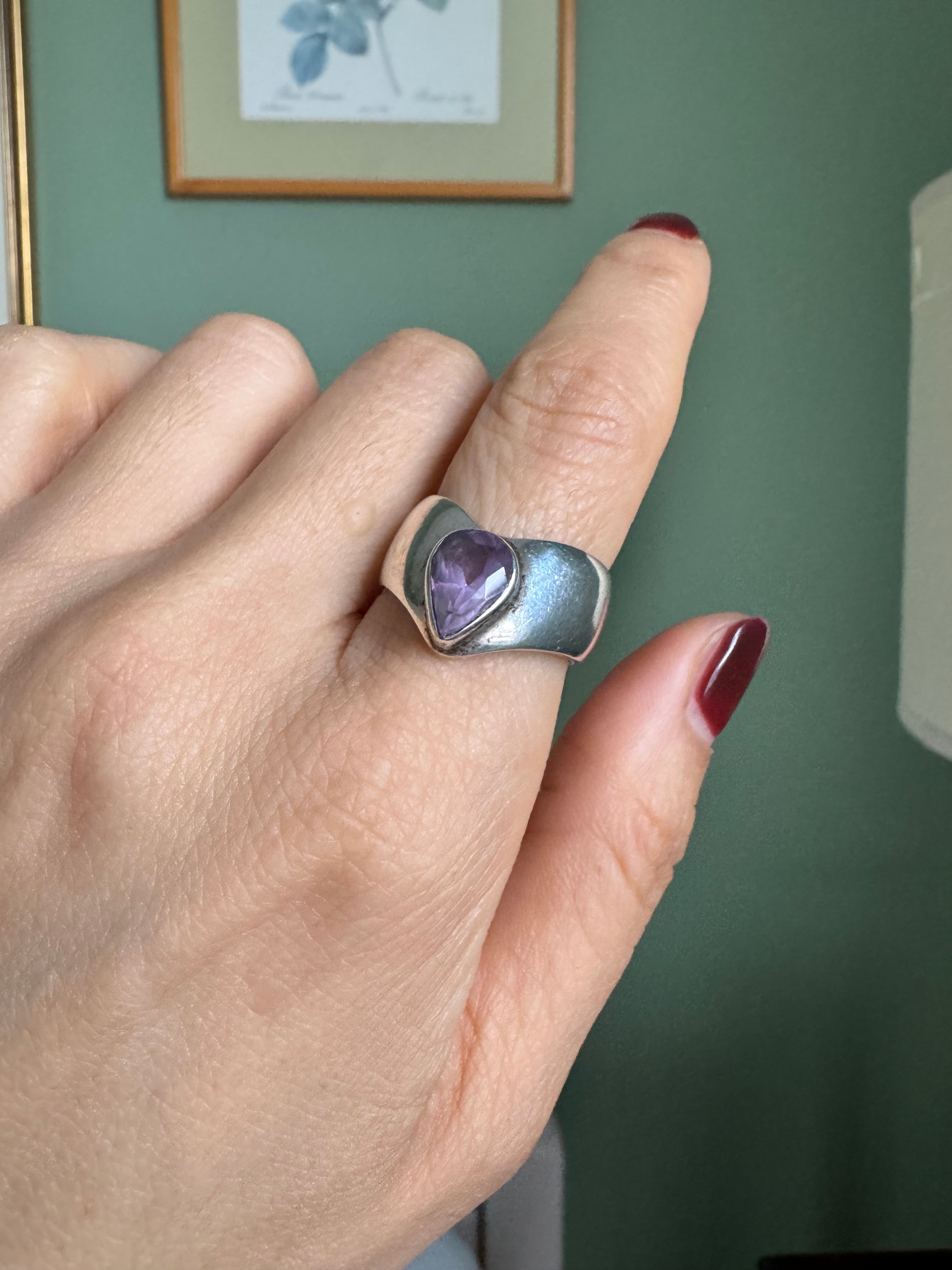スタイリッシュなVデザインが引き立つシルバーリング!