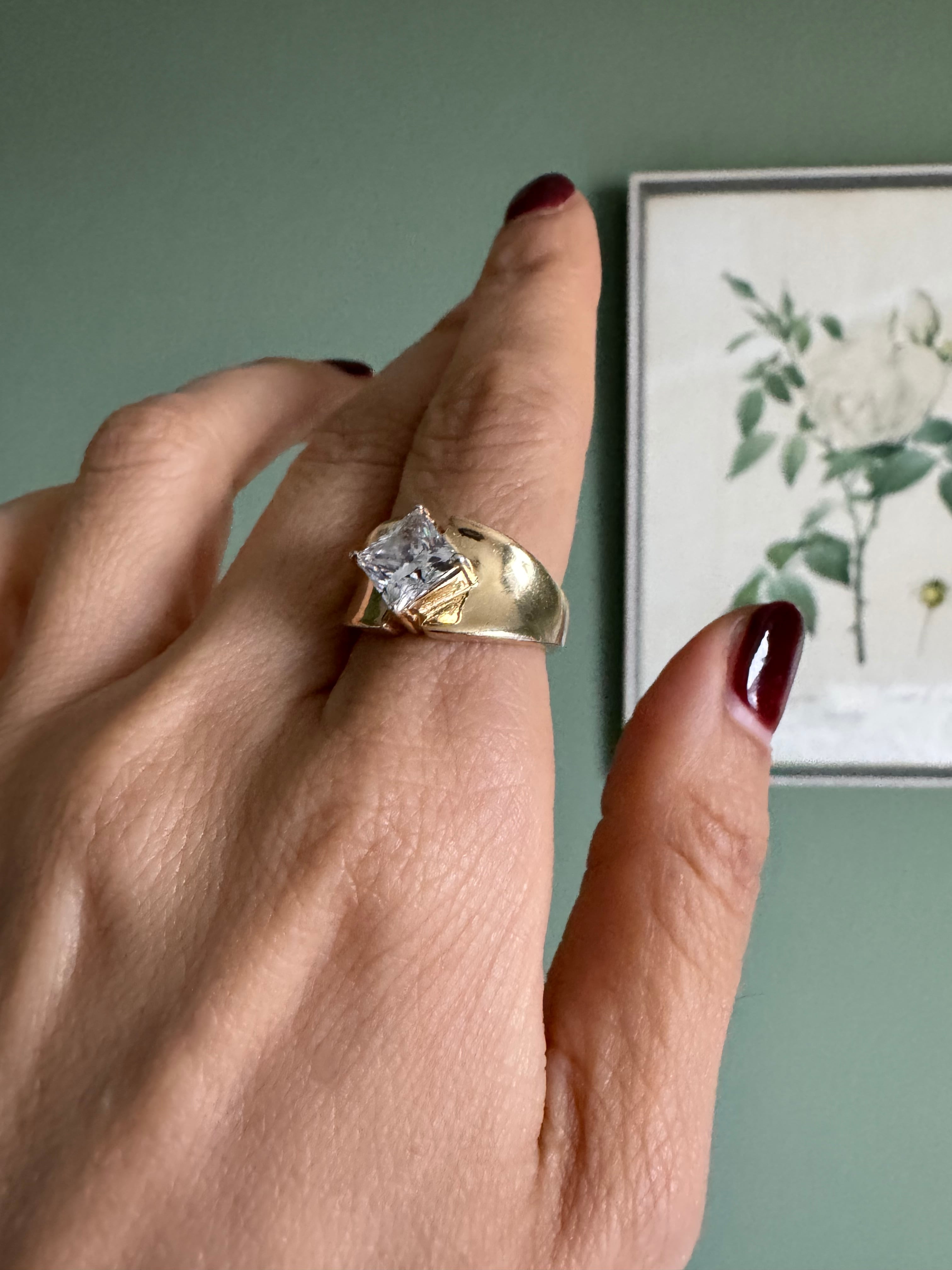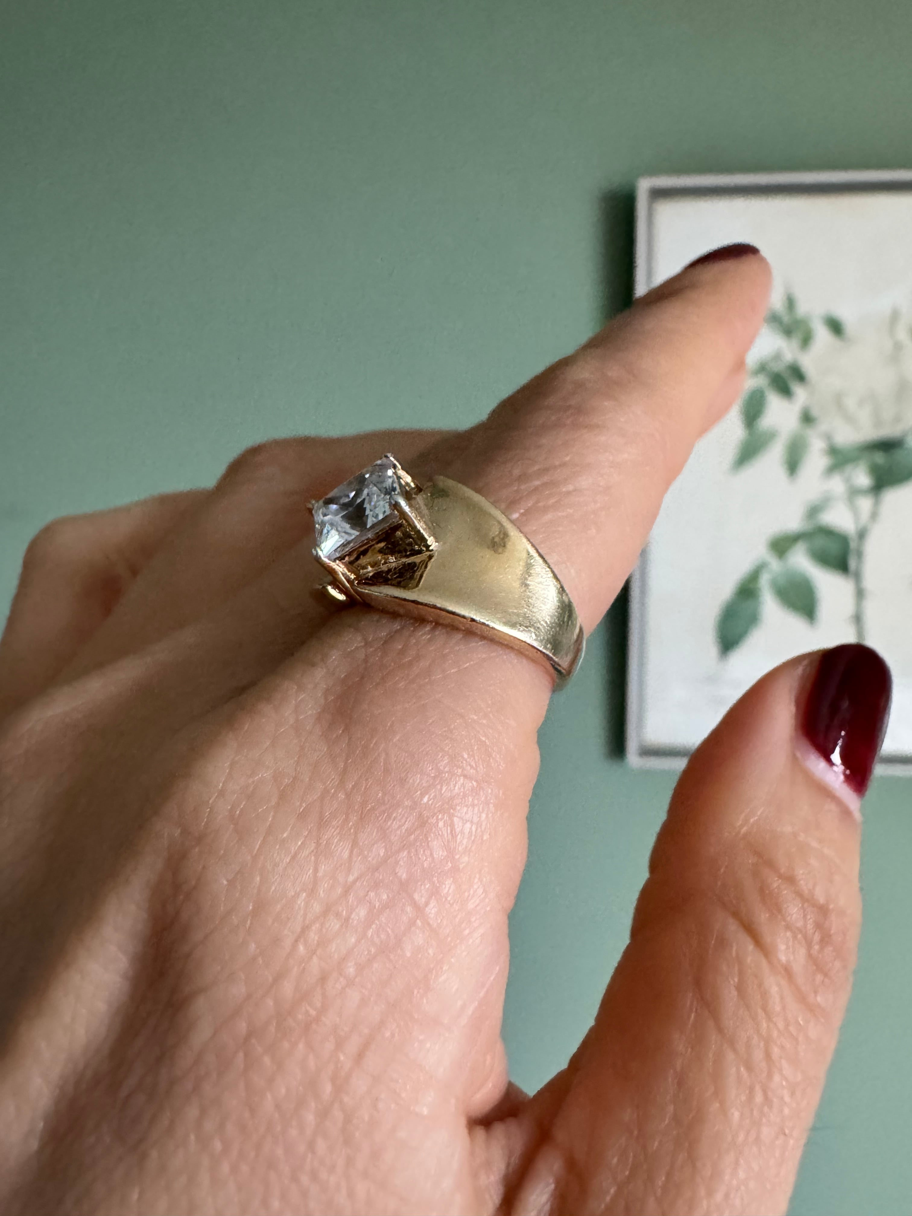 LONDON vintage silver 14号ゴールドコーティングリングジルコニアマーカサイトハートリング | Chinon fashion&vintage