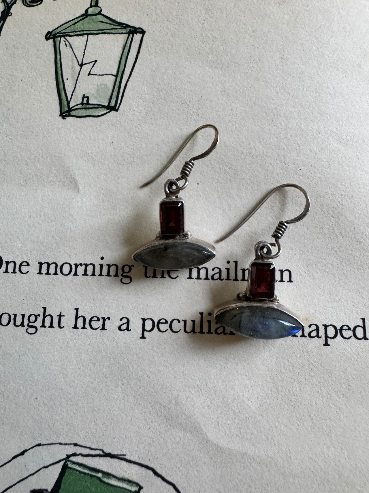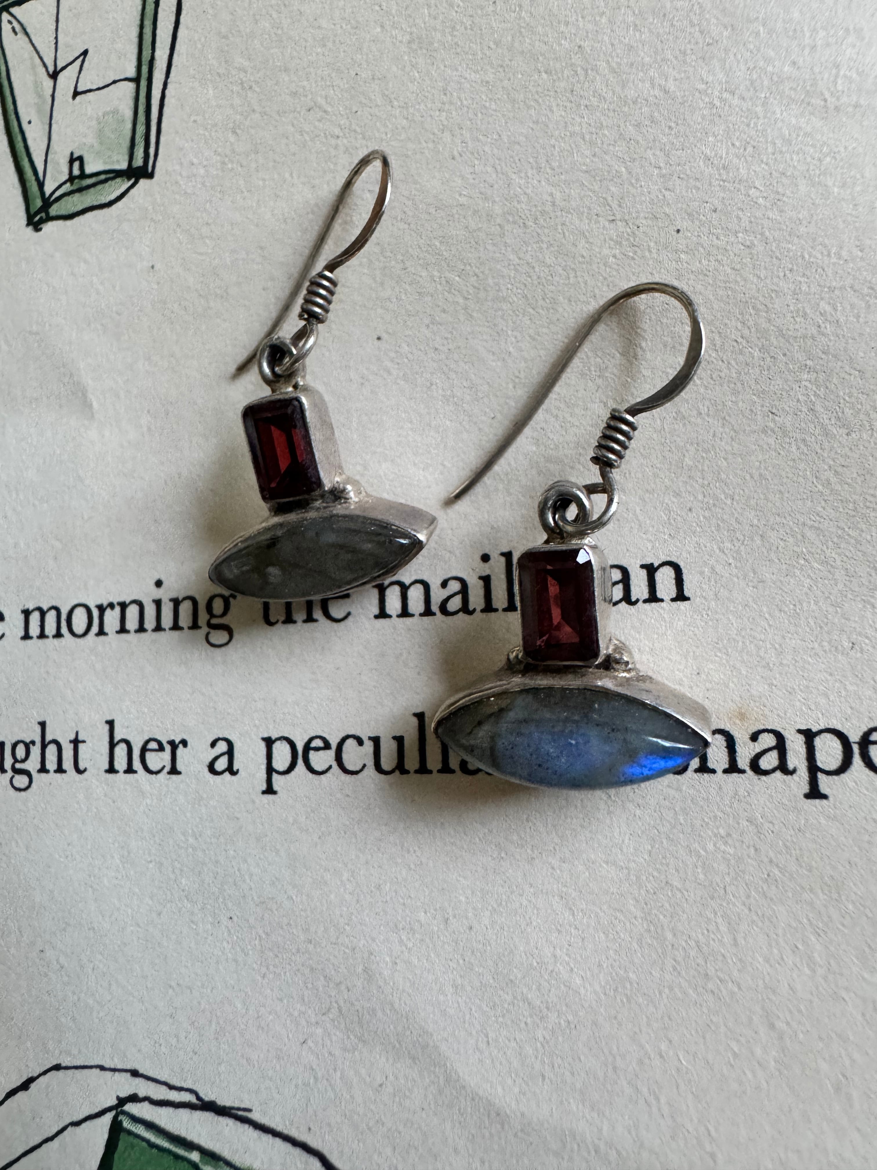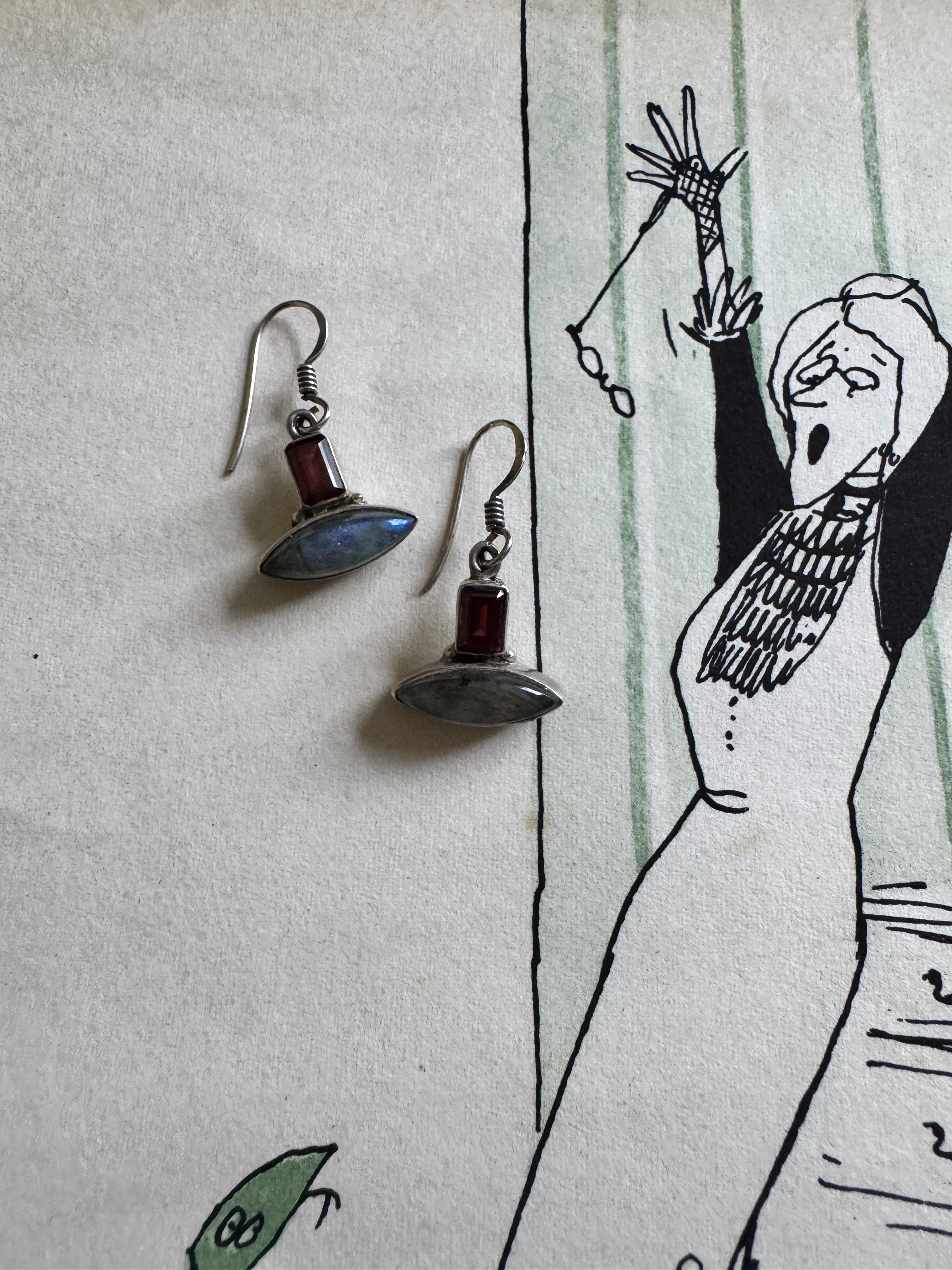 神秘的なラブラドライトと美しいガーネットが魅力の特別なシルバーのピアスの登場!
