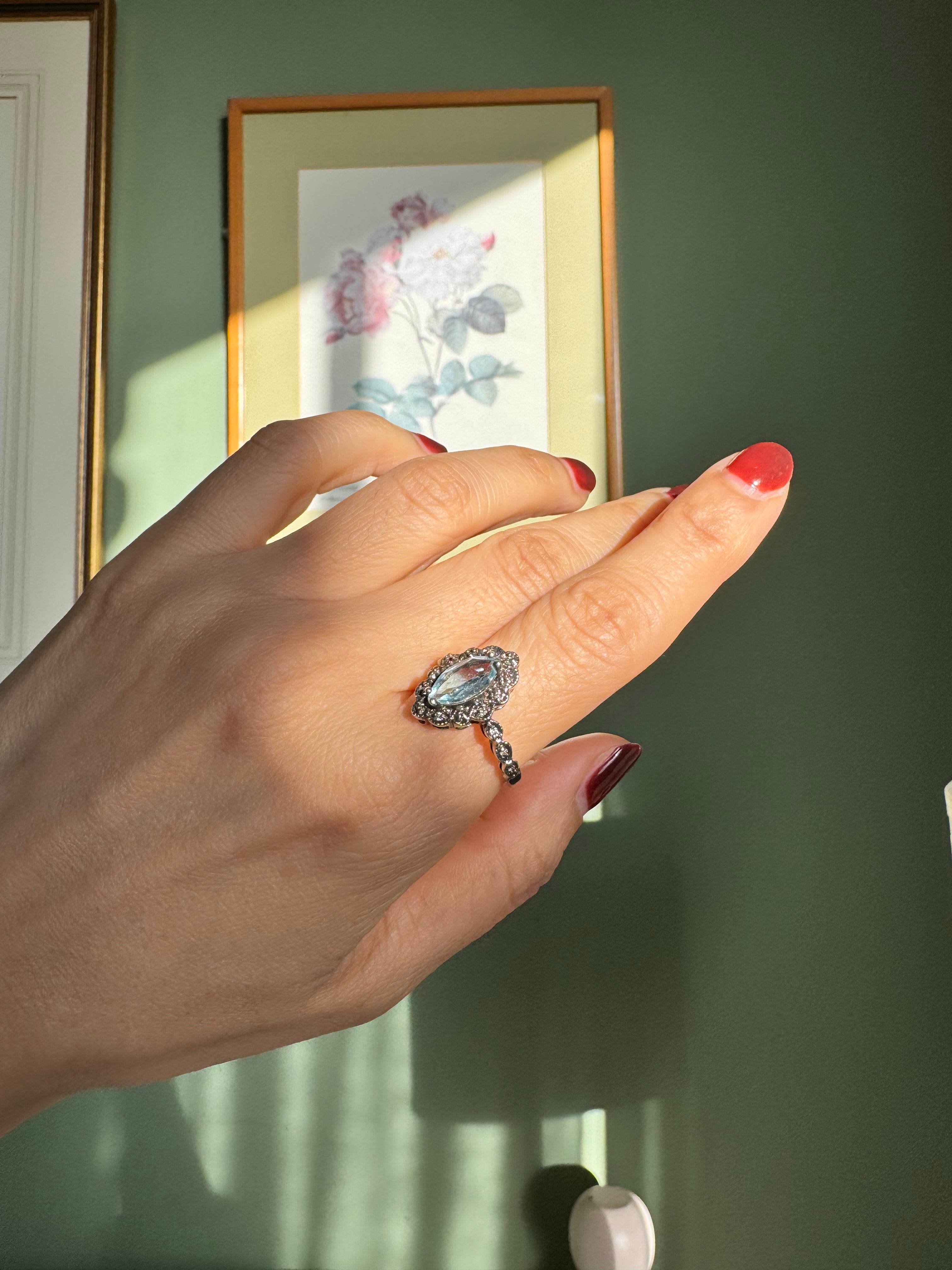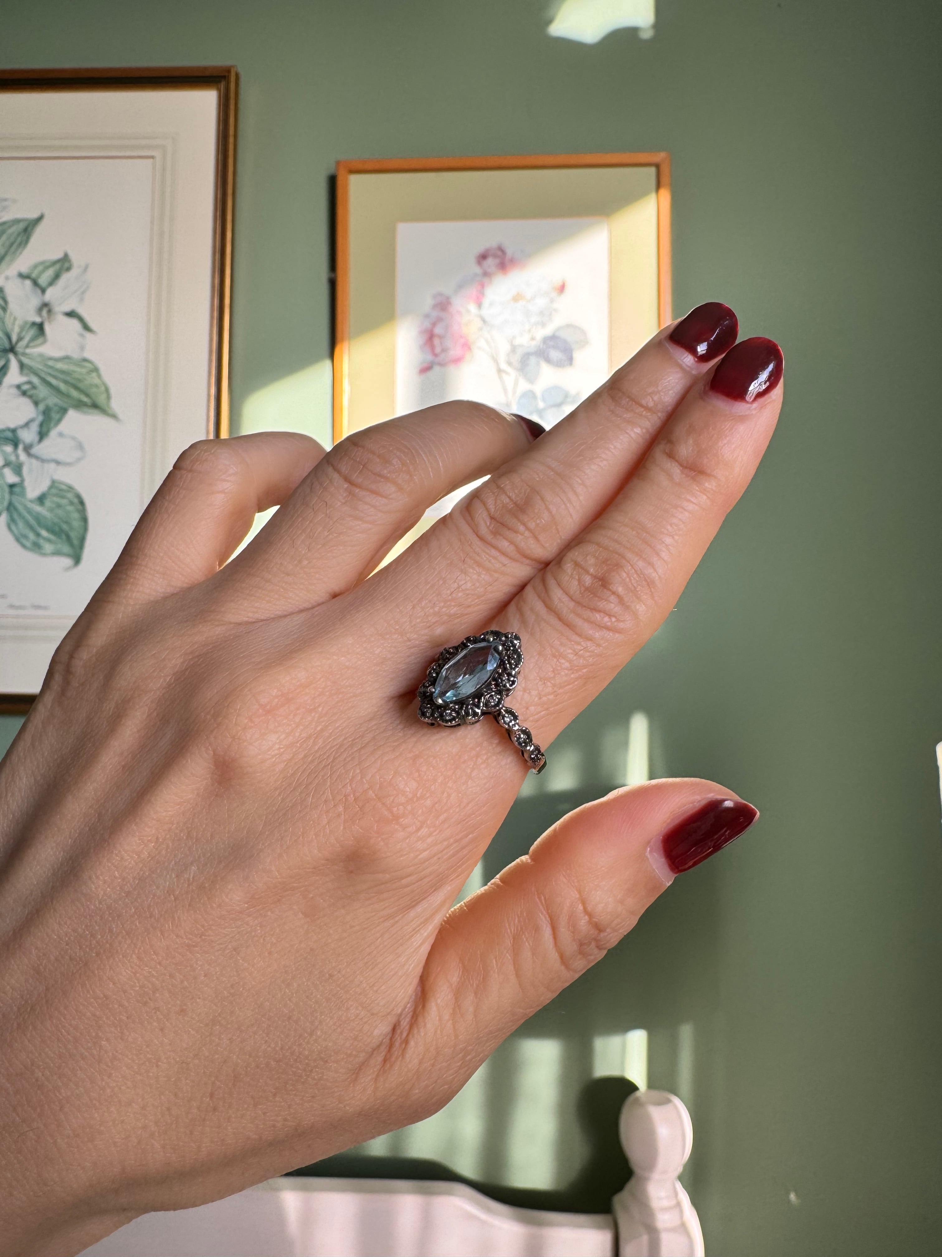 LONDON vintage silver アクアマリンアンティークリング